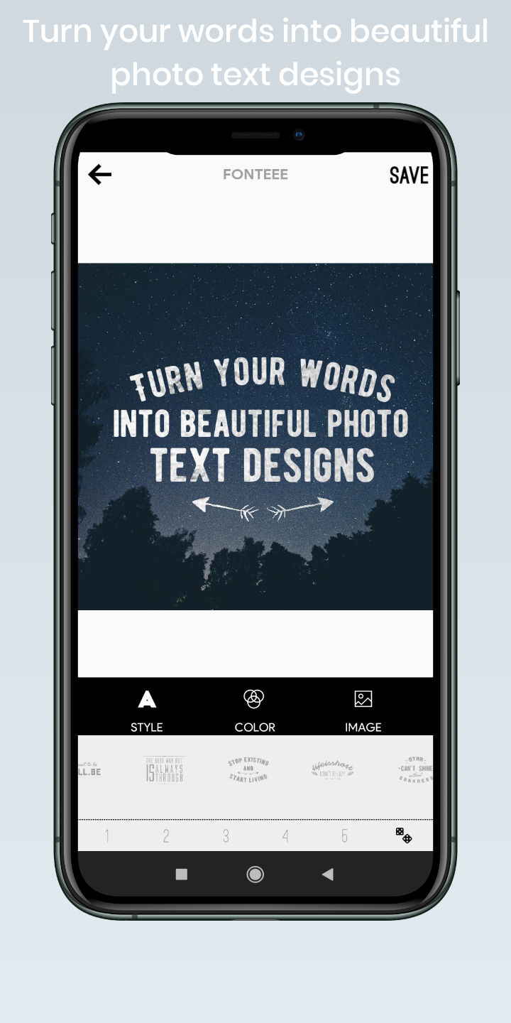Fonteee — это продвинутый, но простой в использовании текстовый редактор фотографий для Android, который позволяет легко добавлять текст к фотографиям и писать на изображениях. Используя это бесплатное приложение для типографики, вы можете добавить текст на прозрачный фон или фотографию с возможностью выбора между несколькими шрифтами, цветами и стилями.