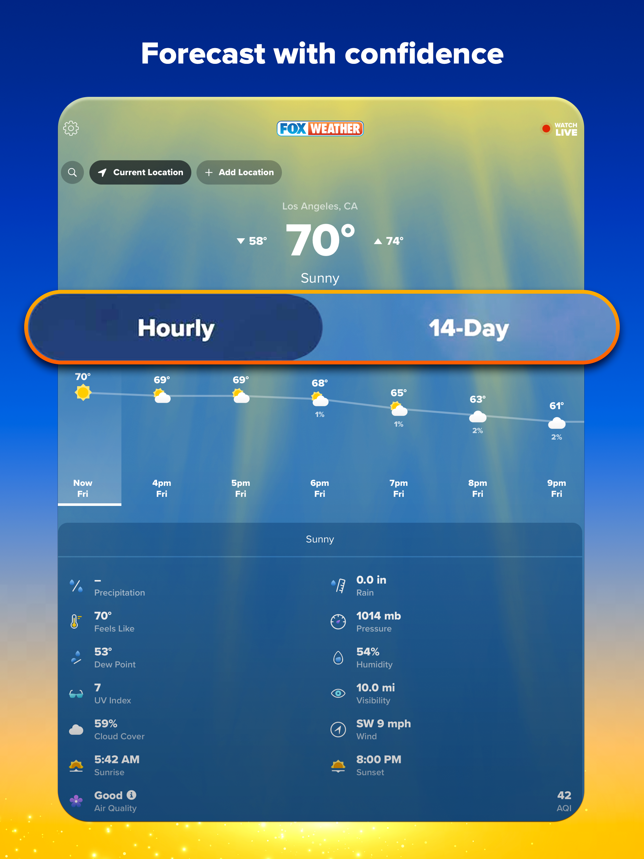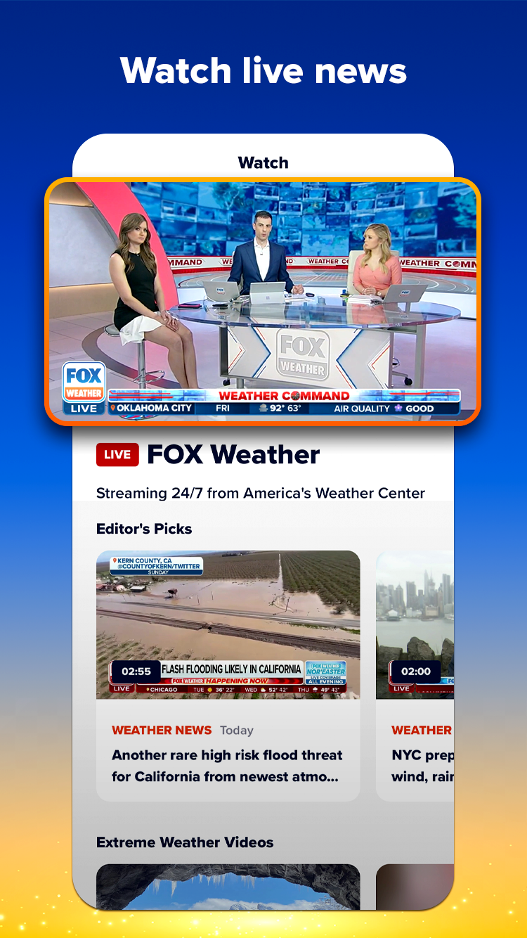 Точный. Личный. Мощный. Абсолютно новое приложение FOX Weather переносит американскую команду погоды на вашу ладонь, предоставляя местные новости о погоде и обновления погоды в режиме реального времени. Выветривание вместе с FOX Weather! FOX Weather показывает вам погоду в мире такой, какой вы ее никогда раньше не видели, с красивыми визуальными эффектами в простом дизайне, предоставляя вам краткосрочные и долгосрочные прогнозы экстремальных погодных условий, новости о погоде, живое видео и многое другое. Обновления прогноза Смотрите и взаимодействуйте с прогнозом на сегодня и на 14 дней вперед, а также с почасовой информацией на следующие 48 часов. Подпишитесь на оповещения о суровой погоде, чтобы получать уведомления о важных для вас местах. Выбирайте между ежечасным и ежедневным просмотром для любого местоположения по всему миру. Видео в прямом эфире Воспользуйтесь прямыми трансляциями и прогнозами по запросу, видеоклипами о суровой погоде и другими материалами от команды America's Weather Team, рассказывающими о погоде — вход в систему не требуется и он всегда включен. Просматривайте карты погоды, трекеры погоды, трекеры штормов и просматривайте предупреждения о штормах — и все это с помощью приложения FOX Weather. Новости погоды Читайте о самых важных новостях о погоде со всего мира от нашей команды цифровых метеорологов, круглосуточно сообщая о самых важных новостях о погоде и предупреждениях о суровой погоде из Центра прогнозов FOX. Интерактивный радар Наблюдайте за штормами с помощью нашего интерактивного штормового радара и приближайтесь к своему району. Местоположение нашего усовершенствованного метеорологического радара настраивается в соответствии с местоположениями, которые вы установили в приложении. Пользовательские долгосрочные прогнозы Планируйте свои мероприятия почти на год вперед с помощью FOX FutureView и получайте уведомления об изменениях прогноза по мере их возникновения. Будь то свадьба, отпуск, воссоединение семьи или что-то еще, для чего вам нужно знать погоду, FOX FutureView может помочь вам отслеживать и планировать это. Виджеты Смотрите, что будет прямо на вашем домашнем экране! Кроме того, дополнительная информация, такая как восход / закат, AQI, график дождя, высокие и низкие температуры, прогноз осадков, предупреждения о погоде и «упреждающие прогнозы», когда это уместно. Данные о погоде •Прогнозы на сегодня + следующие 14 дней • 48 часов почасовых данных прогноза • Предупреждения о суровой погоде как в приложении, так и через push-уведомления и оповещения о погоде в режиме реального времени. • Вероятность и количество осадков •Точка росы •Влажность • Время восхода и захода солнца •Скорость и порывы ветра • УФ-индекс •Облачность • Данные о качестве воздуха •Вероятность дождя Как настроить приложение FOX Weather • Рассмотрите возможность разрешения как push-уведомлений, так и разрешений на определение местоположения. • Настройте места, которые важны для вас, например дома членов семьи, любимые места отдыха и т. д. • Дайте местам собственные имена («Дом мамы») в меню настроек. • Используйте FOX FutureView на вкладке «План», чтобы настроить долгосрочные прогнозы для важных предстоящих событий, таких как свадьбы, дни рождения, юбилеи, большие отпуска — вообще для всего, где вам нужно следить за погодой. • Следите за напоминаниями из прил