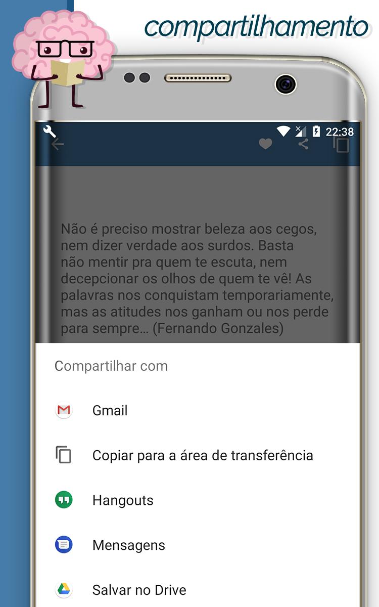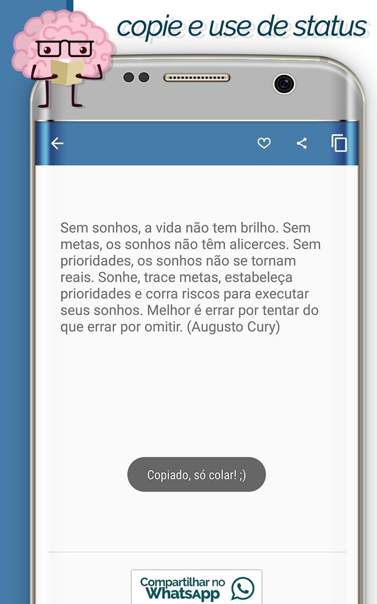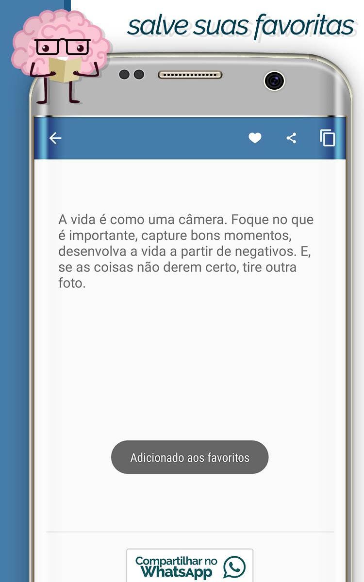 Novas frases Função de Favoritos Compartilhamento no WhatsApp Enviar por SMS Postar nos Status
