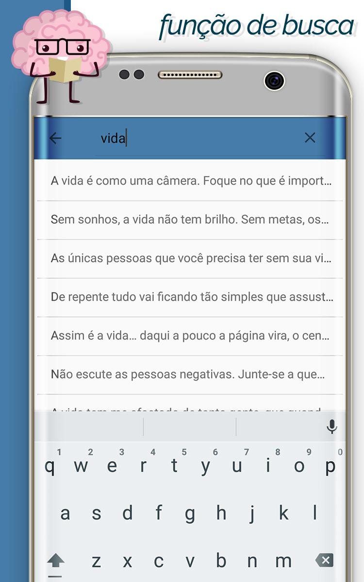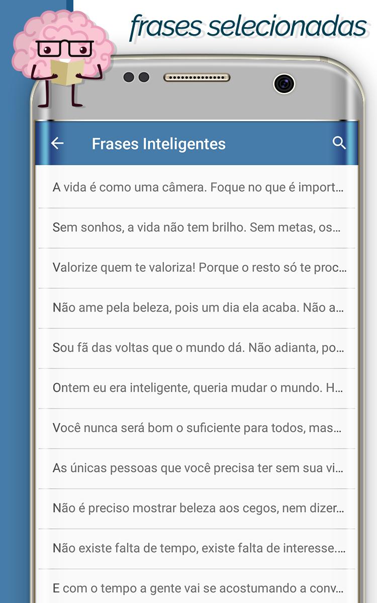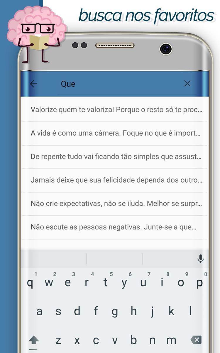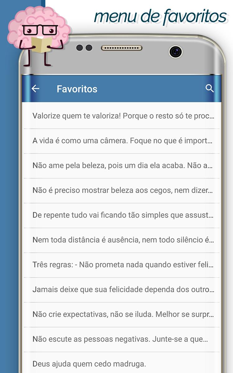 Смарт-фразы великих мыслителей и философов Мудрые, мотивирующие и умные фразы великих мыслителей и философов Красивые, мотивационные и оптимистичные слова и сообщения в фразах и стихах великих мыслителей. Готовые фразы для всех ситуаций, ежедневная доза мудрости! Приложение с фразами, сделанными для чтения, размышлений и обмена с друзьями, группами и семьей, используйте как добрые утренние сообщения, добрый вечер или спокойную ночь, также выступать в качестве статуса в лице, убеждении и whatsapp. Вы также можете использовать субтитры для своих фотографий. Умные взрослые любят читать как хобби, и ничего лучше, чем читать мудрые слова и строить свои знания с мудростью этих настоящих гениев, таких как знаменитый Чико Ксавьер! Даже короткие предложения имеют возможность коснуться нашего сердца, мотивировать нас на ежедневной основе и приносить нам знания. Если мудрость всегда была загадкой, теперь ее уже нет, завоевание мудрости такими инструментами - это новый способ узнать немного больше о мире вокруг нас. Романтические фразы имеют возможность побеждать близких, те, кто рифмуют, делают чтение еще более приятным, печальные сообщения также имеют важное значение, они строят нашу волю искать радости и мотивации. Христианские мыслители также играют важную роль, обеспечивая более широкое понимание Библии и религии. Есть и эти иронические мысли, которые кажутся «зейерой», когда мы читаем в первый раз, но при глубоком анализе мы видим, что все имеет смысл и что они действительно легальны! Приложение имеет следующие возможности: Поиск. Найдите нужную фразу, введя нужное слово или фразу. Избранное: Создайте свою коллекцию любимых фраз и сообщений для быстрого доступа. Offline: приложение не нуждается в работе Интернета, вы можете прочитать, где и когда захотите. Бесплатно: помимо того, что на 100% бесплатно, приложение также не содержит навязчивой рекламы, которая нарушает чтение. Совместное использование: кнопка быстрого доступа от WhatsApp, а также совместное использование в других приложениях Android, таких как Facebook, Instagram, tumblr, sms, email и т. Д. ...