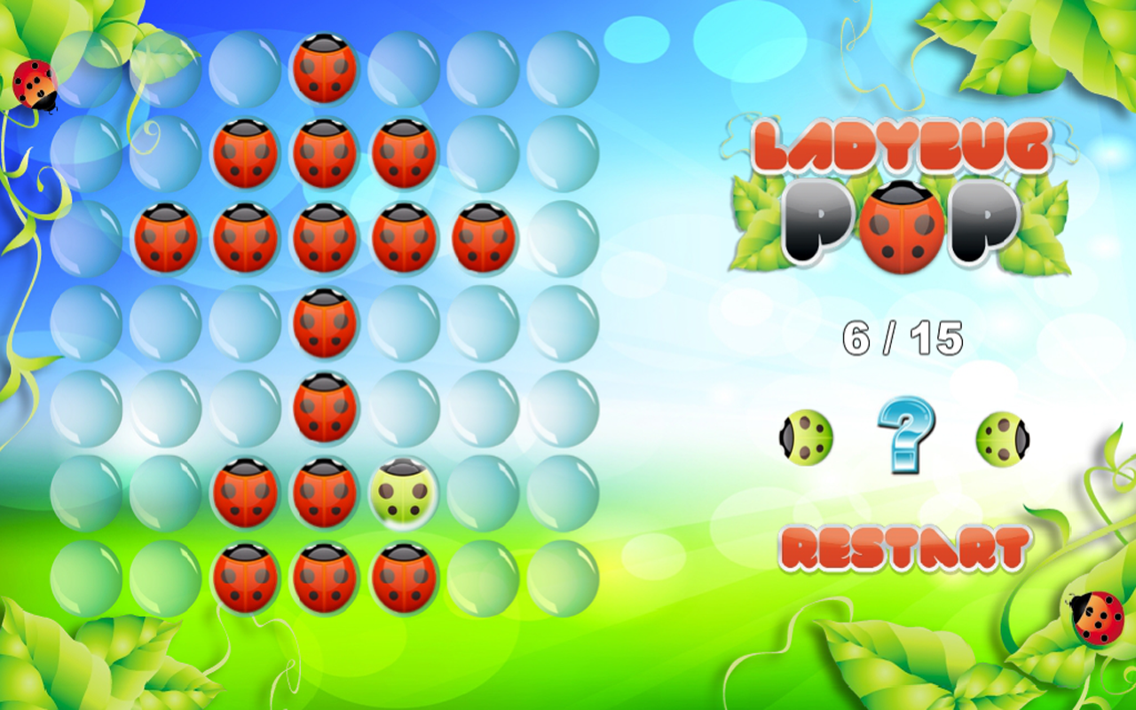 The idea is to eliminate or POP as many LadyBugs as possible buy jumping over each another.