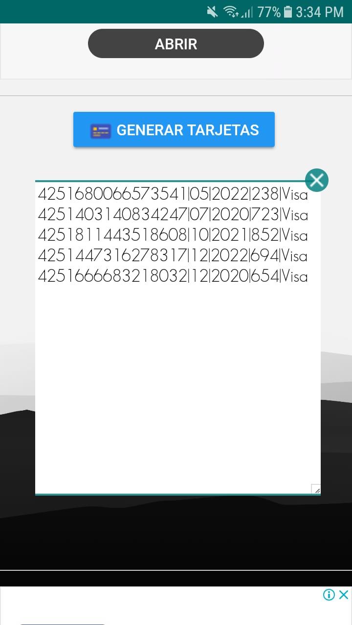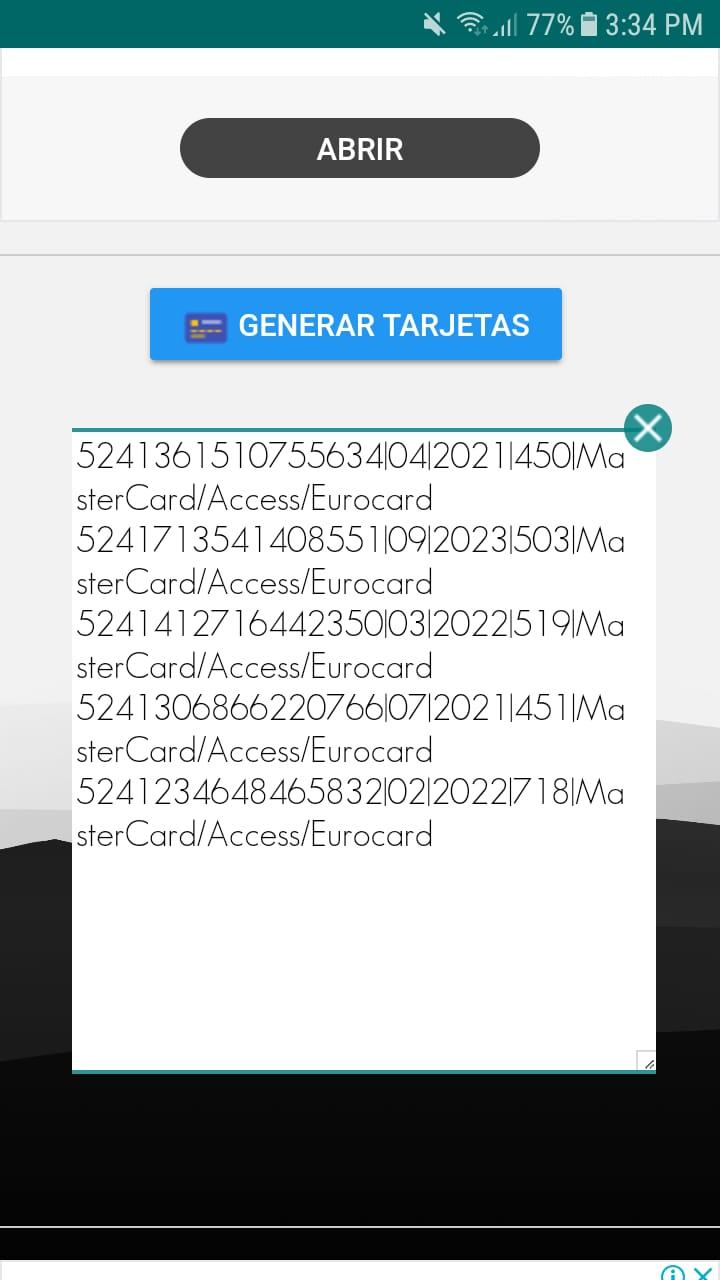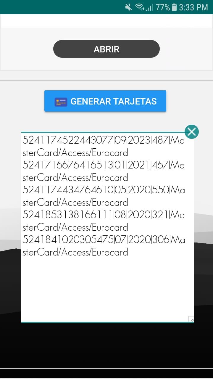 Información y términos de uso del generador de tarjetas de crédito Descartar - generador de tarjetas de crédito - generador de tarjetas de crédito - generador de tarjetas bancarias - generador de crédito Esta herramienta genera información de algoritmos, no produce documentos emitidos ni facsímiles, muestras o muestras de documentos reales. Genere números de tarjeta de crédito y débito válidos de bancos de todo el mundo o cree su propio patrón (código BIN). Este programa está dirigido a desarrolladores que estudian algoritmos de tarjetas de crédito o débito y personas que desean probar sus propios números de tarjeta de crédito. No intente utilizar DisCard (o programas similares) para intentar pagos o fraudes reales: hoy en día las tiendas, sitios web de comercio electrónico y bancos comprueban si los números de tarjetas de crédito que reciben se emitieron realmente antes de enviar productos o prestar un servicio pago . Las compañías de tarjetas de crédito tienden a liderar las investigaciones a gran escala cuando sus tarjetas se usan mal, y harán todo lo posible para arrestar a los estafadores. También evite las llamadas listas de números de tarjetas de crédito pirateadas, crackeadas o falsas. Cardar es un negocio muy arriesgado, y no hay dinero gratis. Prefieres obtener un buen trabajo y solicitar una tarjeta de crédito real. DisCard verifica y genera números de tarjetas de crédito. Admite las mejores redes de tarjetas de crédito, Visa, MasterCard y Discover, American Express, Diners Club, Carte Blanche, JCB. Incluye también Maestro, Visa Electron y otras tarjetas de crédito y débito y tarjetas de bancos y entidades privadas en todo el mundo como Credit Karma, tarjetas de crédito Chase, Citicards, Target Red Card, Merrick, Costco, Synchrony Financial Bank, Torrid, Indigo, Nerdwallet tarjetas de crédito, Comenity Bank, chip y pin, precalificados, preaprobados u otros. Tarjetas de crédito para reconstruir un crédito, para un buen crédito, para un mal crédito, sin crédito. Tarjetas de crédito sin tarifa anual, con tasas de interés bajas, con 0 apr. El nombre del titular de la tarjeta y la fecha de vencimiento no están codificados en el número de tarjeta, por lo que cualquier nombre y fecha de caducidad pueden ajustarse a cualquier número válido. El código de seguridad de la tarjeta (CSC), también llamado Card Verification Data (CVD), Card Verification Value (CVV o CVV2), Card Verification Value Code (CVVC), Card Verification Code (CVC o CVC2), Verification Code (V-Code o Código V), Verificación de código de tarjeta (CCV) o Código de panel de firma (SPC), tampoco está codificado en el número de tarjeta. Otras medidas de seguridad para las compras fuera de línea son el chip y la firma (solía deslizar y firmar en el pasado) que requieren que el usuario firme un recibo después de comprar bien o servicios con su tarjeta, o chip y pin, cuando el usuario tiene que ingresar un código (generalmente un número de 4 dígitos) en el teclado numérico de un dispositivo para pagar con la tarjeta. Las tarjetas sin contacto no requieren firma o pin por montos pequeños (generalmente hasta 25 USD o EUR). Aviso Legal: Todos los nombres de productos, logotipos, marcas comerciales y marcas registradas que aparece aquí son propiedad de sus respectivos dueños. Si tienes alguna pregunta solo deja tu comentario.