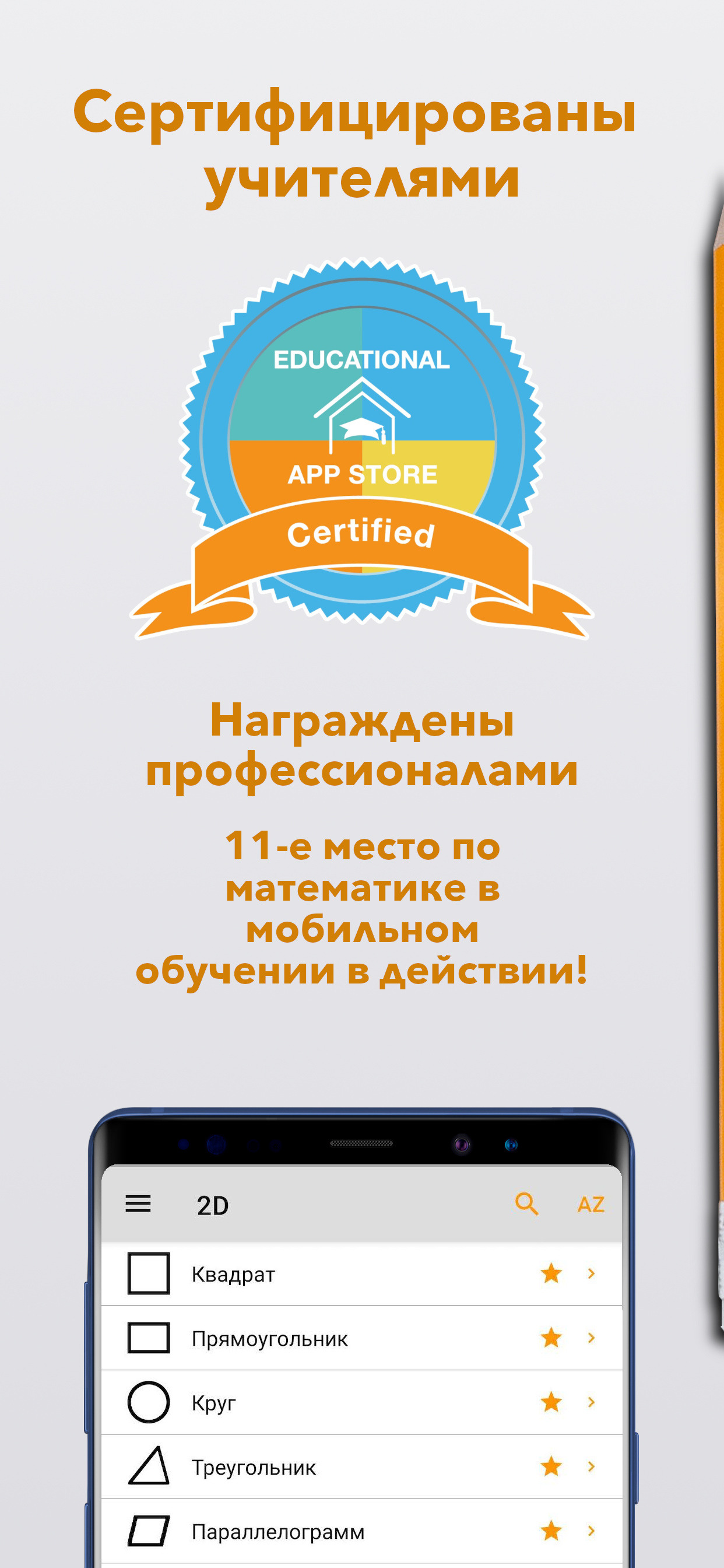 Мы являемся сертифицированным приложением Educational App Store и заняли 11-е место в категории "Математика в мобильном обучении в действии"!