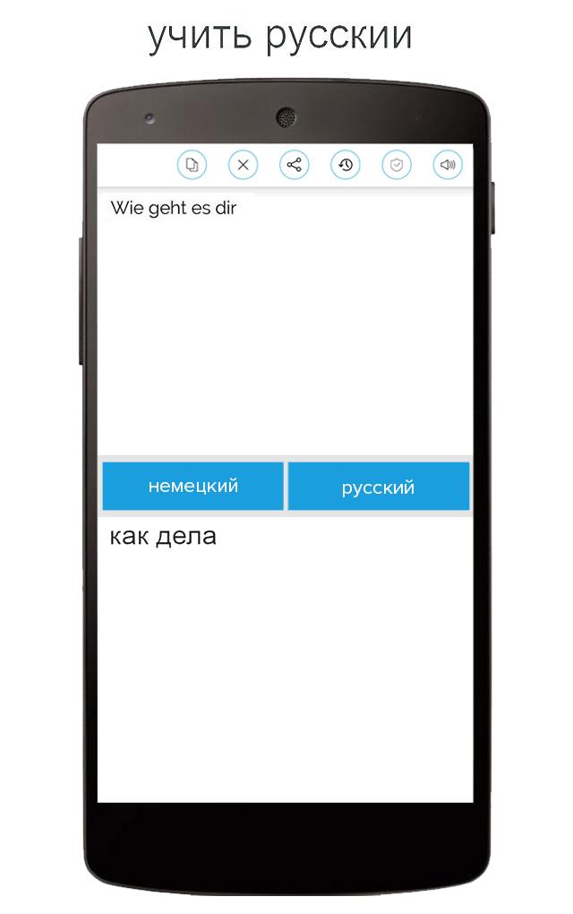 German To Russian Translation. Russian To German Translation. Text to Speech. Audio Feature. Can be used as a Dictionary. Offline access for translated words, text and sentences. Social Media - Easily share with Friends and Family. Easy to use German Russian Translator.