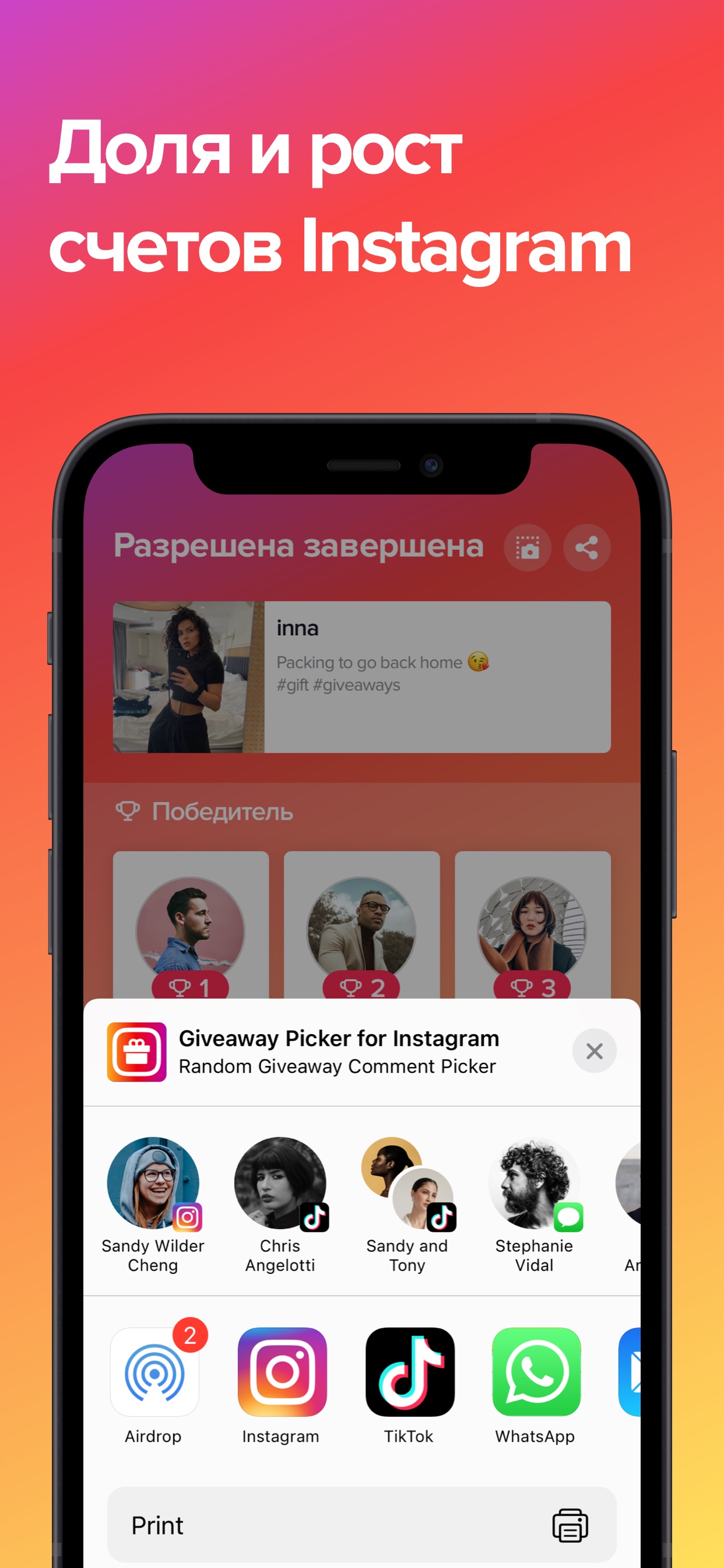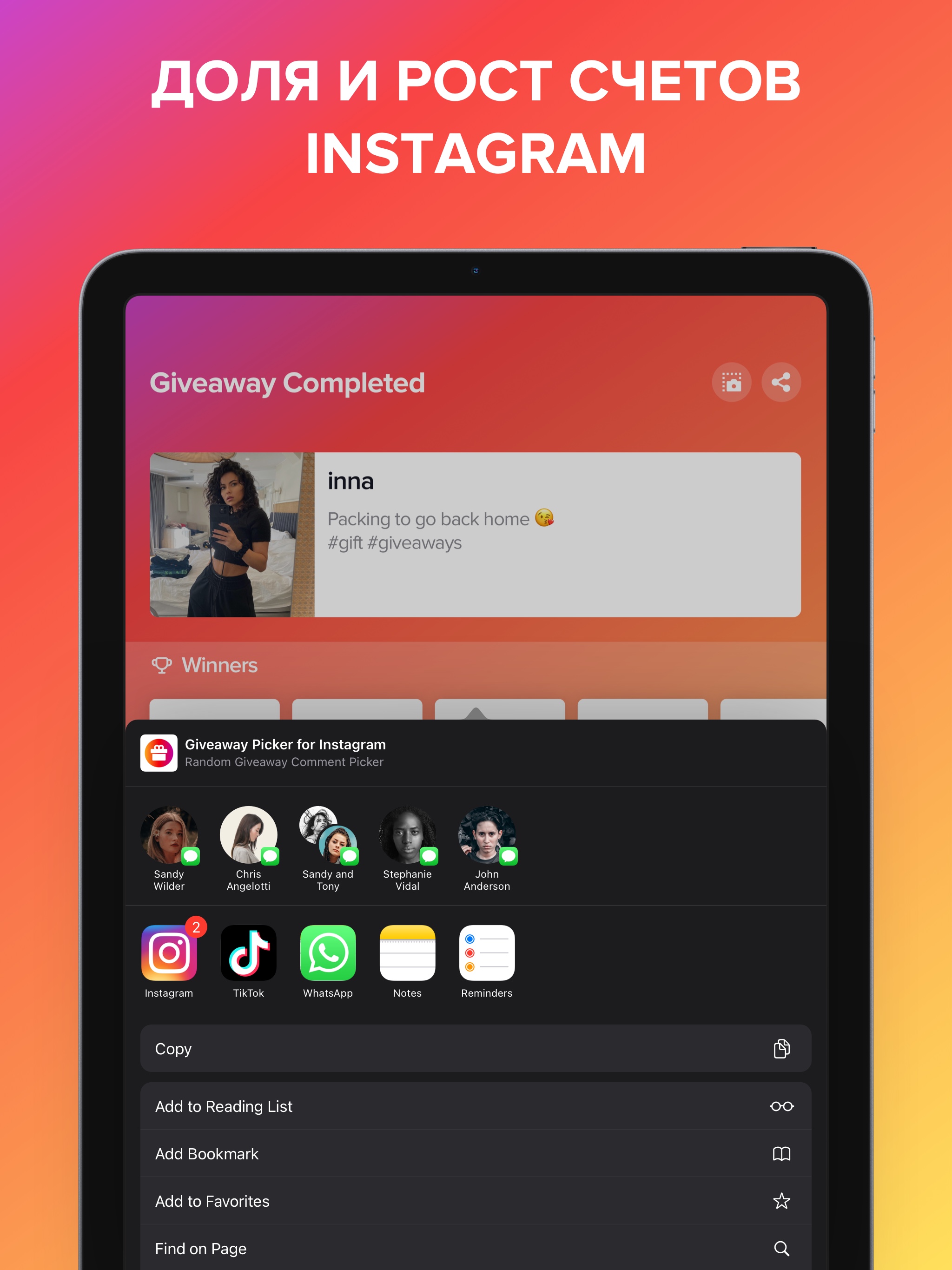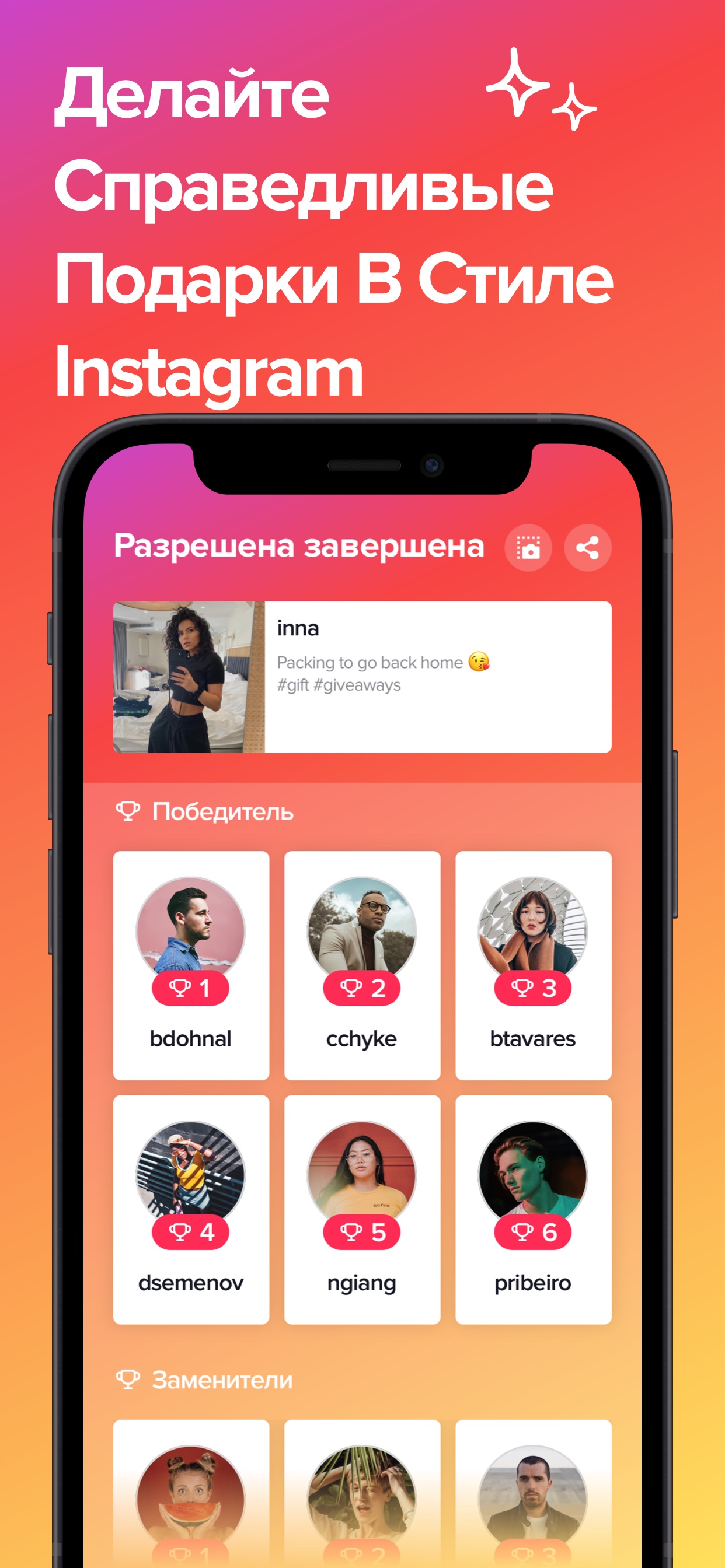 Giveaway Picker for Instagram is a simple and easy way to get the best winners for your future Giveaway Picker for Instagram. Our software will determine how many winners there should be and reveal them one-by-one! It is the safest and most reliable way to give a giveaway ever!
