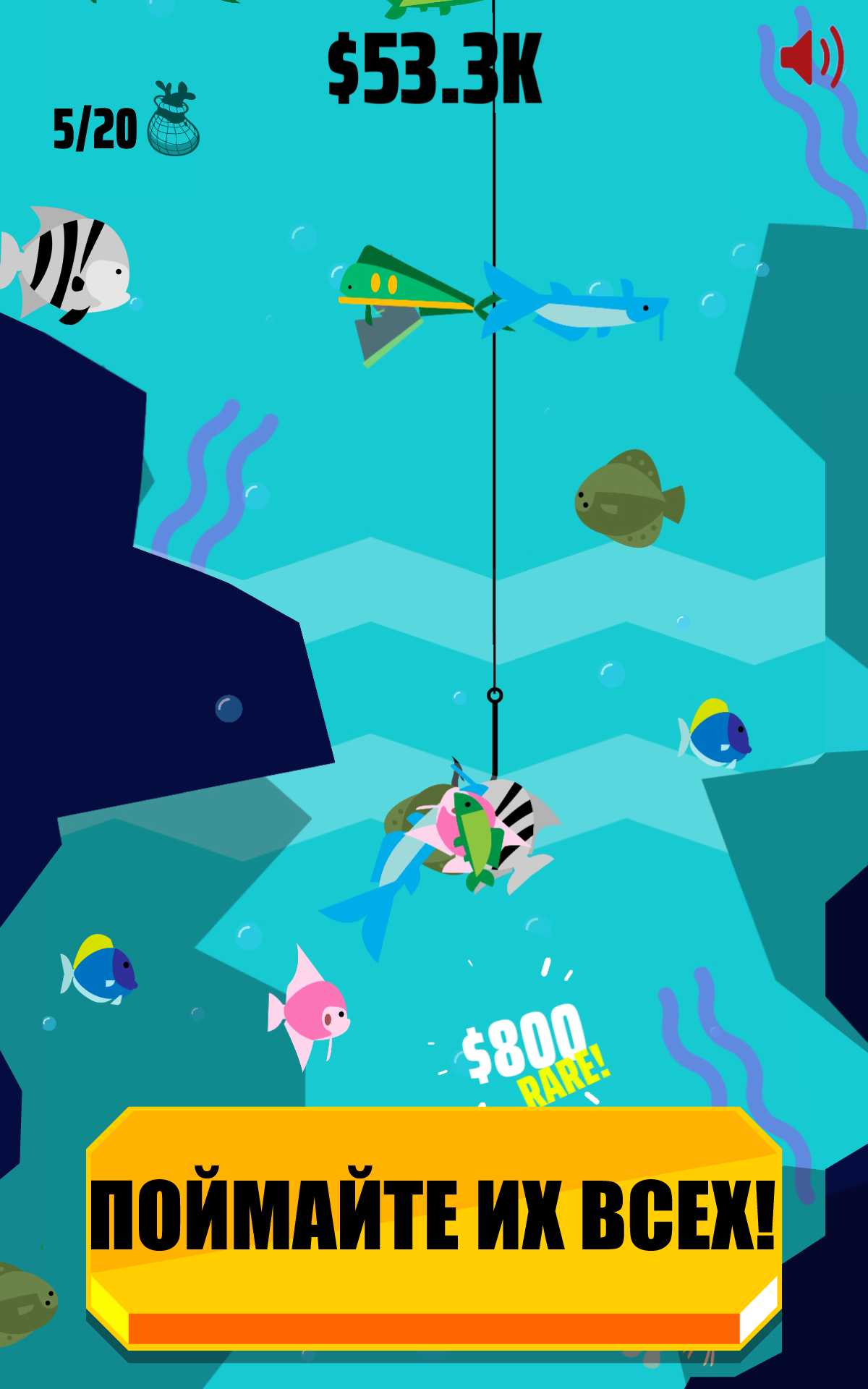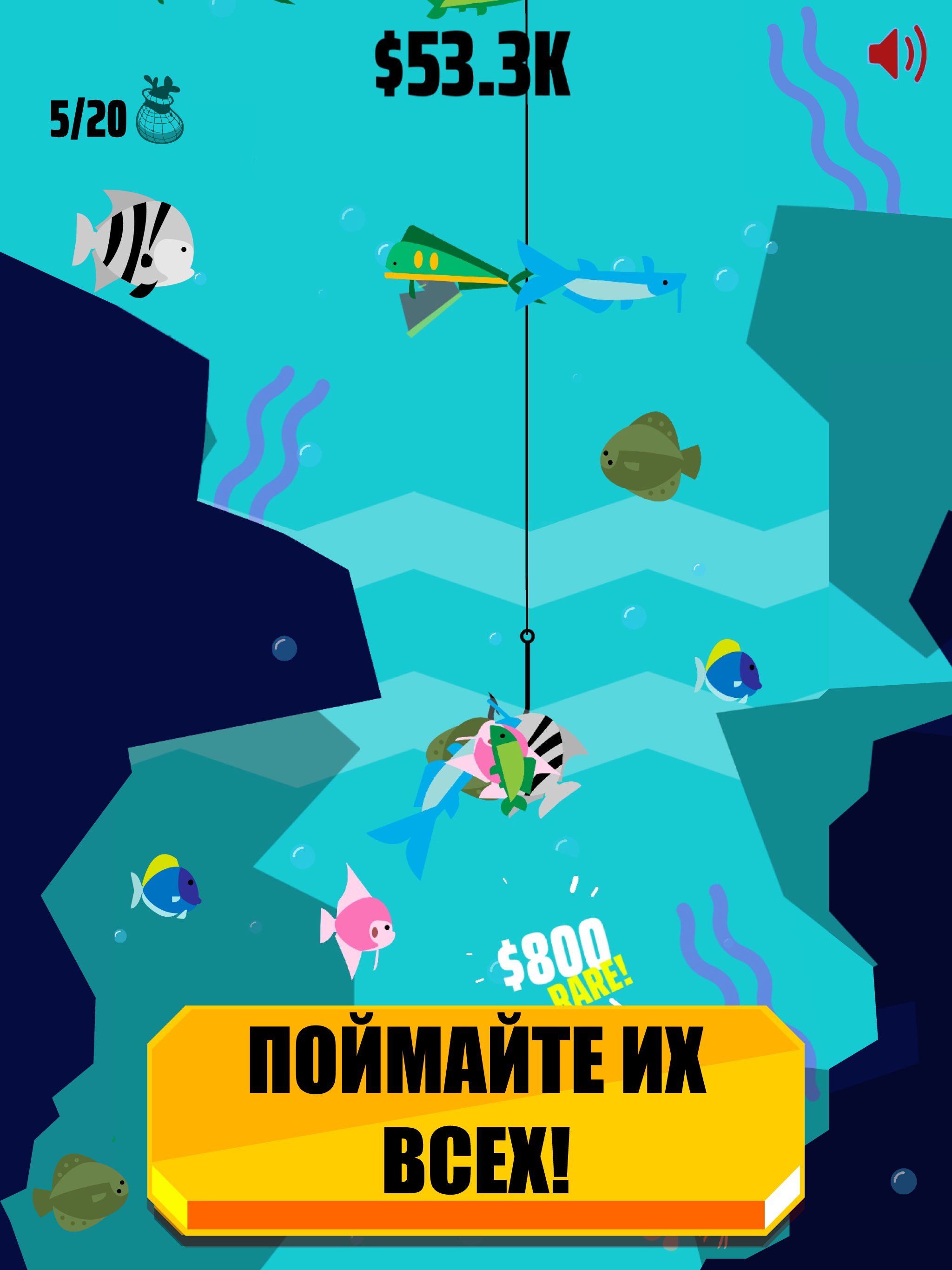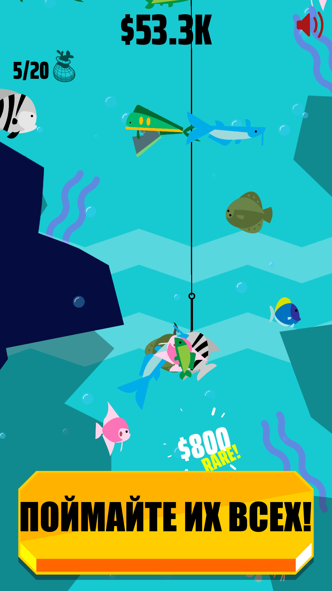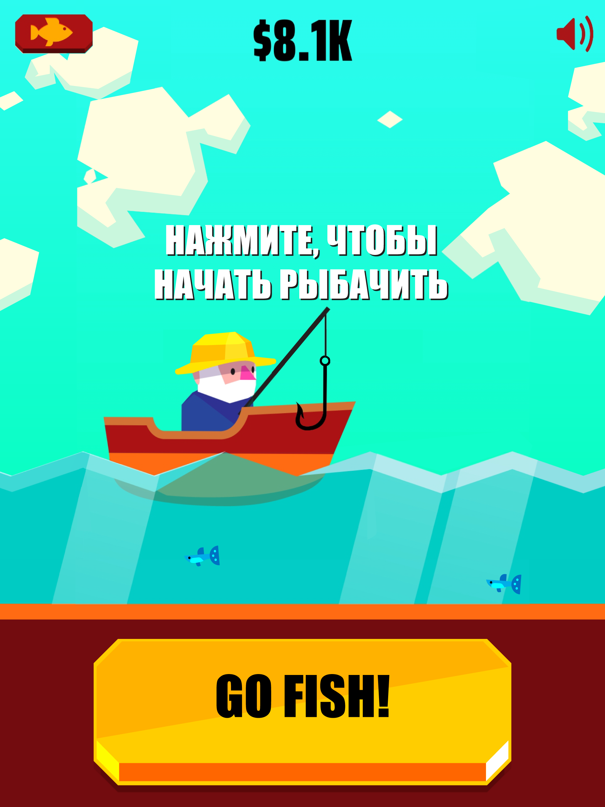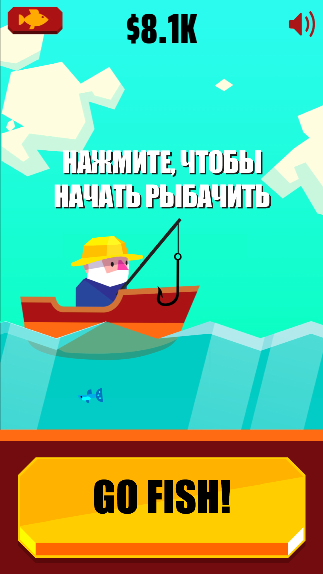 Закидывайте удочку, добирайтесь до глубины и вытаскивайте как можно больше рыбы! Улучшайте свое снаряжение, чтобы увеличить свой улов и добраться до самых глубин, где таятся редкие находки и новые виды! Возможности игры Go Fish! - Простой и увлекательный игровой процесс: нажимайте, забрасывайте удочку и вытаскивайте как можно больше рыбы! - Улучшайте сеть, чтобы поймать больше рыбы и достичь большей глубины! - Старый рыбак продолжит зарабатывать деньги, пока вас не будет! Сможете ли вы раскрыть тайны океана? Go Fish!