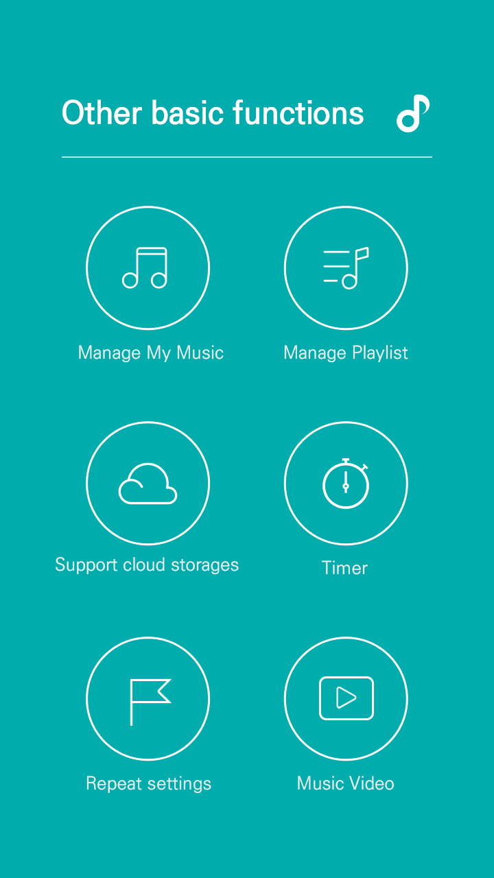 ● Моя музыка позволяет пользователям управлять своим списком воспроизведения по предпочтениям, исполнителю, альбому и папке.