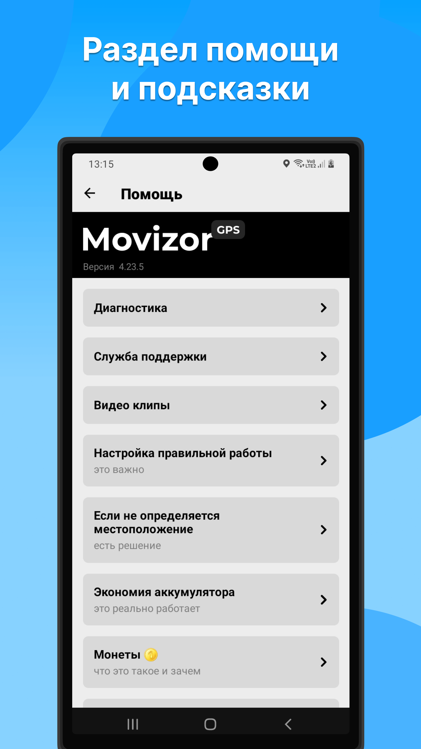 • Movizor может работать без выхода в интернет — он запоминает координаты и после появления интернета отправляет в сервис. Приложение можно выключать и запускать заново — история передвижения не потеряется.
