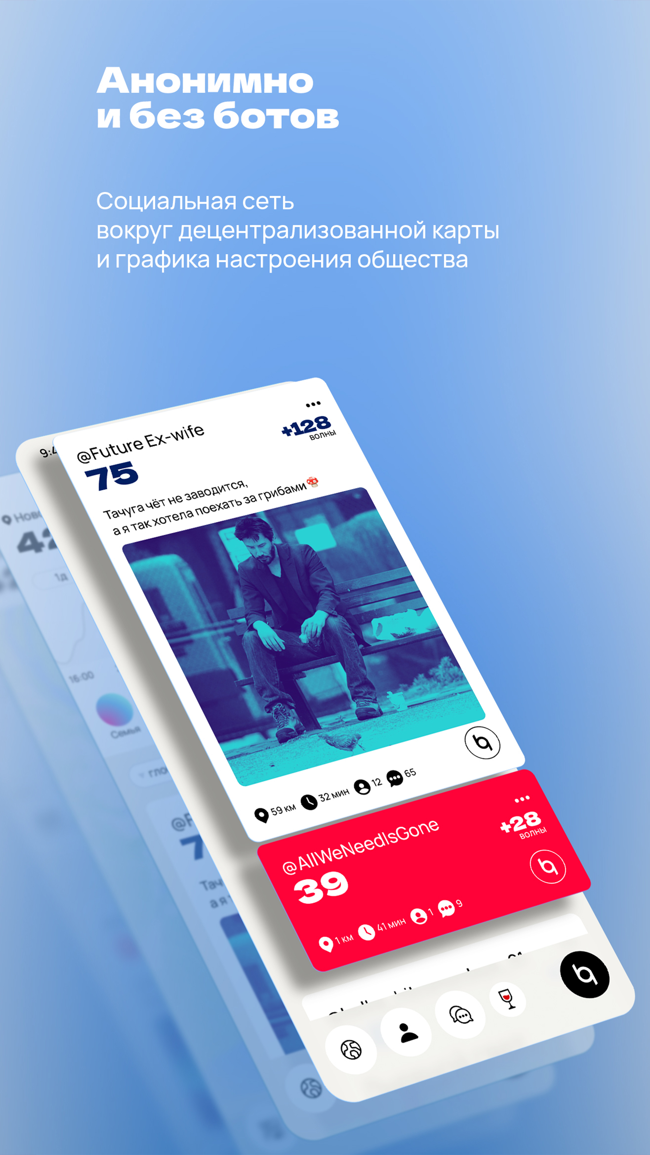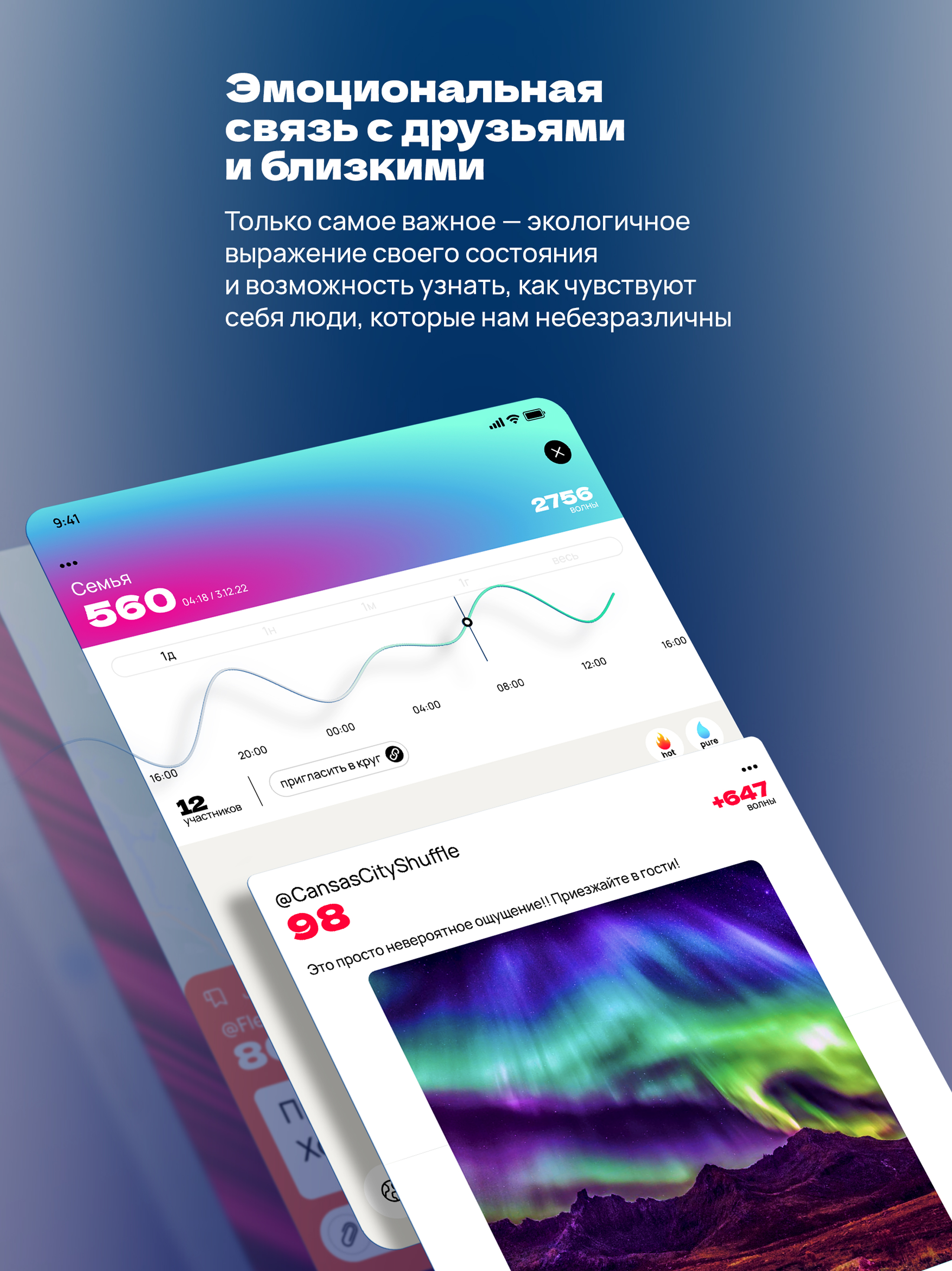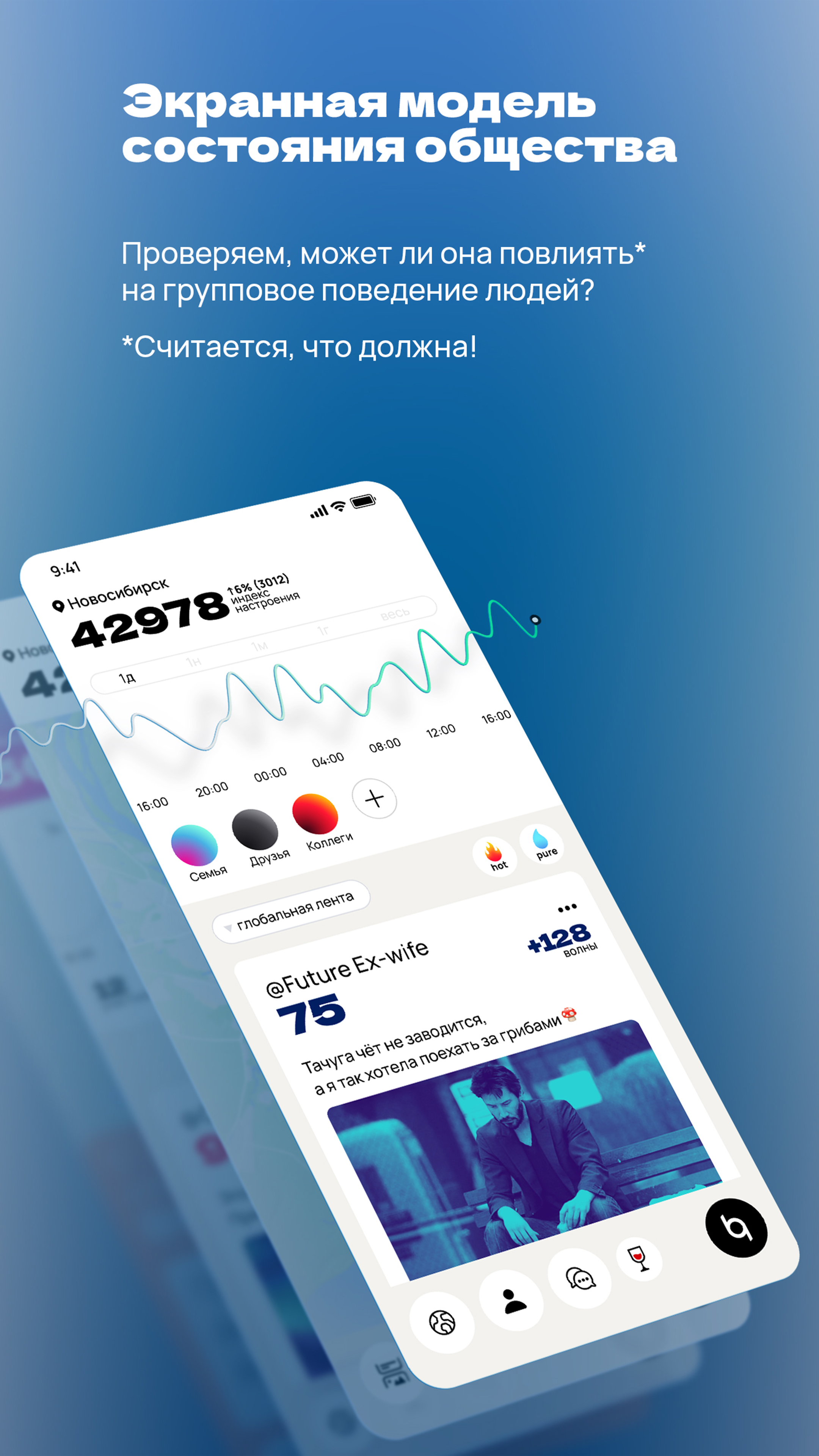 Мы верим, что сейчас, когда общение становится компьютеризированным и дистанционным, эмоциональная связь между людьми заслуживаем особого внимания. Особенно между семьей и друзьями. Как поется в одной песне "Важней всего погода в доме..." Поэтому мы предлагаем простейший инструмент для сохранения эмоциональной связи с близкими - коллективный график настроения. Попробуйте, пусть это будет экспериментом. Кроме того, вы можете создать аналогичные графики и для других кругов общения, например, для коллег. Таким образом вы сможете элементарным способом быть в курсе общего настроения внутри рабочего коллектива. А также мы предлагаем глобальный индекс настроения, чтобы взглянуть на тему счастья и настроения еще на большем масштабе. Здесь Хапп выступает в роли графика настроения общества - как аналитический инструмент. Вспомните события по присоединению Крыма Россией, выборы президента США или любой вопрос глобальной экологии: столько шумихи, и все это канет в небытие, будет забыто, мы же предлагаем механизм, который сможет выразить распределенную информацию в виде цифры и графика, который понятным образом отразит настроение общества по тому или иному вопросу - покажет настоящую картину, независимую от точки зрения СМИ и государства. Мы уверены, что должны существовать более современные и эффективные инструменты выражения общественного мнения нежели кровопролитные протесты и уличные беспорядки, которые, пожалуй, являются уделом первобытного общества. Когда весь мир только и дело, что говорит о построении устойчивого будущего: как вообще можно создать что-то устойчивое, если мы не можем измерить, как наши решения и поступки влияют на жизнь общества? - Хапп, как раз такой инструмент, который позволит зафиксировать эффект происходящего и наглядно его представить. В конце концов, это необыкновенная возможность создать историю атрибутированную параметром счастья, и с помощью ее отправить сообщение в будущее о своих ошибках и достижениях. Нам кажется, что люди в будущем бы посмеялись, если бы зафиксированными оказались только параметры ВВП стран и прочие экономические показатели. Все-таки счастье выглядит гораздо более важным параметром. Мы искренне верим, что настроение человека играет большую роль в его жизни, а сумма настроений всех людей играет колоссальную роль в жизни этого мира. Мы вдохновлены идеей визуально представить сумму настроений всех людей в реальном времени на карте мира, как сейчас на ней показывают погоду - мы создаем геолокационный индекс настроения и его историю - присоединяйтесь! Со всей благодарностью к интернету за то, что он сделал бесчисленное количество людей ближе онлайн, мы чувствуем, как в то же время он разительно увеличивает расстояние между людьми, находящихся рядом друг с другом в реальном мире. Мы предлагаем геолокационный чат как площадку, на которой можно общаться с теми, кто имеет наибольшее значение - с людьми, которые вас окружают. Представляете воздух, наполненный мыслями, окрашенными в цвет их настроения? Поделитесь своим настроением с миром! Разделите счастье или поддержите человека в трудную минуту. Расскажите, что происходит с вами и узнайте наиболее актуальную информацию вокруг вас или на другом краю света - только представьте, все это в контексте настроения. Это потрясающе! - Поп