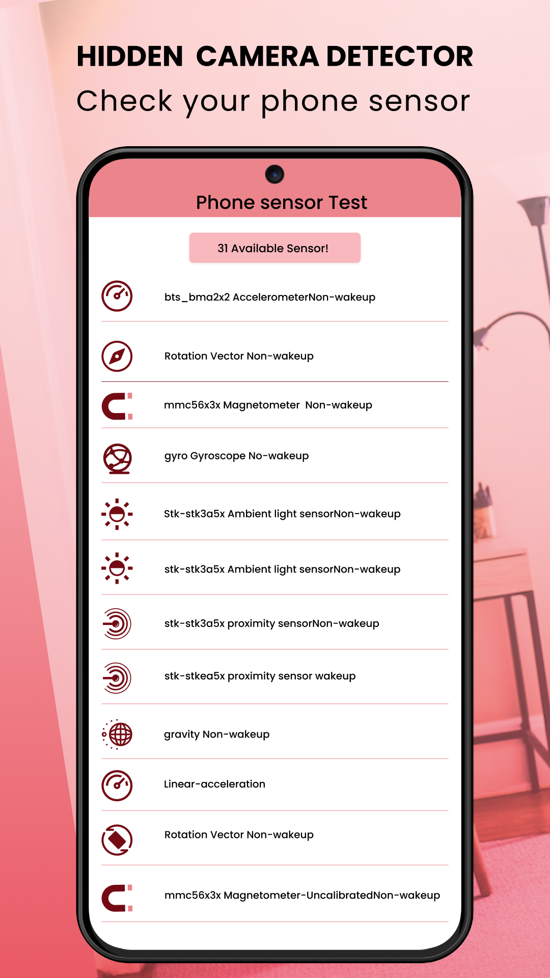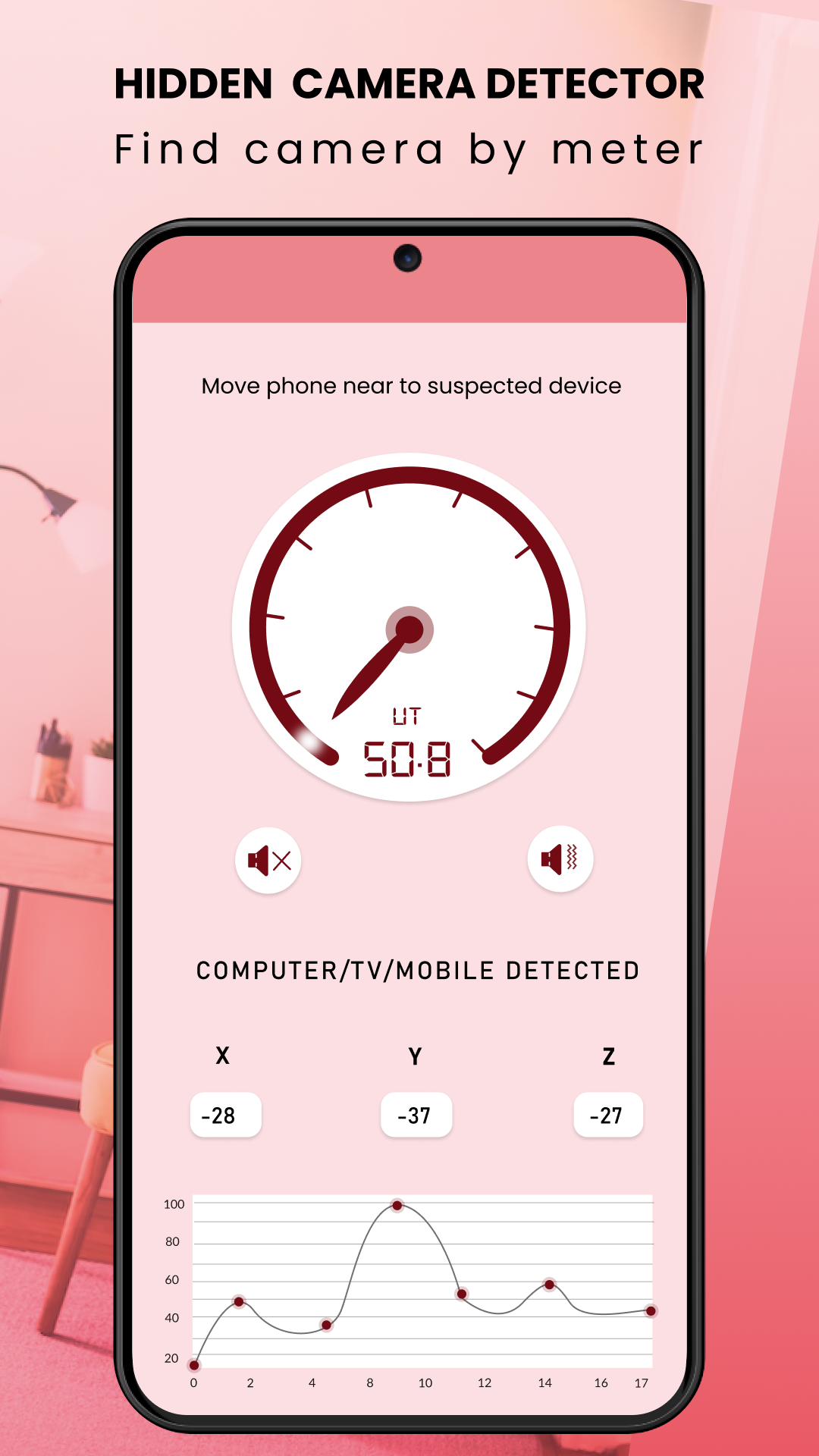 Hidden Camera Detector Finder — это удобный инструмент, который поможет вам обезопасить себя от записи шпионскими камерами. Теперь вы можете искать скрытые камеры и электронные устройства вокруг вас через свой телефон с помощью этого инструмента для поиска шпионских детекторов скрытых камер. Поскольку большинство электронных устройств излучают ЭМП, шпионские камеры и устройства можно легко обнаружить. В то время как некоторые скрытые жучки или крошечные шпионские устройства, такие как скрытые камеры, излучают инфракрасный свет, невидимый для человеческого глаза, инфракрасный свет скрытой камеры можно обнаружить с помощью камеры телефона. Это приложение для поиска детектора скрытой камеры определяет уровень полей излучения ЭМП в окружающей среде с помощью предустановленных датчиков телефона. Это приложение включает в себя больше функций, которые помогут вам в повседневной жизни. ОСОБЕННОСТИ 1. Детектор излучения ЭМП определяет уровень радиации в мкТл. 2. Блеск (инфракрасный) зритель обнаруживает инфракрасный свет 3. Компас направления позволит вам найти направление 4. Датчики телефона работают в вашем телефоне 1. Детектор радиации Функция детектора излучения позволяет искать скрытые жучки, скрытые камеры и другие шпионские устройства. Почти все электронные устройства излучают излучение. Измеритель радиации начинает издавать звуковой сигнал при высоком уровне радиации, который покажет вам силу излучения, испускаемого электронными устройствами, такими как телевизоры, компьютеры или другие электронные устройства. Использует магнитный датчик телефона для определения уровней излучения, излучаемого электронными устройствами или другими шпионскими камерами. Детектор излучения прост в эксплуатации и портативный с функцией автоматического обнаружения, называемой обнаружением излучения или ЭМП с помощью аналогового измерителя. Примечание. Радиация вредна для здоровья и может вызвать психические расстройства, поэтому будьте бдительны и держитесь подальше от зоны с высоким уровнем радиации. Измеритель радиации хорошо разработан, чтобы показать вам уровень радиации. Это будет работать, если ваш телефон имеет необходимый датчик. Продолжайте читать экран телефона во время поиска. Если уровень радиации высок, подвигайтесь вокруг телефона, чтобы определить устройство, которое излучает радиацию. Перейдите к следующей функции и найдите инфракрасные лучи, невидимые человеческому глазу и видимые через камеру. 2. Детектор инфракрасной камеры Детектор инфракрасной камеры работает как искатель камеры, потому что эффект ИК-камеры легко увидит отблеск от камеры, поэтому пользователь может найти скрытую камеру видеонаблюдения или крошечную шпионскую камеру. Для этой функции сначала выключите свет в комнате и начните поиск через камеру телефона. Если вы укажете на какое-либо белое или красное мигающее пятно, выполните поиск вручную, возможно, камера установлена, чтобы следить за вами. 3. Компас направления Если вы находитесь в незнакомом месте и хотите найти дорогу. Мы включили компас, который поможет вам найти север, юг, восток и запад. 4. Детали датчиков С помощью этой функции вы узнаете о встроенных датчиках вашего телефона. В каждом телефоне есть датчики, такие как магнитные датчики, датчики температуры и т. д. Некоторые датчики по