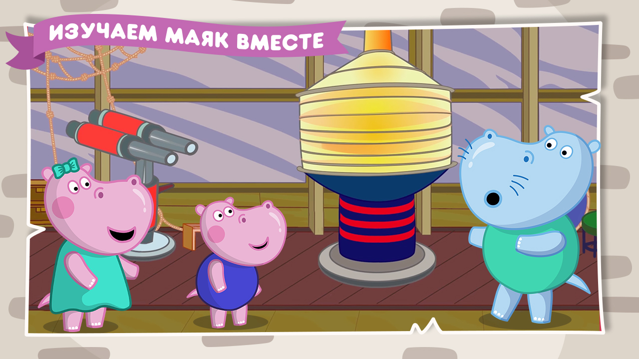 👵👴 Семья Гиппо приехала на выходные к дедушке и бабушке. Они работают смотрителями маяка и с удовольствием покажут малышам, как там все устроено. Дети узнают много интересного о кораблях и море. И помогут в этом увлекательные логические игры для детей. Мы подготовили настоящий морской квест для мальчиков и девочек.