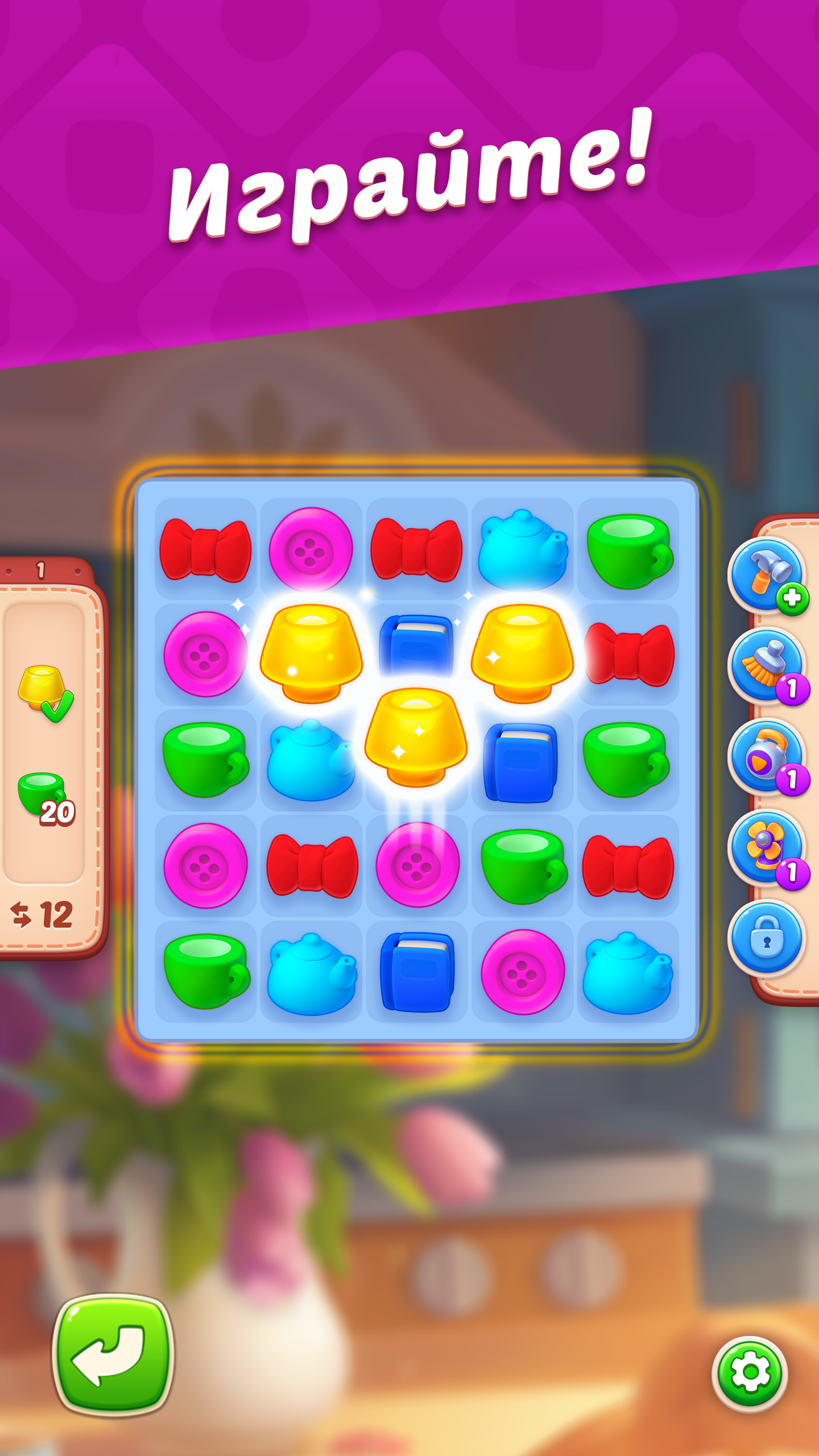 1. Уникальное сочетание геймплея "три в ряд" с ремонтом и декорированием поместья.