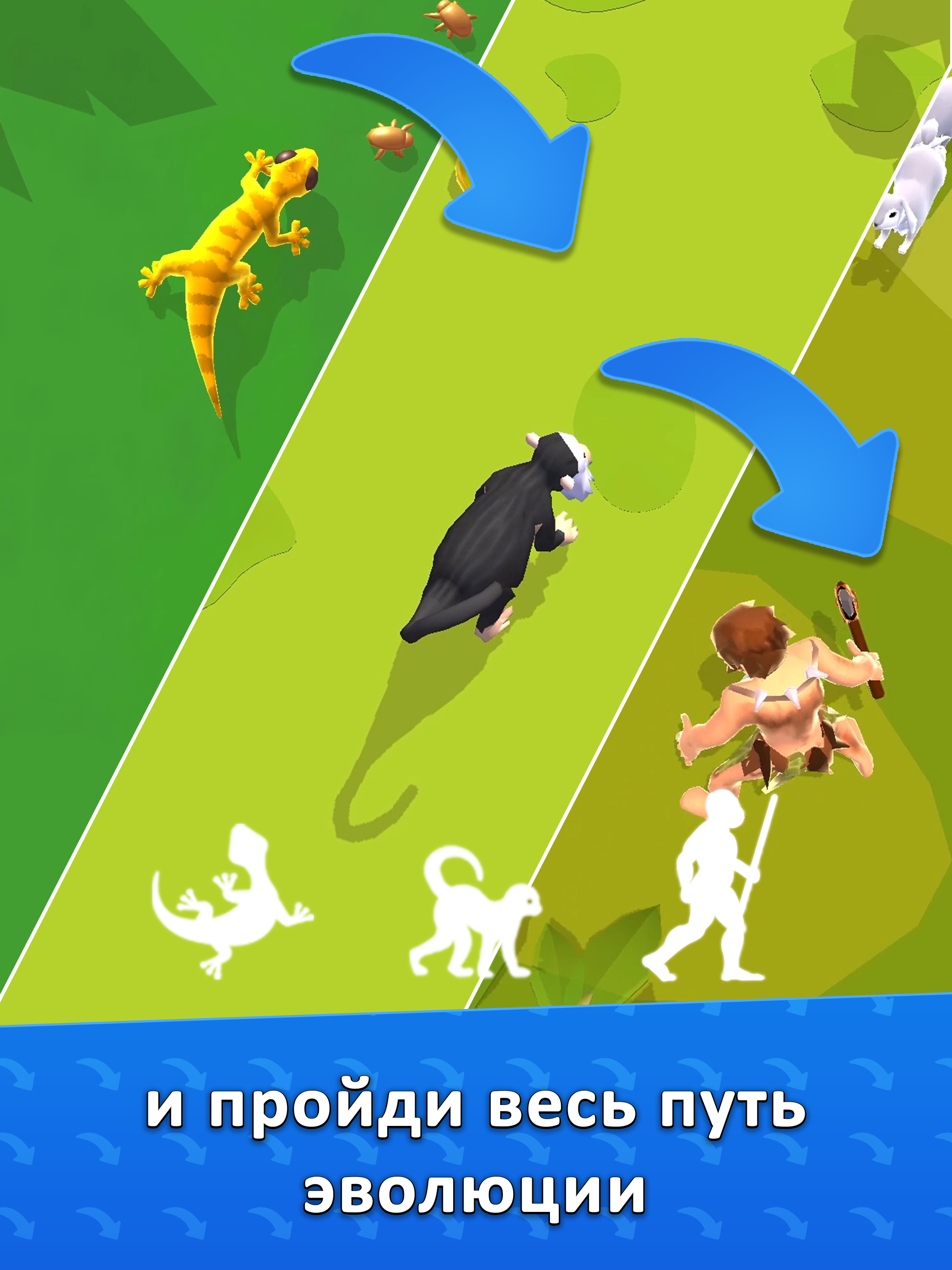 ЭТО ЭВОЛЮЦИОННАЯ РЕВОЛЮЦИЯ! 🐟 🦖🐒 Окунись в «первичный бульон» и начинай трапезу в этом красочном и занимательном симуляторе выживания, где твоя основная цель — подняться по пищевой цепочке, пережив мутацию из одного организма в другой. Начни игру маленькой рыбкой в бескрайнем океане и проложи себе путь сквозь миллиарды лет истории по длинной каменистой дороге 🐾 к цивилизации. Но на тебе свет клином не сошелся, вокруг плавает рыбка и покрупнее, так что, пока твоя добыча еще не съедена, стоит убедиться, что и ты не станешь обедом для другого животного 🦕. Выживают сильнейшие, так что включай свои животные инстинкты, задействуй рептильный мозг, отыщи своего внутреннего пещерного человека 🗿 и держи ухо востро в этой дарвиновской приключенческой игре. Хоть здесь и правит закон джунглей, часы эволюционного удовольствия тебе обеспечены. 🍖 ПИЩА ДЛЯ РАЗМЫШЛЕНИЙ… 🦴 ★ Эволюция уже началась: проживай целые геологические эпохи в бескрайнем океане палеозоя, пройди развитие от крошечной примитивной кильки до всемогущей хищной акулы, превратись в черепаху, а затем в прямом смысле вылези из кожи вон и выберись на сушу красивой ящерицей. ★ Освой правила жизни в новой цивилизации и следуй по пути динозавров до тех пор, пока тебе захочется стать белкой и съесть все орехи вокруг, взвали на себя слоновую задачу стать мамонтом и пройди множество испытаний, чтобы определить, низший ты, средний или же действительно высший примат. ★ Желаешь побольше человечности? Твоя эволюция еще не окончена: поработай над своими неандертальскими повадками, избавься от пещерной охотничьей агрессии и заверши игру, занявшись земледелием и став венцом всего живущего, бесспорной вершиной пищевой цепи. ★ Одиннадцать этапов эволюции и 81 уровень. В каждом из них есть своя особенность, которая украшает игровой процесс. ★ Заработай как можно больше очков на каждом уровне и открой экзотические ошибки эволюции! Тебя ждут русалки, 🦄 единороги и драконы, которые сделают игру еще веселее. ★ Простая, но стильная графика, превосходный дизайн животных и невероятно разнообразные пейзажи, которые воссоздают разные эпохи из жизни планеты — все это прямо на твоем экране. ⏳ ПРИОТКРОЙ ЗАВЕСУ ТАЙНЫ ДОИСТОРИЧЕСКОЙ ЭПОХИ ⌛ Хочешь своими глазами увидеть происхождение видов? Не знаешь, завершилось ли уже твое развитие? Этот забавный казуальный симулятор позволит тебе занять твое законное место на вершине эволюционной лестницы и при этом отлично провести время. Скачивай Hyper Evolution — игру на выживание, в которой оживают уроки биологии. Запускай красочный и увлекательный симулятор и начинай свою эволюцию прямо сейчас. Privacy Policy: https://say.games/privacy-policy Terms of Use: https://say.games/terms-of-use