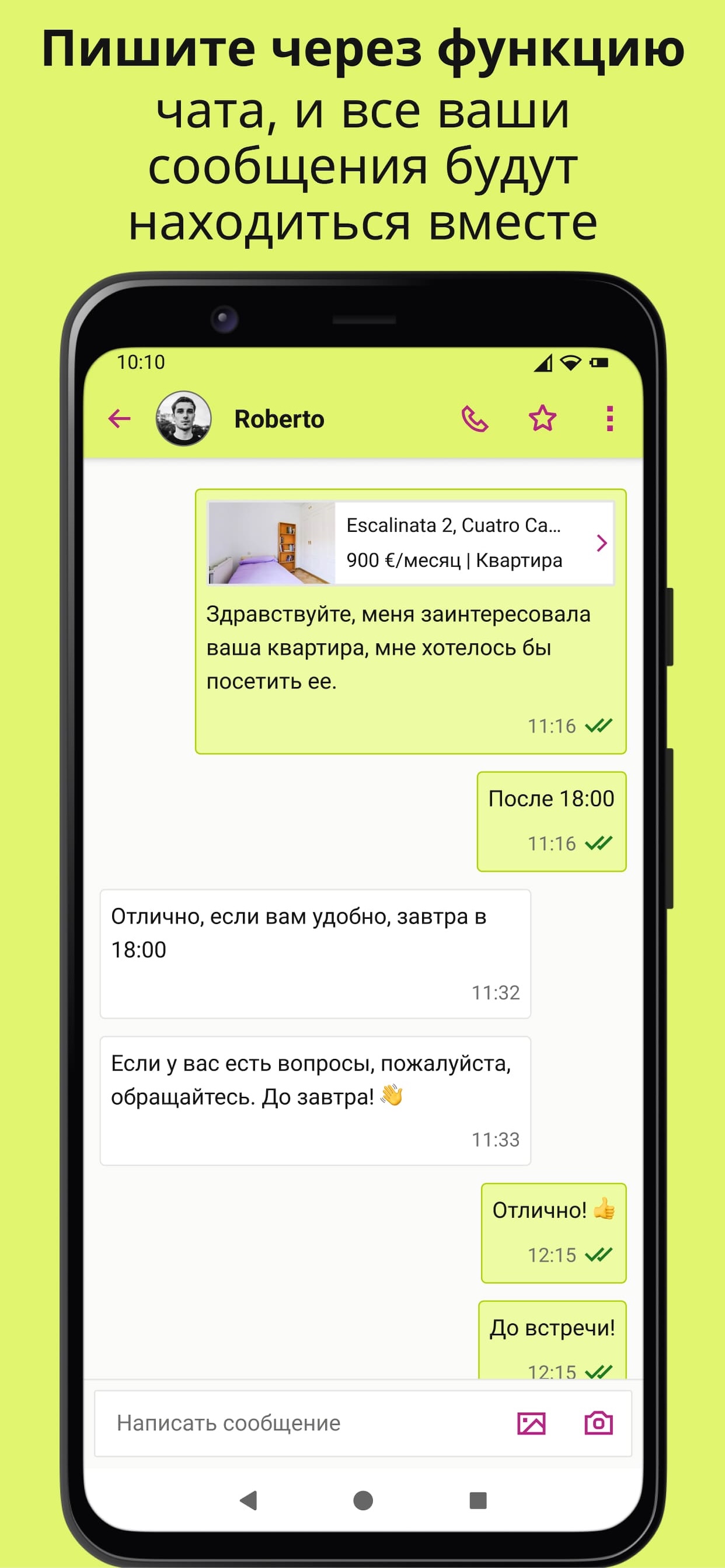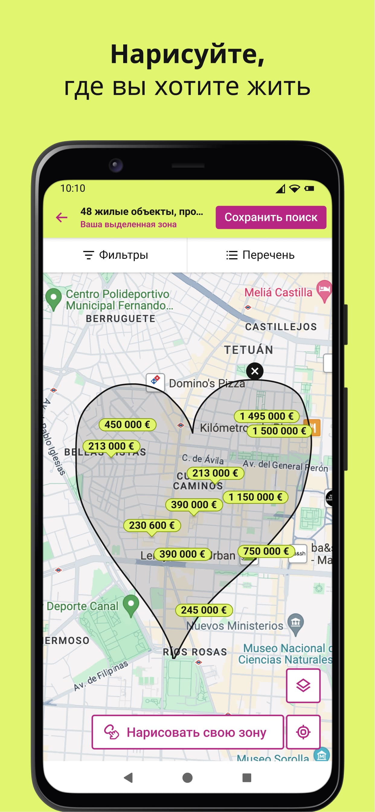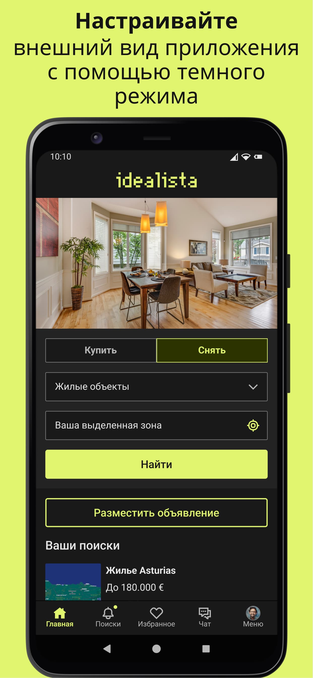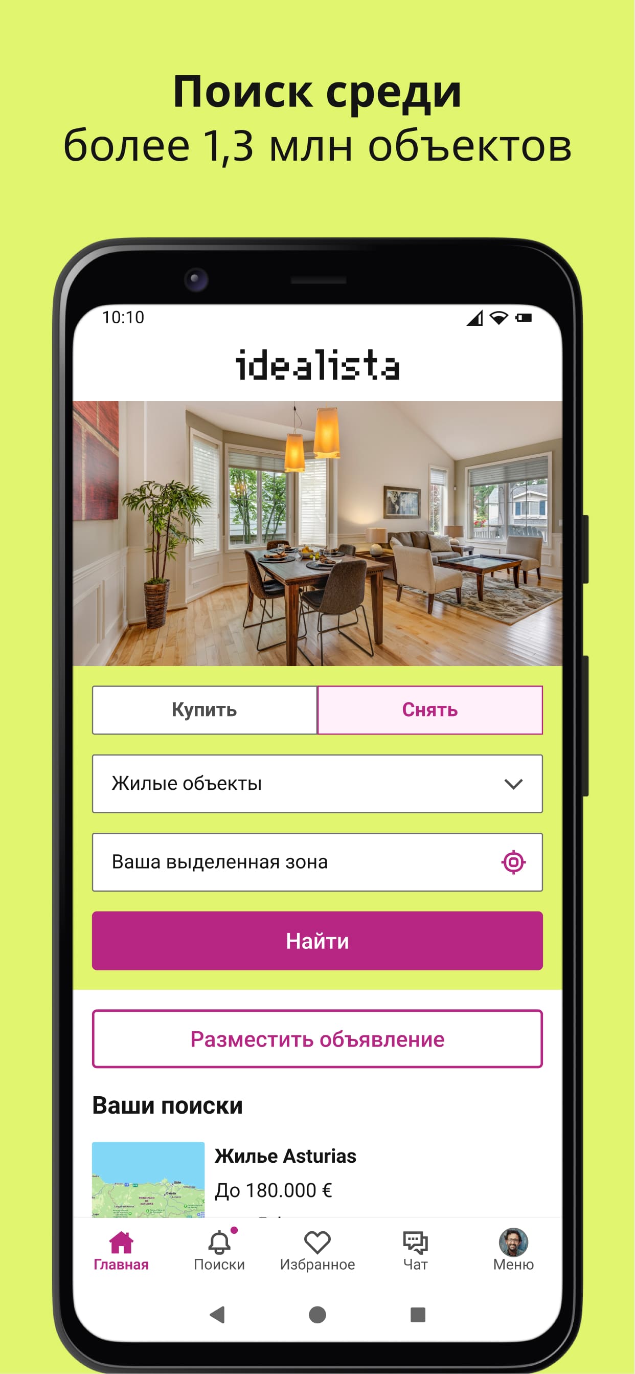 На idealista у нас есть самое продвинутое приложение для покупки, продажи и аренды любой недвижимости в Испании, Италии и Португалии. Если вы хотите купить или сдать недвижимость через наше приложение, в нем вы найдете полный инструментарий для публикации объявления и поиска покупателя или арендатора в рекордно быстрые сроки. Если вы ищете дом, парковочное место, комнату в аренду или другую недвижимость, у нас вы найдете более миллиона объявлений. Вот, например, что вы можете сделать в нашем приложении, если ищете недвижимость: • Нарисовать интересующую вас зону на карте. Откройте карту idealista и нарисуйте пальцем ту зону, где хотите жить. Вам будут показаны все доступные объявления в выделенной зоне, и вы также сможете посмотреть и сравнить цены объектов. Очень просто. • Найти доступную недвижимость недалеко от вас. Разрешите приложению idealista доступ к вашему местонахождению, и вы сможете посмотреть доступные объекты вокруг вас. • Активировать уведомления, чтобы успеть раньше всех. Если вы ищете жилье, то, наверное, уже поняли как важно успеть раньше других. Поэтому, у нас есть система мгновенных оповещений. Создайте поиск на idealista в интересующем районе с выбранными критериями и сохраните его. Включите уведомления для этого поиска, и каждый раз, когда будет опубликовано новое объявление, соответствующее вашим критериям, или когда будет снижена цена выбранного объявления, вы получите сообщение на свой мобильный телефон. • Задавать в чате вопросы рекламодателям или назначать время встречи для посещения объекта. • Создать свой аккаунт арендатора. В нашем приложении вы можете создать аккаунт с самопрезентацией, чтобы при отклике на объявление иметь больше шансов на то, что арендодатель отдаст предпочтение именно вам. Обязательно попробуйте наше приложение!