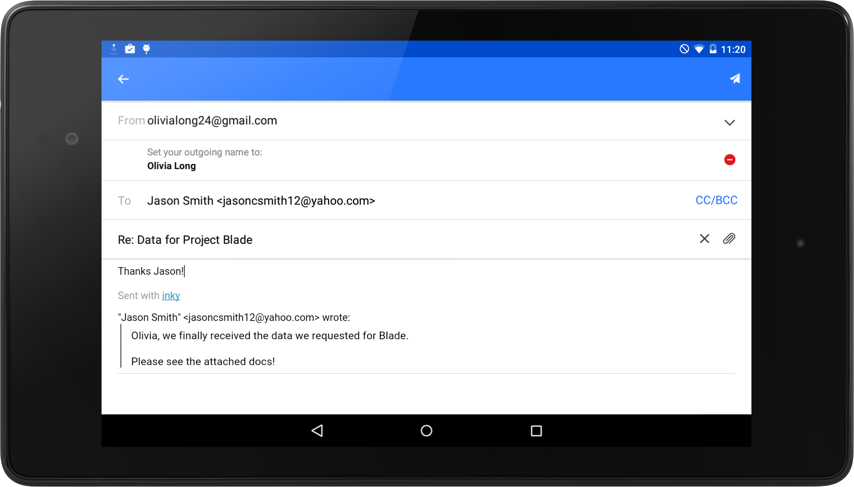 Inky makes setup a breeze — adding your existing email accounts takes just a few steps and no technical expertise. The Inky team uses state-of-the-art encryption and security to ensure that its servers and employees never see your email or other sensitive information.