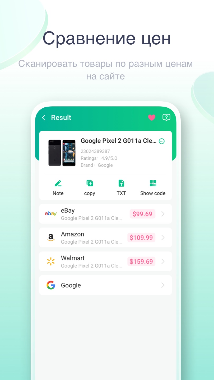 👍 iScanner — универсальный и удобный сканер, поддерживающий QR-коды и штрих-коды. Вы можете использовать iScanner для получения дополнительной информации. Вы можете сканировать товары онлайн и сравнивать цены. Вы также можете создать свой собственный QR-код для отображения в любое время. Вы также можете использовать iScanner в качестве менеджера QR и штрих-кодов. Что может сканировать iScanner? 📰 Информация о продукте: быстро получите название продукта, спецификацию, категорию, продукт, производителя и другую информацию; 💰 Сравнение цен: сравнивайте цены на основных платформах электронной коммерции, таких как eBay, Amazon и Walmart, чтобы сэкономить нервы, усилия и деньги. 📈 Историческая цена: легко узнать цену соответствующего продукта в разные периоды времени и получить самую низкую цену. 🔍 Поиск товара: быстро переходите на разные веб-сайты, чтобы узнать последние реальные цены. 🍗 Безопасность пищевых продуктов: отсканируйте QR-код, чтобы получить список ингредиентов, пищевую ценность и анализ ингредиентов пищи. 📚 Информация о книге: легко определить автора книги, издателя, биографию, язык, дату выпуска 📞 Социальные сети: создавайте QR-коды для основных учетных записей социальных сетей, таких как Facebook, Instagram, Twitter, WhatsApp и т. д. 📧 Электронная почта: сканируйте электронные письма для отправки одним щелчком мыши, просто и удобно. ☎️ Телефон: вы можете быстро получить контактную информацию, сэкономив время и силы. 👍 Возможности ✨ Узнать цену товара -- Сканируйте продукты, получайте реальные цены, сравнивайте цены на товары, выбирайте лучшую цену, экономьте деньги и беспокойтесь. 🔜 Просто и удобно - Гибкое и простое управление, легкое выравнивание QR-кода и получение более интересной информации. 😍 Поддержка более 36 форматов QR-кода и штрих-кода - С нашим встроенным считывателем вы можете легко сканировать любой QR-код и штрих-код. 🔐 Быстрый доступ к Wi-Fi - Отсканируйте QR-код, чтобы установить учетные данные и подключиться к Wi-Fi за считанные секунды. 🔦 Освещение и галереи - Автоматическое масштабирование и сканирование со светом в темноте. - Вы можете сканировать QR-код / штрих-код из галереи. 📃 Простой экспорт - Экспорт отсканированного содержимого одним щелчком мыши в формат CSV/TXT 🏦 Менеджер QR-кодов и штрих-кодов - Вся история сканирования будет сохранена для быстрого просмотра в любое время. Вы можете сохранить QR-код/штрих-код в своем телефоне. - Вы можете сохранить контакты в телефоне. - Вы можете создавать и управлять различными типами информации. 🔐 Сейф - iScanner требуется только разрешение камеры, чтобы защитить вашу личную жизнь. 💗💗💗 Скачайте и попробуйте. iScanner не подведет! Он станет вашей самой беззаботной домработницей с QR-кодом, обеспечивая вам удобную и комфортную жизнь!