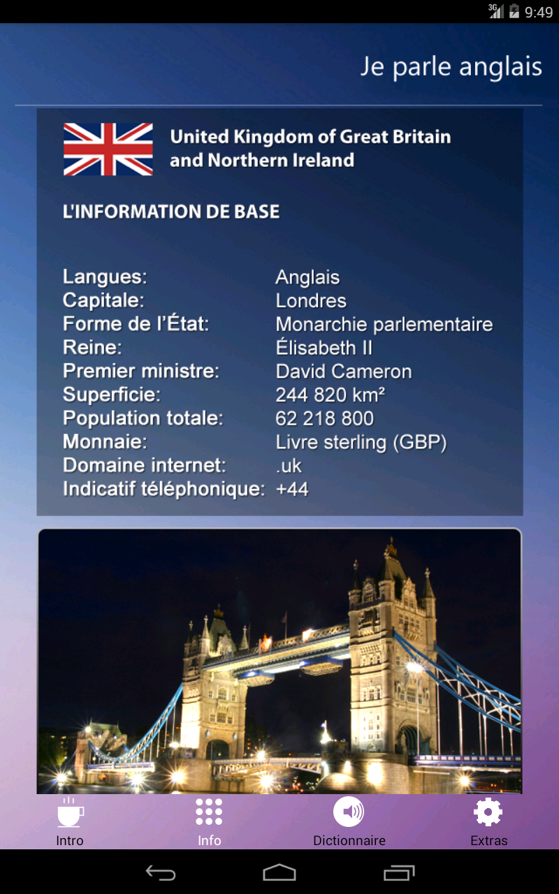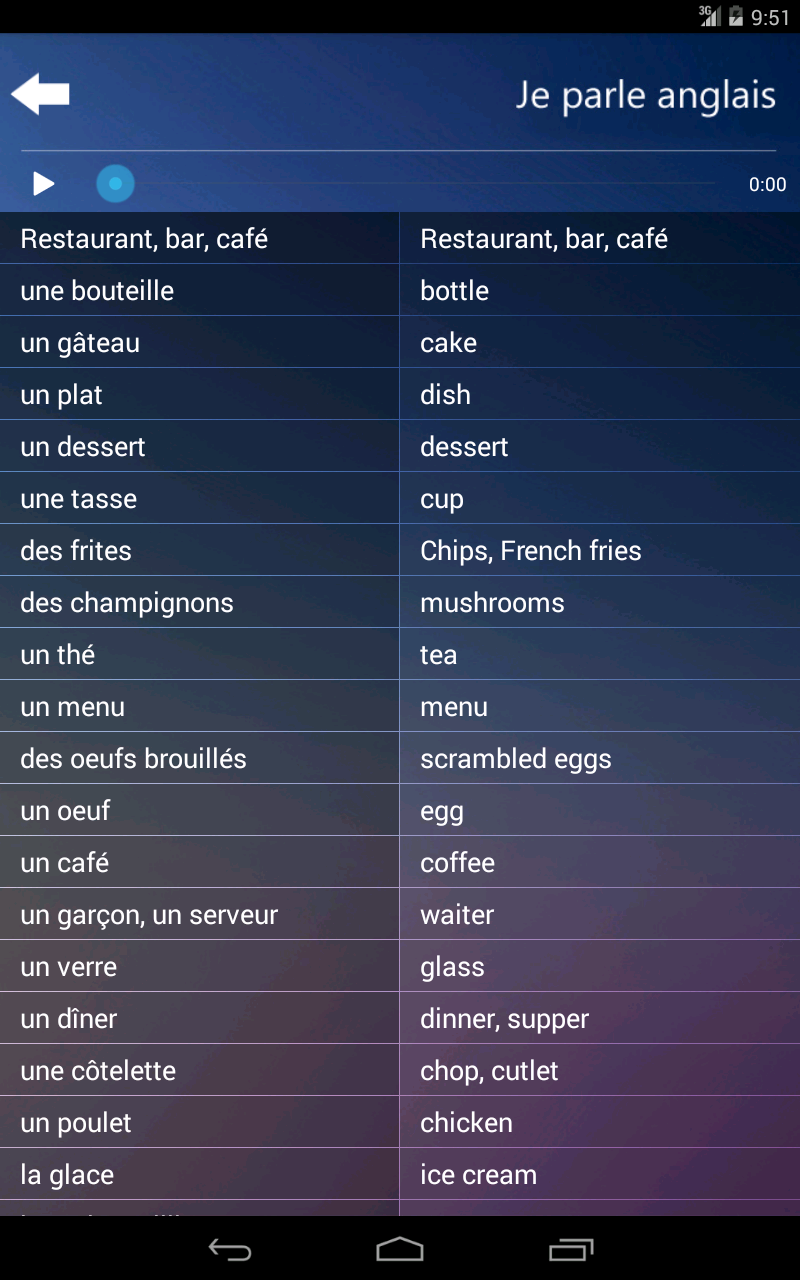 * Приложение для людей, которые знают французский и хотят научиться основам английского языка.