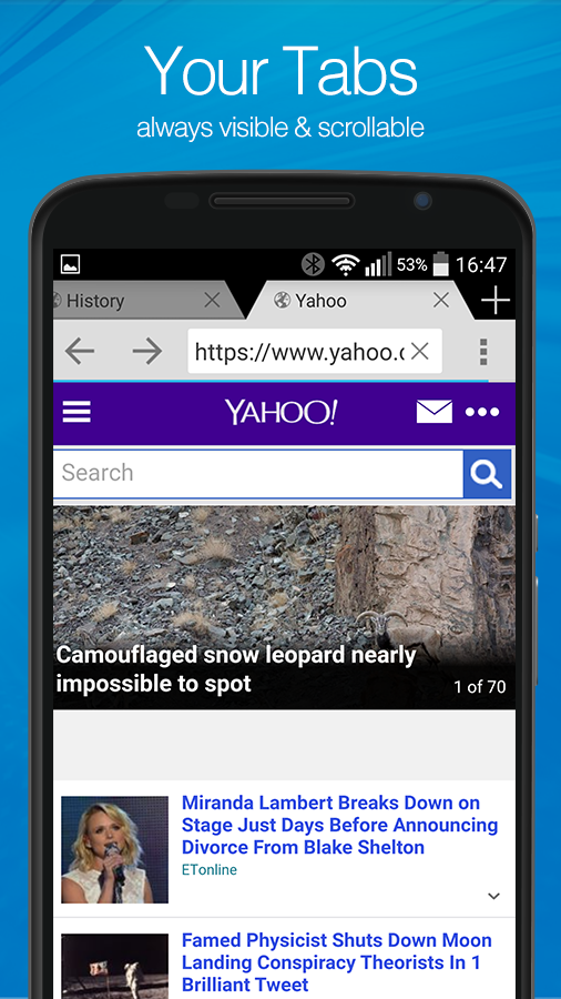 • Easy to access tabs - opened tabs are always visible & scrollable