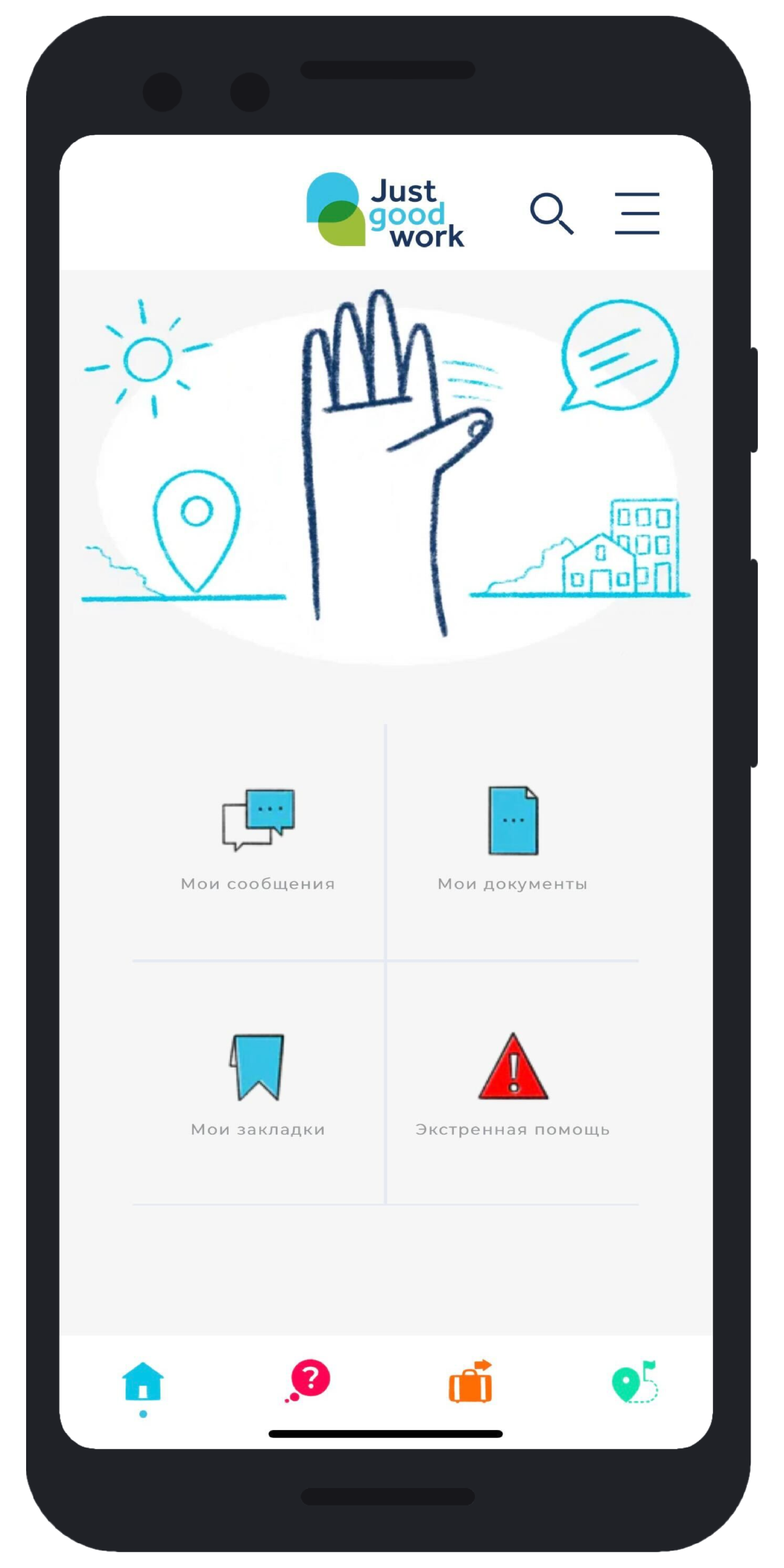 Just Good Work — это бесплатное интерактивное мобильное приложение. Оно предоставляет соискателям и сотрудникам необходимую информацию и советы по всем аспектам на пути к работе: начиная от найма до трудоустройства и жизни в новом месте до дальнейшего развития или возвращения домой.