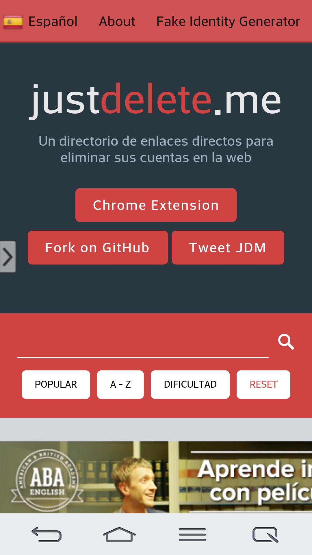 Justdelete.me es una web con la qual hace una grandisima lista de casi todas las posibles cuentas que te puedes hacer en internet y te ayuda a eliminarlas. Aqui te traigo la aplicacion inoficial de justdelete.me con la qual podras hacer qualquier cosa. Blog oficial de Runoplays http://goo.gl/YfHc91 web justdelete.me http://goo.gl/0pldOJ Aviso yo no tengo derechos de autor de la pagina justdelete.me ni tampoco quiero infringirlas,no gano dinero con ella. Creadores de justdelete.me: http://robblewis.me/ y http://edpoole.me/