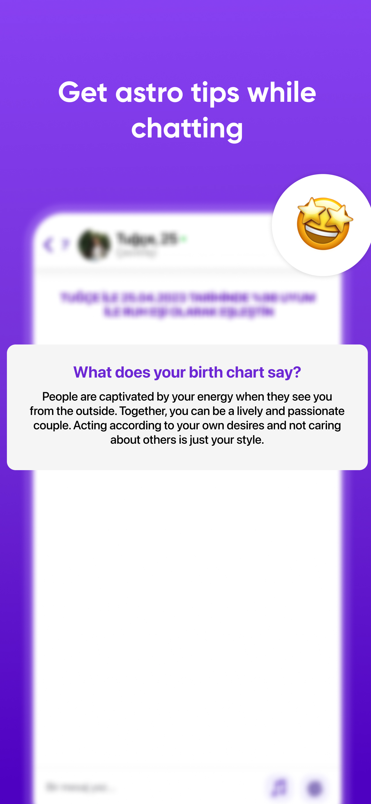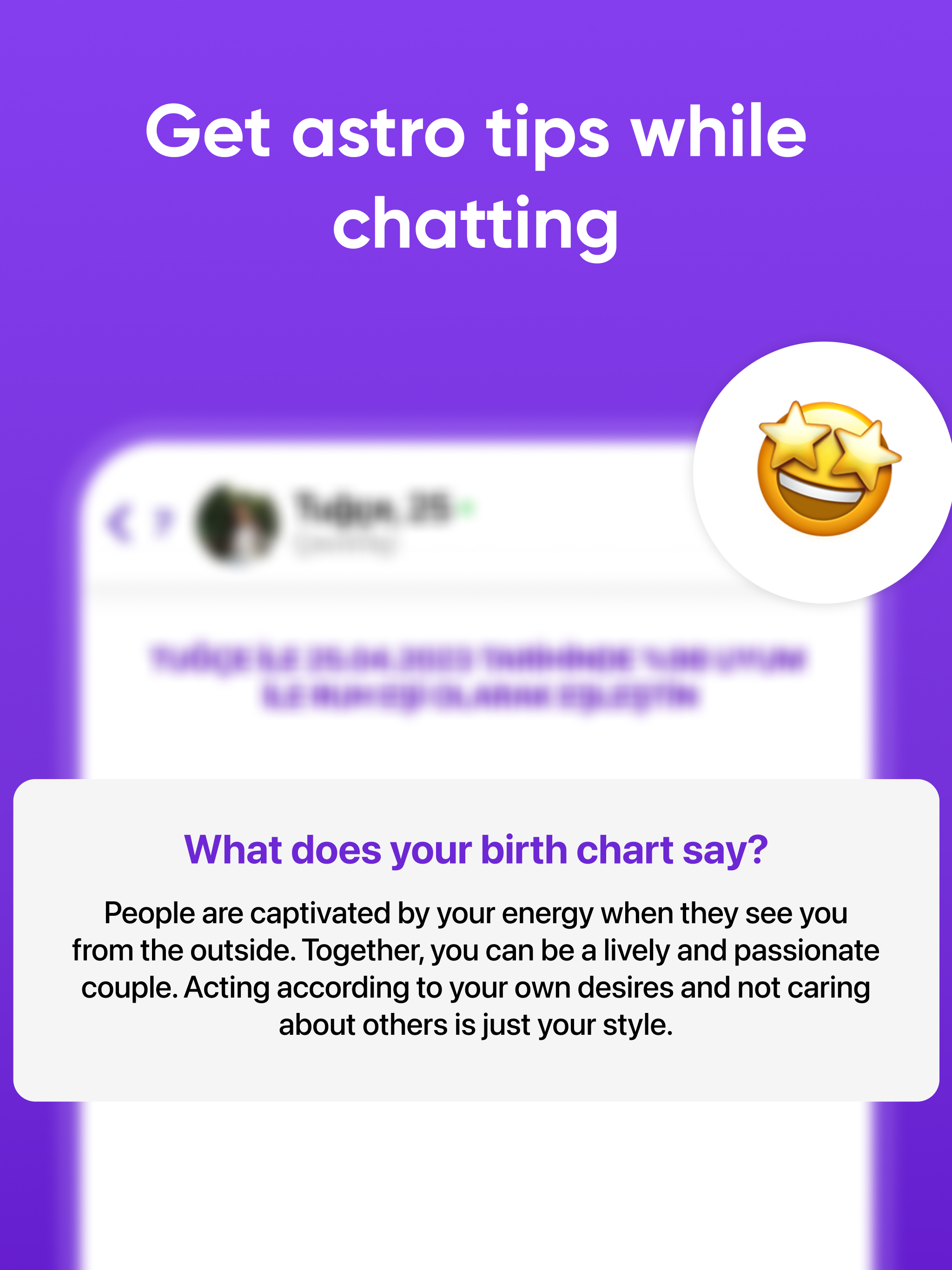 • Автоматически находите астрологически совместимых людей и общайтесь в чате,