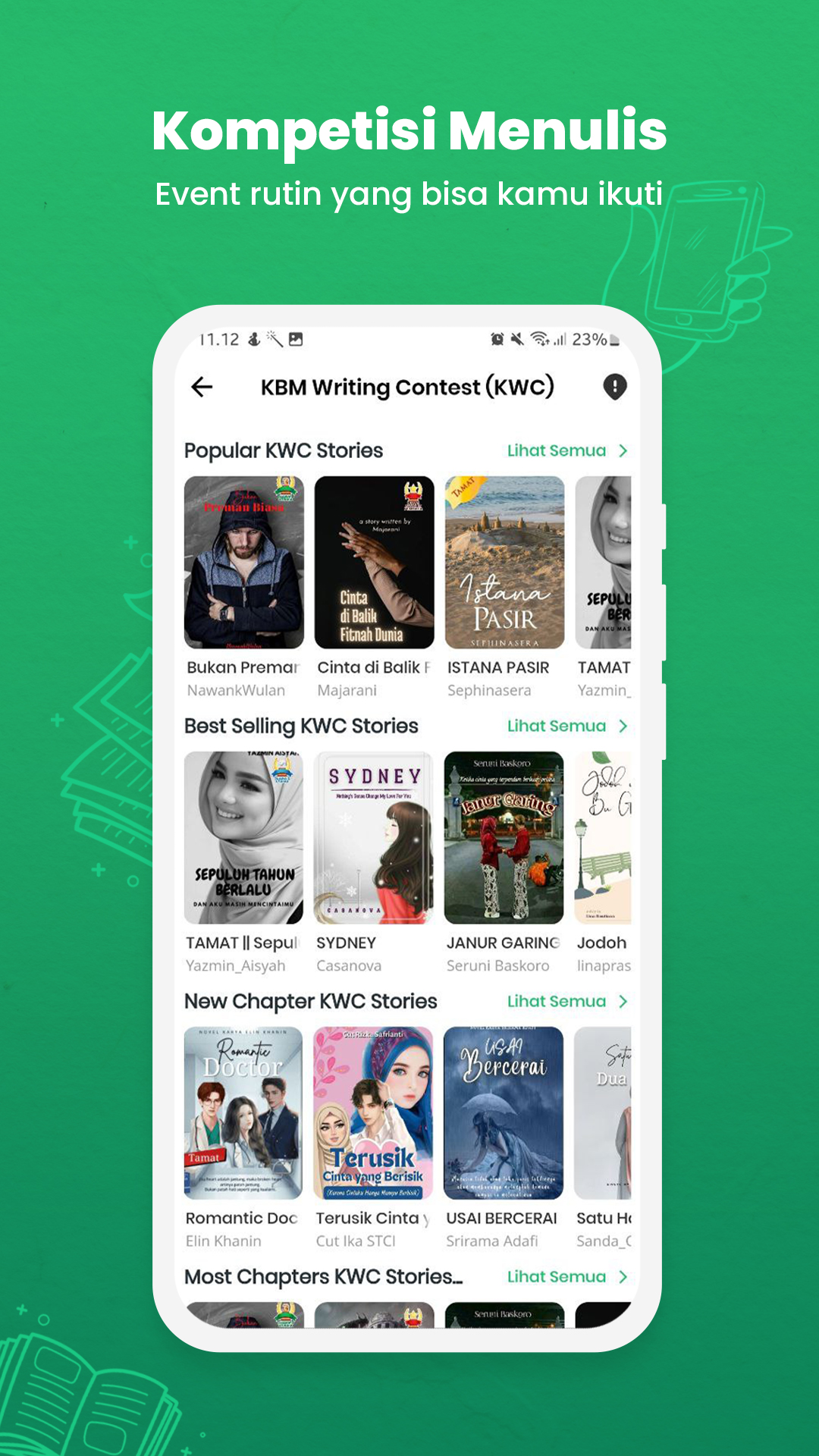 CIE YANG MAKIN BISA ASYIK BERLITERASI DI MANA AJA! Aplikasi kepenulisan yang ramah satu ini punya kabar gembira alias sudah siapin sederet fitur baru juga keren buat maksimalkan keseruanmu. Mau tahu apa aja yang baru? - Beranda - Fitur Penukaran Koin - Sensor Kata - Kata Terlarang - Tip Untuk Penulis - Bacaan Saya - Dompet Saya Itu baru beberapa ya, masih ada yang lainnya! Nah, ayo buruan update aplikasimu. Supaya bisa nikmatin semua fiturnya.