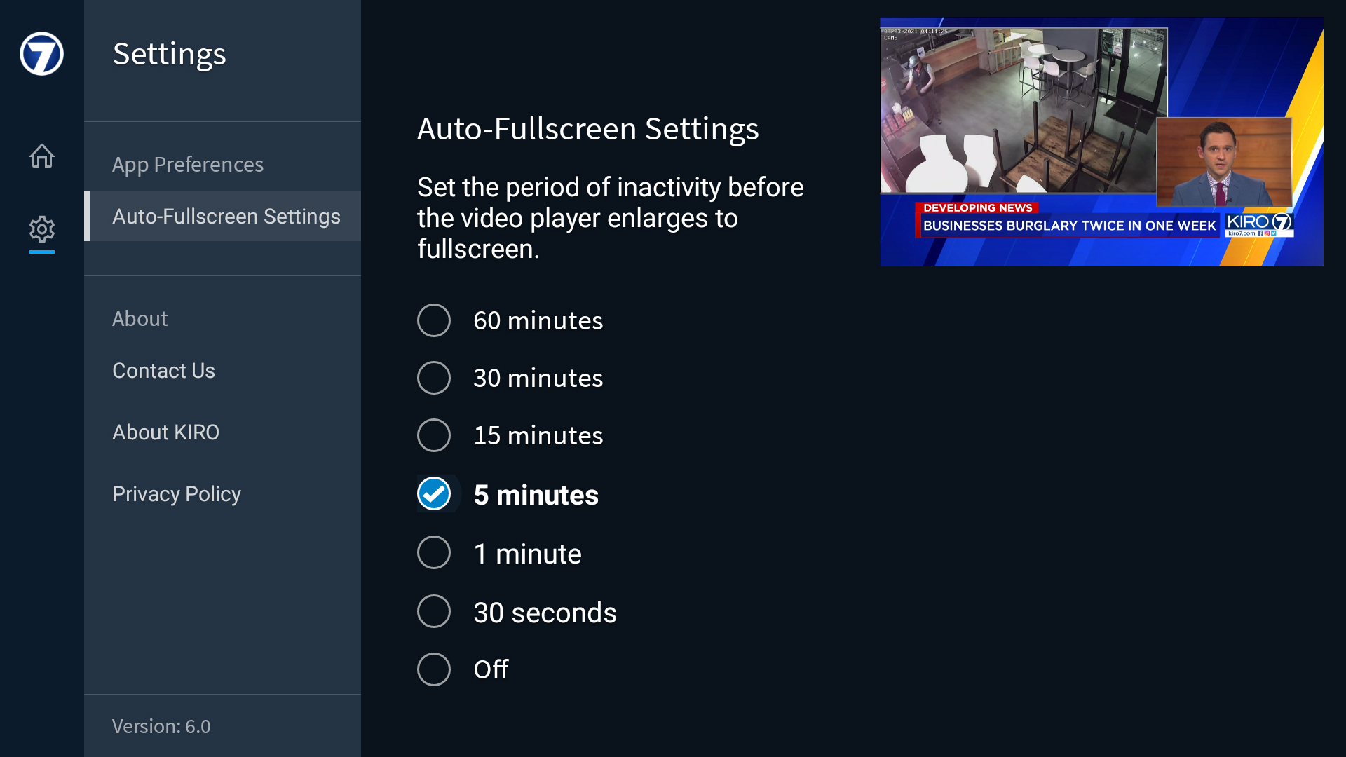 С помощью приложения KIRO 7 News вы можете быть в курсе последних и развивающихся новостей Сиэтла и всего Западного Вашингтона. Получайте оповещения с таргетингом на ваше местоположение, чтобы вы знали, когда появляются новости, где вы находитесь. Смотрите прямые трансляции новостей KIRO 7 прямо со своего телефона или планшета. Планируйте свой день и готовьтесь к нему с помощью прогнозов погоды и предупреждений KIRO 7 PinPoint. Будьте в курсе событий с помощью предупреждений о дорожном движении KIRO 7 в реальном времени, которые помогут вам спланировать поездку на работу. Функции • Новостные оповещения о последних, развивающихся и основных новостях дня • Обновления погоды в KIRO 7 PinPoint. • Прямая трансляция выпусков новостей KIRO 7 • KIRO 7 Оповещения о дорожном движении в реальном времени • Настраиваемые уведомления о новостях KIRO 7 • Доступ к эксклюзивному контенту KIRO 7 Приложение KIRO 7 News предупреждает вас о главных местных новостях во всех районах западного Вашингтона, включая Такому, Рентон, Эверетт, Снохомиш, Киркленд, Белвью, Остров Мерсер, Берег, Редмонд, Вудинвилл, Бремертон, Сильвердейл, Иссакуа, Кент, Оберн, Линнвуд, Ботелл, Эдмондс, Лейк Стивенс, Мэрисвилл, Лейквуд, Олимпия и Пуйаллап. Получите доступное освещение, которое держит вас в курсе новостей KIRO 7 News. Продолжительное использование GPS в фоновом режиме может значительно сократить срок службы батареи. Обратите внимание: в этом приложении используется проприетарное программное обеспечение Nielsen для измерения, которое позволит вам участвовать в маркетинговых исследованиях, таких как Nielsen TV Ratings. Пожалуйста, посетите www.nielsen.com/digitalprivacy для получения дополнительной информации.