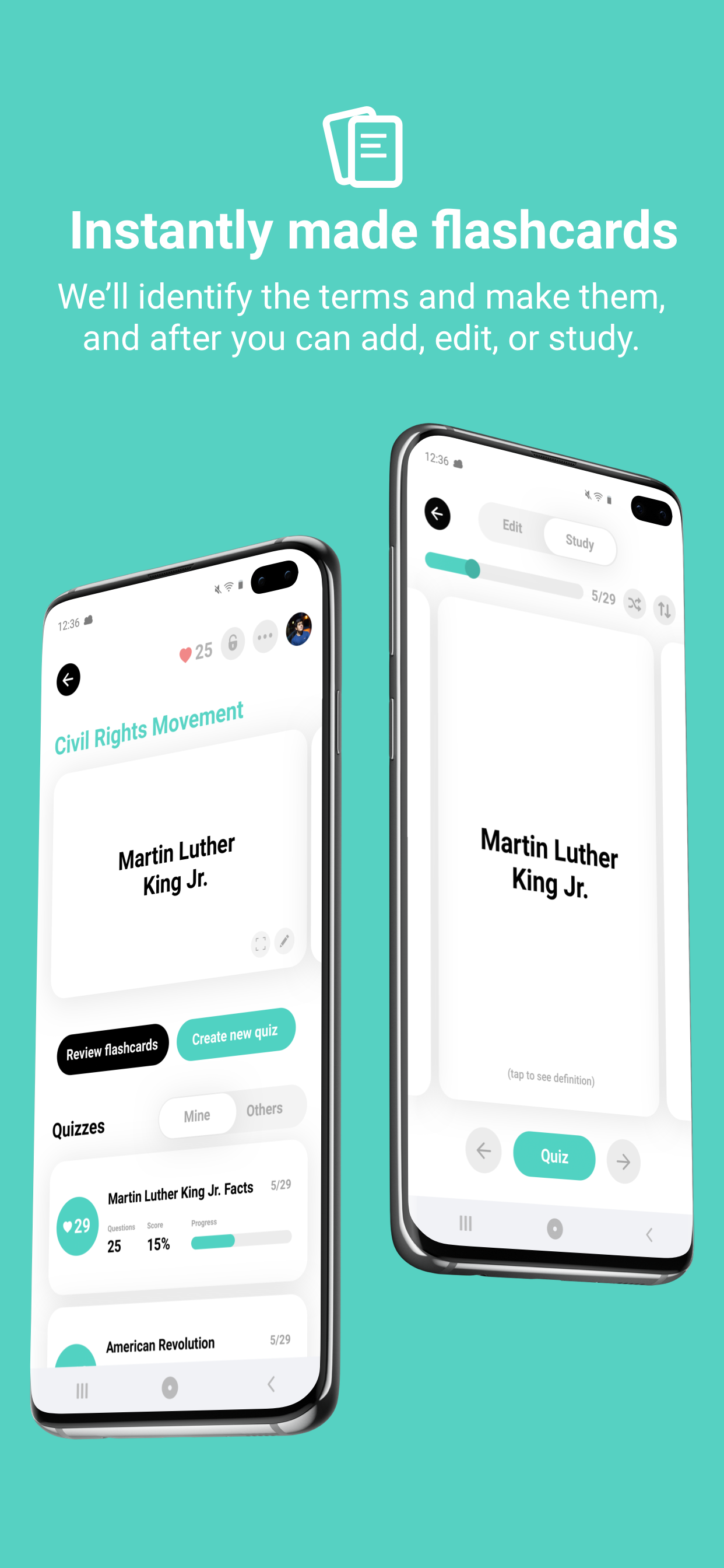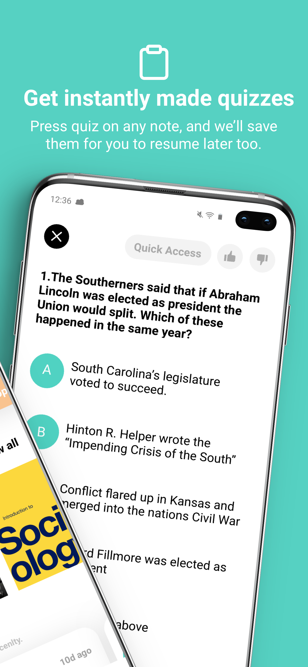 Automatically make quizzes from any resource (Word, PDF, Google Doc, articles online) on your phone or laptop
