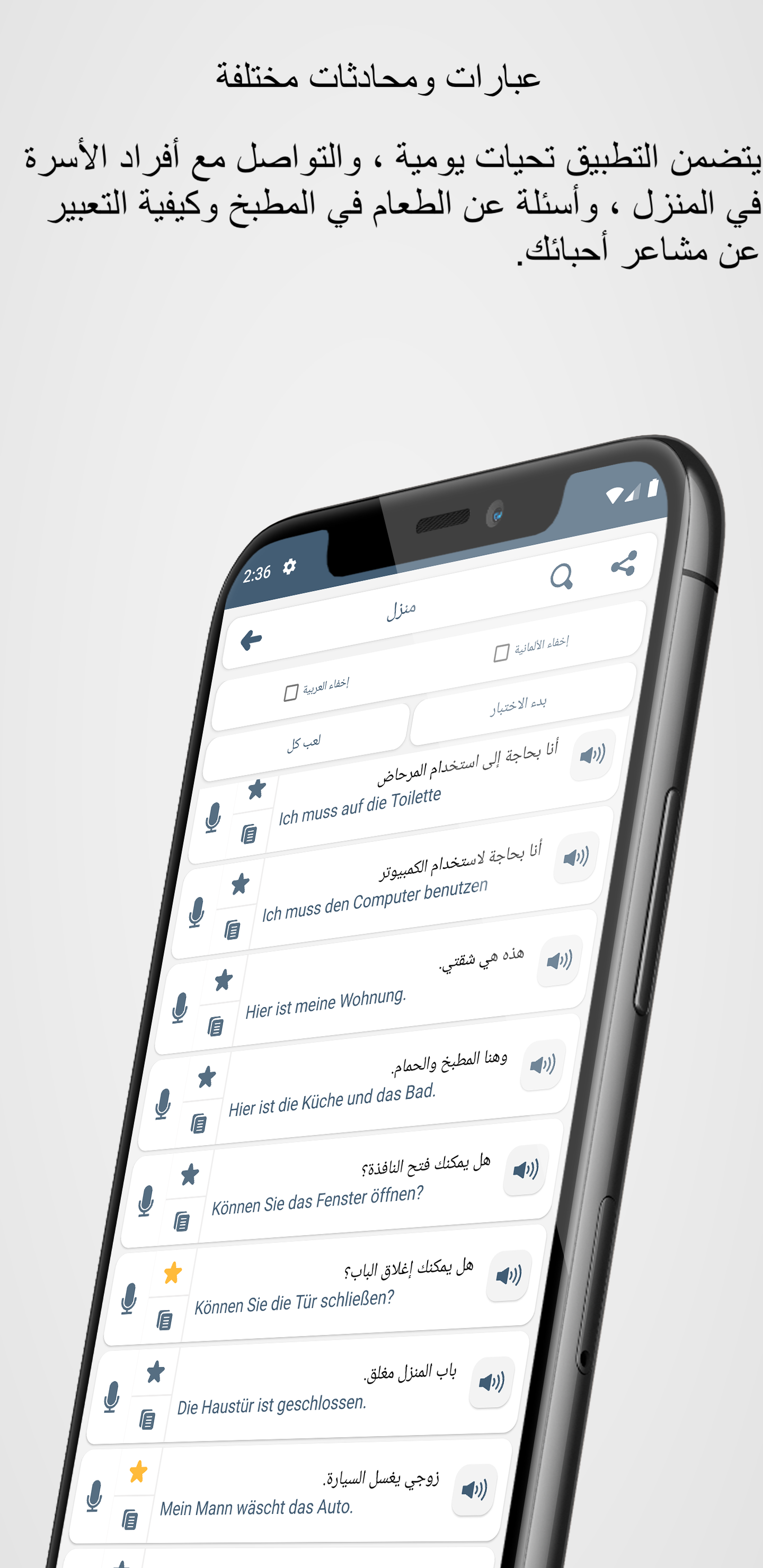 Learn German - это бесплатное приложение, которое позволяет выучить немецкий быстро и эффективно. Практикуйтесь в чтении, разговорной речи, аудировании и письме. Приложение также дает возможность услышать предложение вслух от носителей немецкого языка. Выучите слова из всех основных категорий, которые необходимы вам для свободного общения в любой ситуации. Алфавит, числа, дни, месяцы, времена года ... Изучите буквы немецкого алфавита и научитесь писать числа на немецком языке, дни недели, месяцы, времена года ... Разные фразы и разговоры Приложение включает в себя ежедневные поздравления, общение с членами семьи дома, вопросы о еде на кухне и о том, как выразить чувства своих близких. Свободно общайтесь с коллегами или начальником. Научитесь общаться с одноклассниками и учителями в школе и научитесь задавать вопросы о лекциях. Если вы путешествуете, вы научитесь спрашивать дорогу и места, которые хотите посетить. Вы также можете найти советы о ресторанах и отелях, о том, как заказать еду или забронировать номер в отеле и произвести оплату. Вы узнаете, как обращаться за медицинской помощью, когда пойдете в больницу. Фразы на спорт, покупки в магазине и прочее. -Грамматика Вы сможете использовать существительные, прилагательные, наречия, прошедшие времена и многие другие грамматические правила в предложении из различных примеров, предоставленных приложением. Практика чтения Вы можете послушать вслух разные истории от носителей немецкого языка, всю историю или каждое предложение подряд, а затем попрактиковаться в чтении. - иллюстрации картинки Один из самых эффективных способов запоминать слова - учить их по картинкам. Это приложение дает вам возможность находить слова-картинки с картинками. -Контрольная работа Проверьте свои знания с помощью различных типов тестов, предоставляемых приложением, таких как: связывание слов с одинаковым значением, поиск правильного ответа на картинке, перевод слова или предложения, прослушивание предложения, а затем его написание и произнесение. . Напишите появившееся предложение и многое другое. Бросьте вызов друзьям Создайте задачу и отправьте идентификатор своему другу, который найдет вас и свяжется с вами. В рамках заданий создавайте викторины с вопросами и ответами и бросайте вызов друг другу или общайтесь в группах. Вот некоторые из категорий, которые вы найдете в приложении: - алфавит, - Грамматика, - Подготовить, Ежедневные слова и фразы, - дни недели, месяцы, времена года, - дома, - на работе, - путешествовать, - В ресторане, - больница, - В магазине, - о спорте, - выражать чувства, Различные диалоги и многое другое.