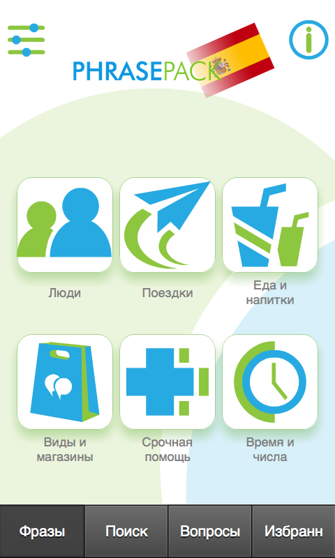 Приложение PhrasePack для испанского языка было специально создано, чтобы помочь Вам общаться с местными жителями.