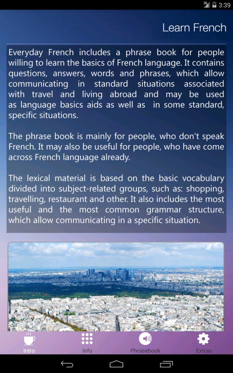 * Приложение для людей, которые знают английский язык и хотят, чтобы изучить основы французского языка.