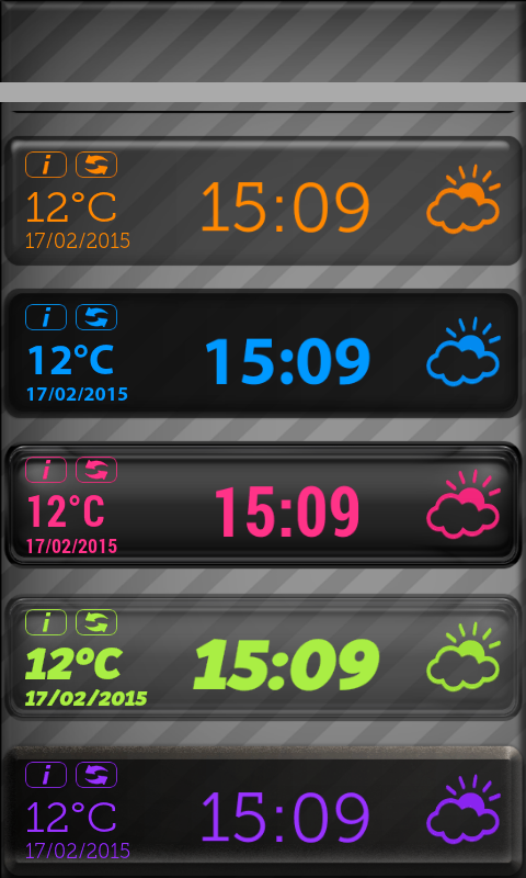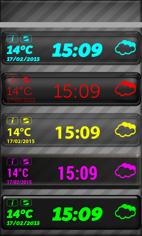 Светодиодные фонари представляют собой небольшие источники света постоянного, разработанные специально для улучшения внешнего вида вашего экрана. Общие Светодиодные цвета: оранжевый, красный, зеленый, и синий, каждый из этих цветов будет выглядеть потрясающе на черном фоне. Светодиодные фонари в различных цветах будет держать внимание на время и погоду на рабочем экране. Это "часы виджет" дает блестящий вид на часы и минуты в день. Скачать и получить коллекцию светодиодных конструкций часов, которые показывают прогноз погоды в качестве домашней экрана виджета.