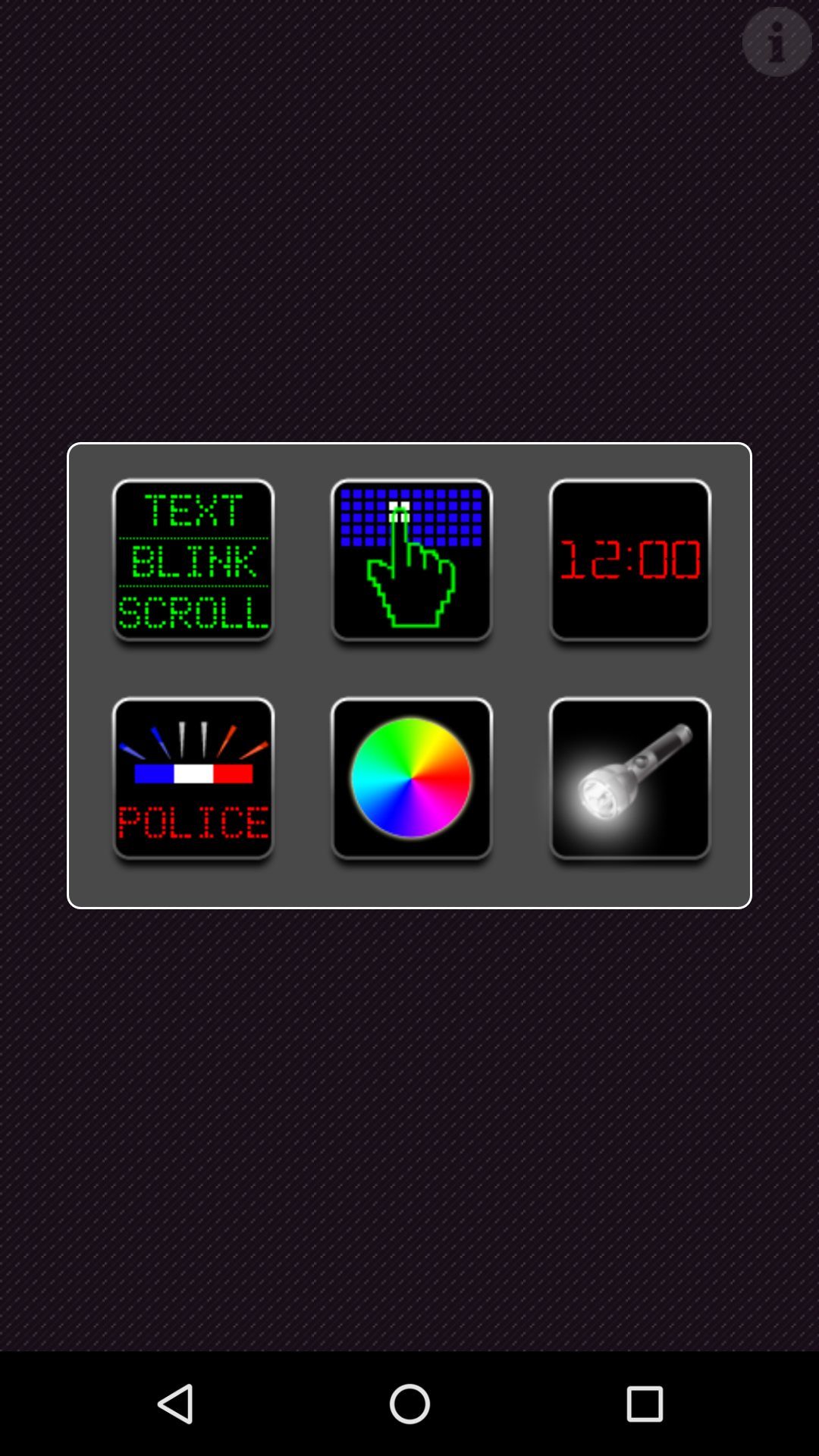 LED Light Fun это приложение, которое предоставляет вам весело провести время с светодиодные фонари. Особенности: - Светодиодный дисплей (статический текст, выделите текст, мигание текста) - Светодиодный сенсорный дисплей (статический светодиод, мигает светодиод) - Цифровые часы (время, дата) - Свет полиции со звуком - случайный цвет огней - Фонарик камеры - Фонарик виджет - Сохранить и поделиться рисунки Ваш телефон светодиодный дисплей, и вы можете написать свой текст как текст Светодиодный свет, вы можете изменить размер шрифта, цвет текста, цвет фона, прокрутки текста, прокрутки путь, скорость прокрутки, мигание, мерцание скорость, мерцание цвета. Сенсорный светодиодный дисплей, включить / выключить свет СИД с одним нажатием / Touch, а также вы можете нажать и переместить для включения / выключения света, с длинным щелчком (коснитесь и удерживайте) вы можете изменить цвет любого светодиода. Остальные настройки в меню -> Настройки, некоторые из параметров, которые вы можете изменения: размер, цвет, фон, яркость, мигание, мерцание светодиодный индикатор режима работы. Есть несколько предустановленных рисунков, таких как сердце, I Love You сообщение, смайлик, щенок, котенок и т.д. Все эти рисунки можно сохранять и делиться, как изображение или анимированное изображение. Цифровые часы, вы можете изменить размер, цвет, фон, яркость, формат времени 12/24, формат даты (например, ДД / ММ / YYYY или MM / DD / YYYY), шоу или дата скрыть. Полиция свет, вы можете управлять сиреной и мигающего скорость. Случайные цвета света, свет диско, вы можете контролировать скорость изменения цвета. фонарик камеры, включите фонарик / выключить на экране и камеры, режим, стробоскоп, цветной фонарик мигает. App виджет, одним нажатием / нажмите на виджет в экране телефона можно включить фонарик и свет экрана. Легко и быстро. С помощью этого приложения вы никогда не будет в темноте. Вы будете иметь яркий фонарик в кармане. Разрешения Объяснение: * Полный доступ к сети * и * Просмотр сетевых подключений * - используется для приема и показа рекламы. * Камера, Отснятые фотографии и видео * - Он используется только для фонаря доступа на камеру, включить или выключить фонарь. * Влияет батареи, контроль фонарик * - Некоторые телефоны требуют такого разрешения для фонарика доступа.
