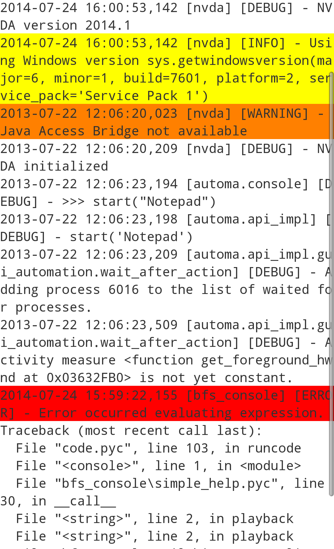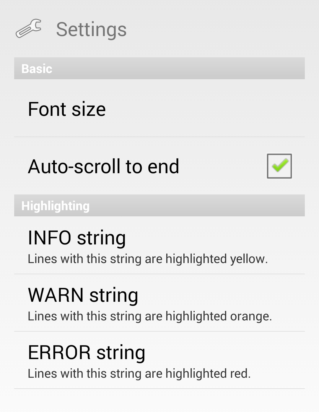 Log files very often have different kinds of messages - infos, warnings, errors, etc. It's extremely helpful when reading log files to be able to visually distinguish these different log levels. Log File Viewer lets you configure the strings which identify INFO, WARNING and ERROR messages and then highlights lines containing these strings in yellow, orange and red, respectively (Pro only).
