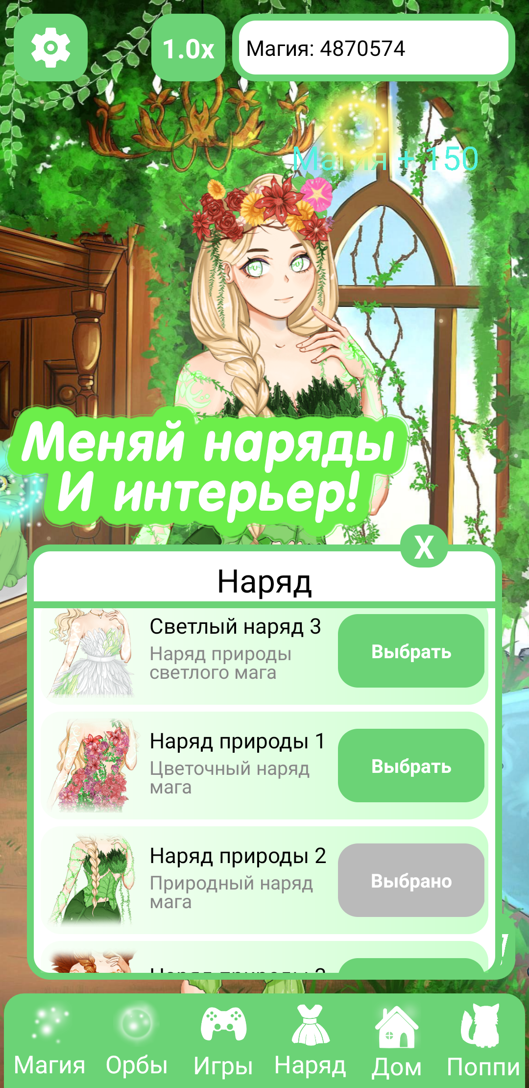 Помоги девочке с развитием. Накапливайте вместе магию, изучайте и улучшайте заклинания, используйте магические артефакты (волшебные палочки, кулоны, лампы) , а так же черпайте магию из орбов (магических сфер).