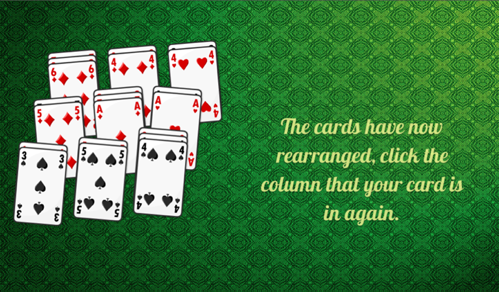You will then be asked to pick the row your card is in one more time before revealing to you the card the Magic Mind Reader thinks you had been concentrating on..