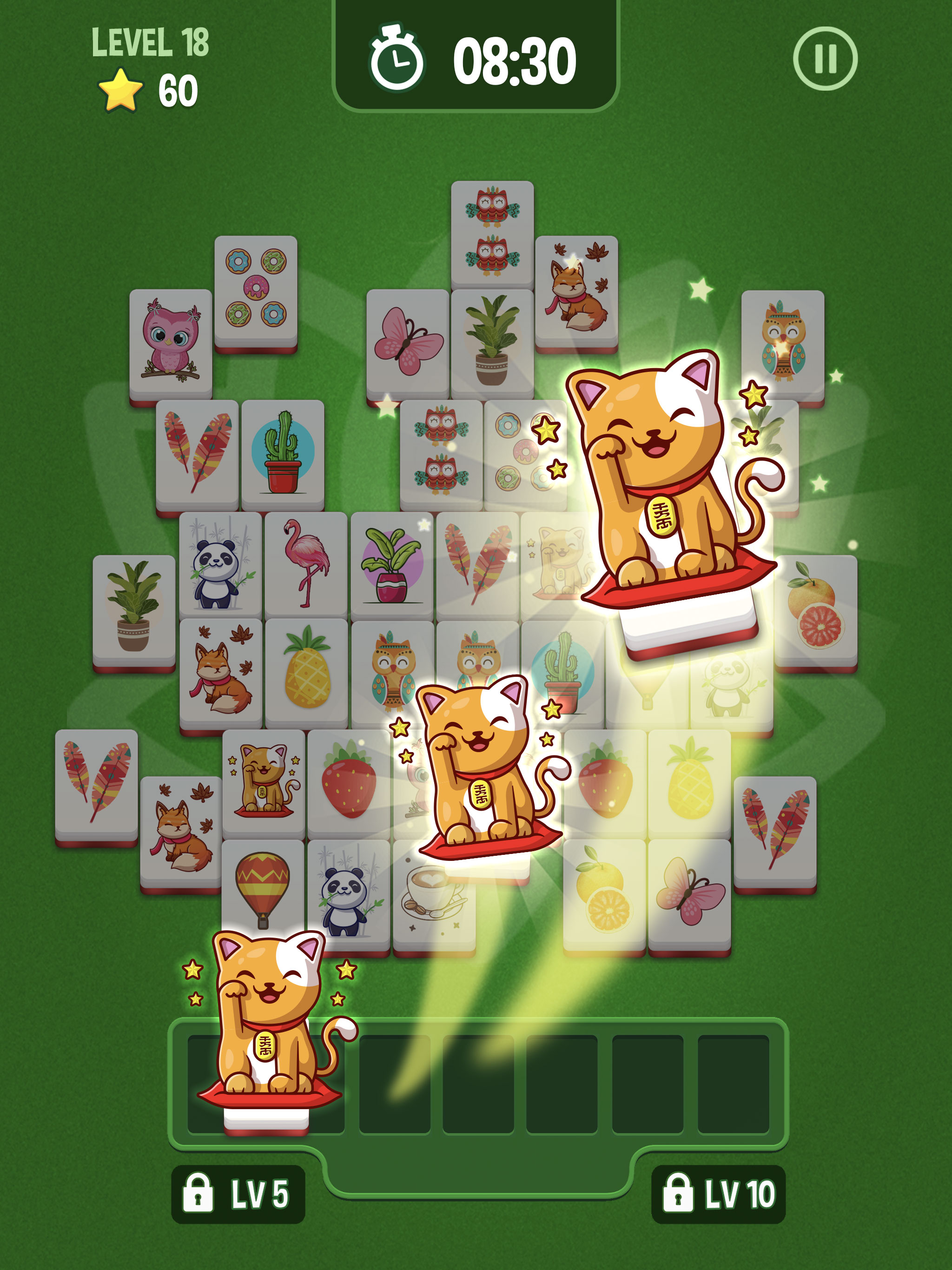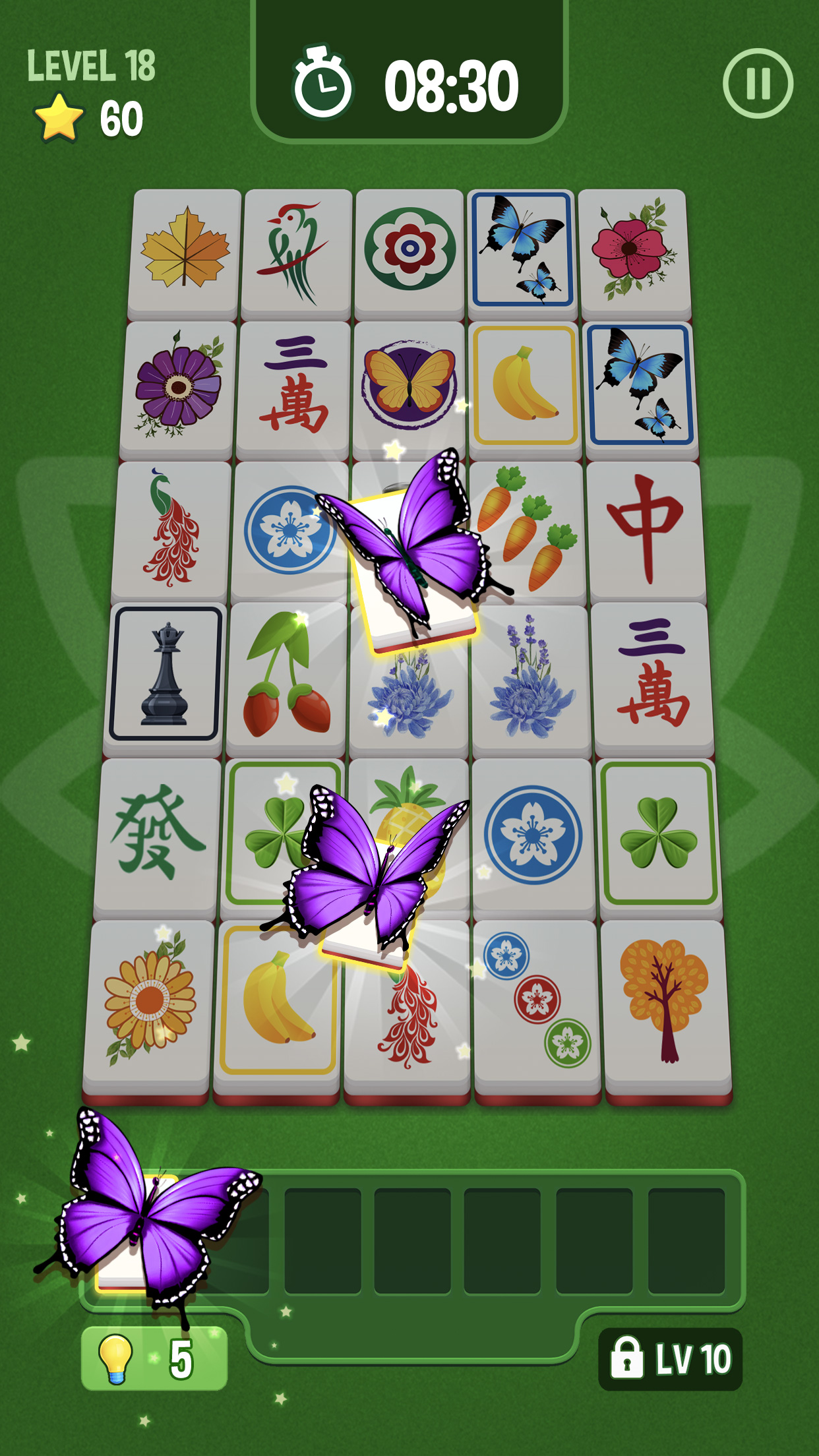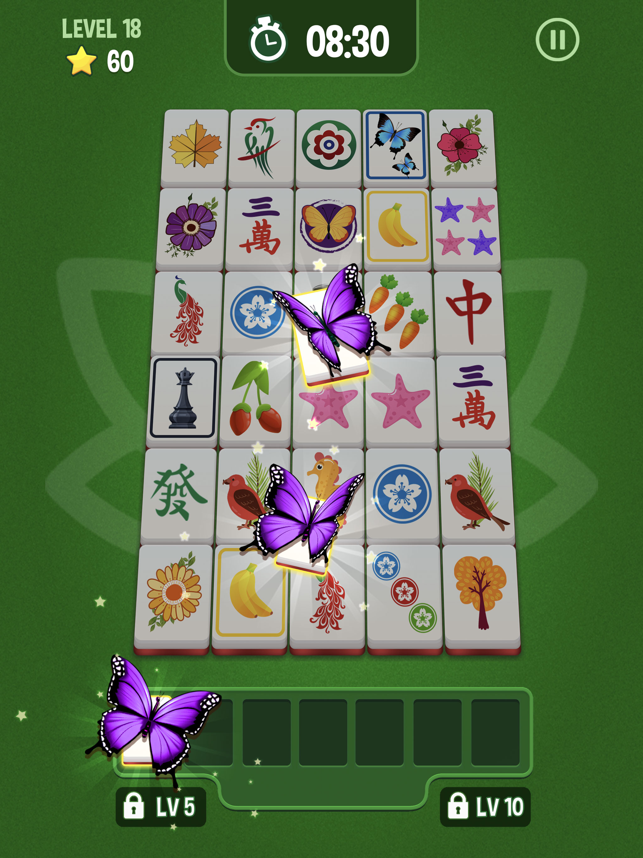 ◆ Просто нажмите, чтобы поместить плитки в коробку. Будут собраны три одинаковые плитки. Соберите все плитки как можно быстрее.
