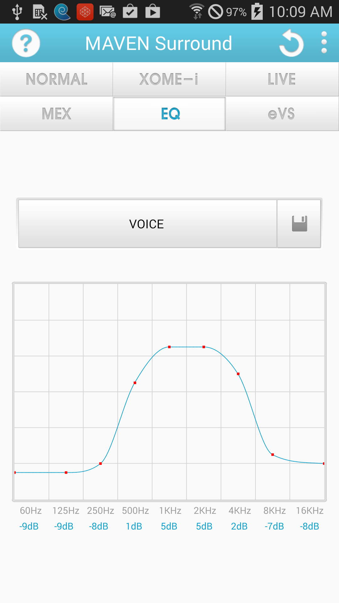 A. XOME-i(Externalization), Live(Reverberation), Mex(Maestro), EVS(Virtual Speaker)