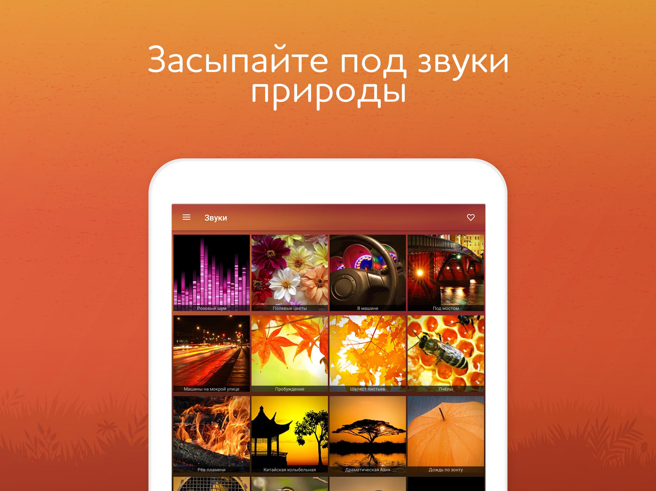 Не спится? Через 20 минут или меньше уснёте. Представляем самое популярное снотворное приложение! Начните нормально спать сейчас и наслаждайтесь крепким ночным сном, какого уж долго не было! Принцип действия: Выберите понравившиеся звуки и мелодии и скомбинируйте их в комплекс. Отрегулируйте громкость каждого звука индивидуально для лучшего результата. Ложитесь, слушайте и наслаждайтесь отходом ко сну. Всё очень просто и практично. Если нужно, используйте таймеры и сигналы. Каждый раз пробуйте разные новые комплексы! Также полезно во многих других ситуациях. Идеально подходит для других видов деятельности, таких как релаксация в гидромассажной ванне, занятия йогой или на занятиях по релаксации, сеансах массажа или даже когда вы решили вздремнуть! Родителям - идеальное средство для усыпления малыша! Так же как 10-миллионное сообщество наших пользователей, скажите прощай бессоннице, укрепите здоровье и почувствуйте себя лучше, вернув себе заслуженный сон! Особые упоминания Рекламируется в ряду лучших приложений от компании Amazon за 2012 г., журналах People Magazine, Health Magazine, Knowyourmobile, Mashable, Autism Pluggedin, на сайте Healthline.com и многих других! Главные функции ✓ 36 звуков окружающей среды выдающегося качества ✓ 2 частот бинауральных биений для захвата мозговых волн. ✓ Микширование до 10 звуков! ✓ Фоновая поддержка. Слушайте комплексы параллельно с работой других приложений на вашем устройстве. ✓ Индивидуальная регулировка громкости для звуков и мелодий. ✓ Тысячи способов отойти ко сну через создание уникальных комплексов. Возможности почти безграничны! ✓ Включает 4 готовых избранных композиций для лёгкого старта. ✓ Без труда создавайте, сохраняйте, именуйте, сортируйте и воспроизводите повторно избранные композиции. ✓ Система таймера для установки длительности любимых композиций. Идеально, если собираетесь спать. ✓ Пользуйтесь уникальным и красивым интерфейсом, чтобы легко выбирать звуки. ✓ Доступ к блогу с подсказками и статьями специалистов, которые помогут лучше понять проблему и укрепить здоровье. 36 высококачественных звуков белого шума из окружающей среды и музыки Свидетельства О приложении По степени совершенства Relax Melodies - лучшее из доступных приложений в области персональной практической пользы для сна. Несколькими касаниями создаётся идеальная композиция с нужной для вас окружающей средой. Возможность выбора окружающих звуков и бинауральных биений из белого шума даёт возможности полной индивидуальной настройки и личных впечатлений. Загрузите сейчас и сообщите нам, как оно подошло для вас!