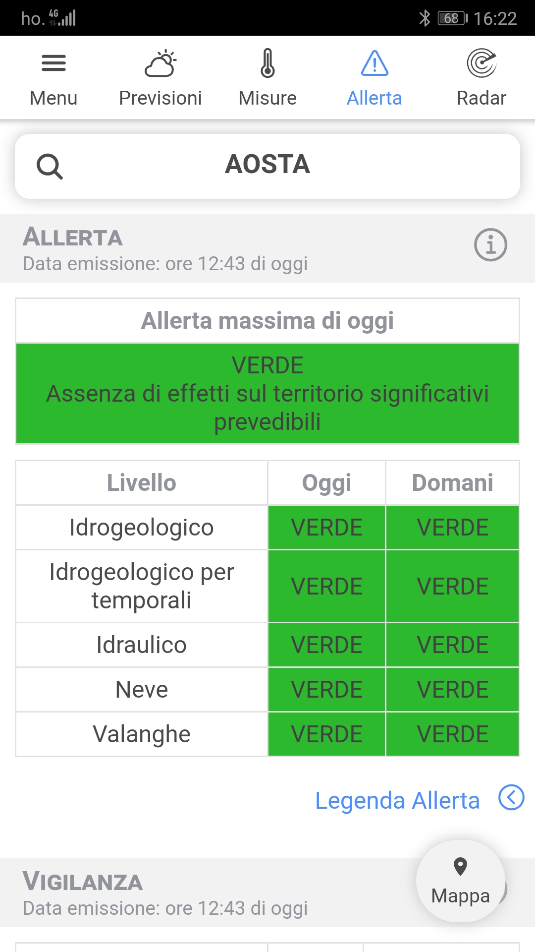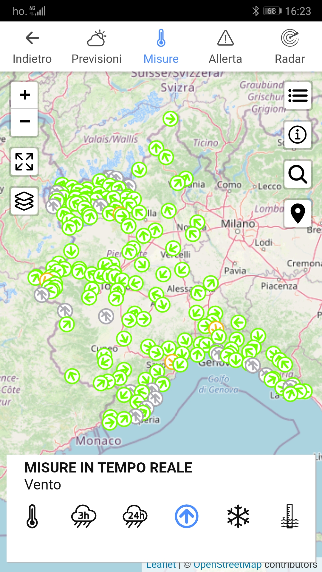 Он предлагает возможность просмотра прогнозов, данных наблюдений и предупреждений в Пьемонте, Валле д'Аоста и Лигурии.