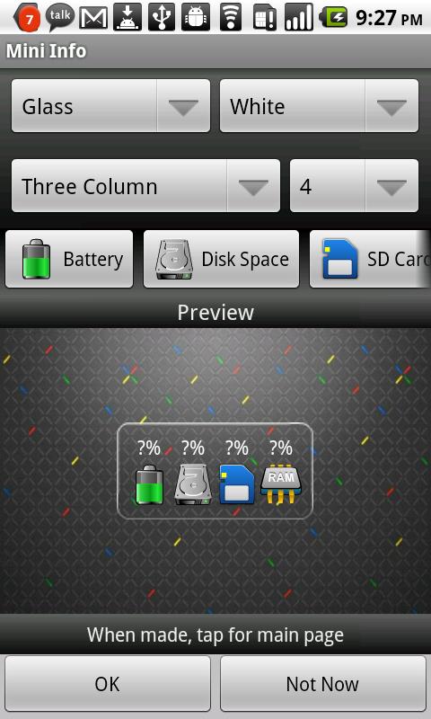 - Уникальная панель предварительного просмотра, показывающий, как виджет будет выглядеть на главном экране