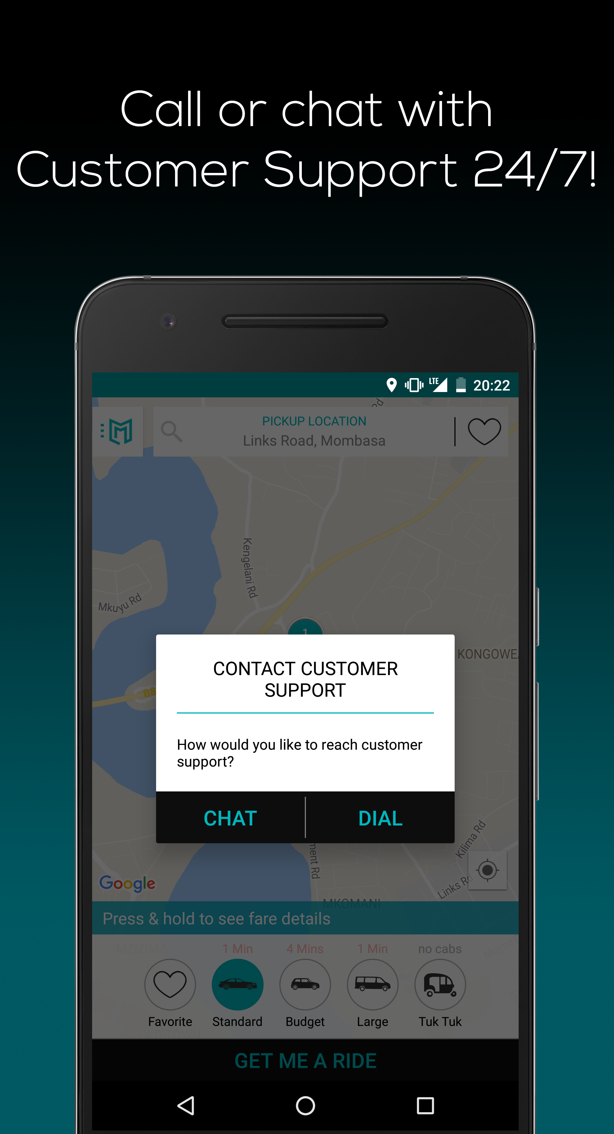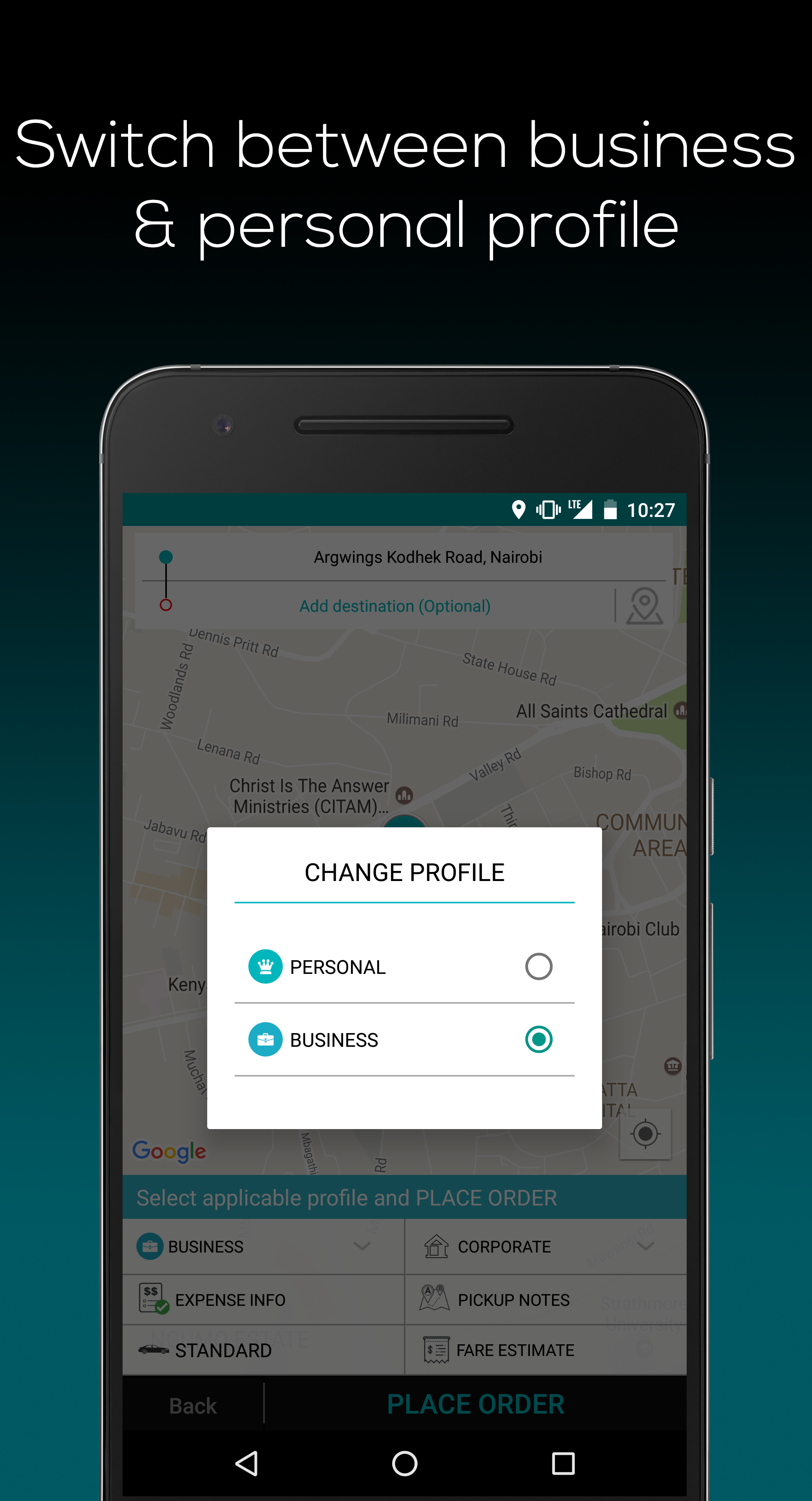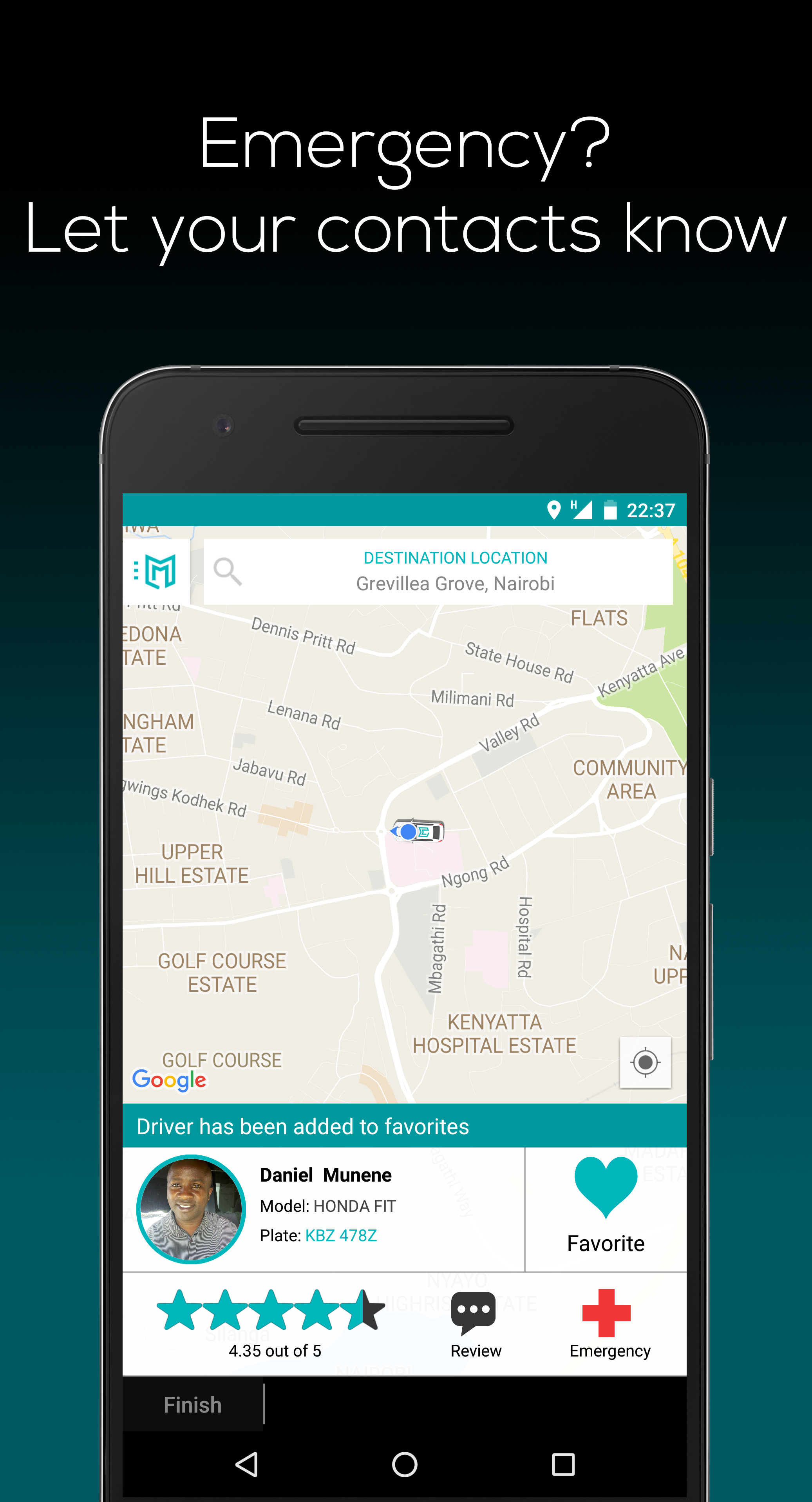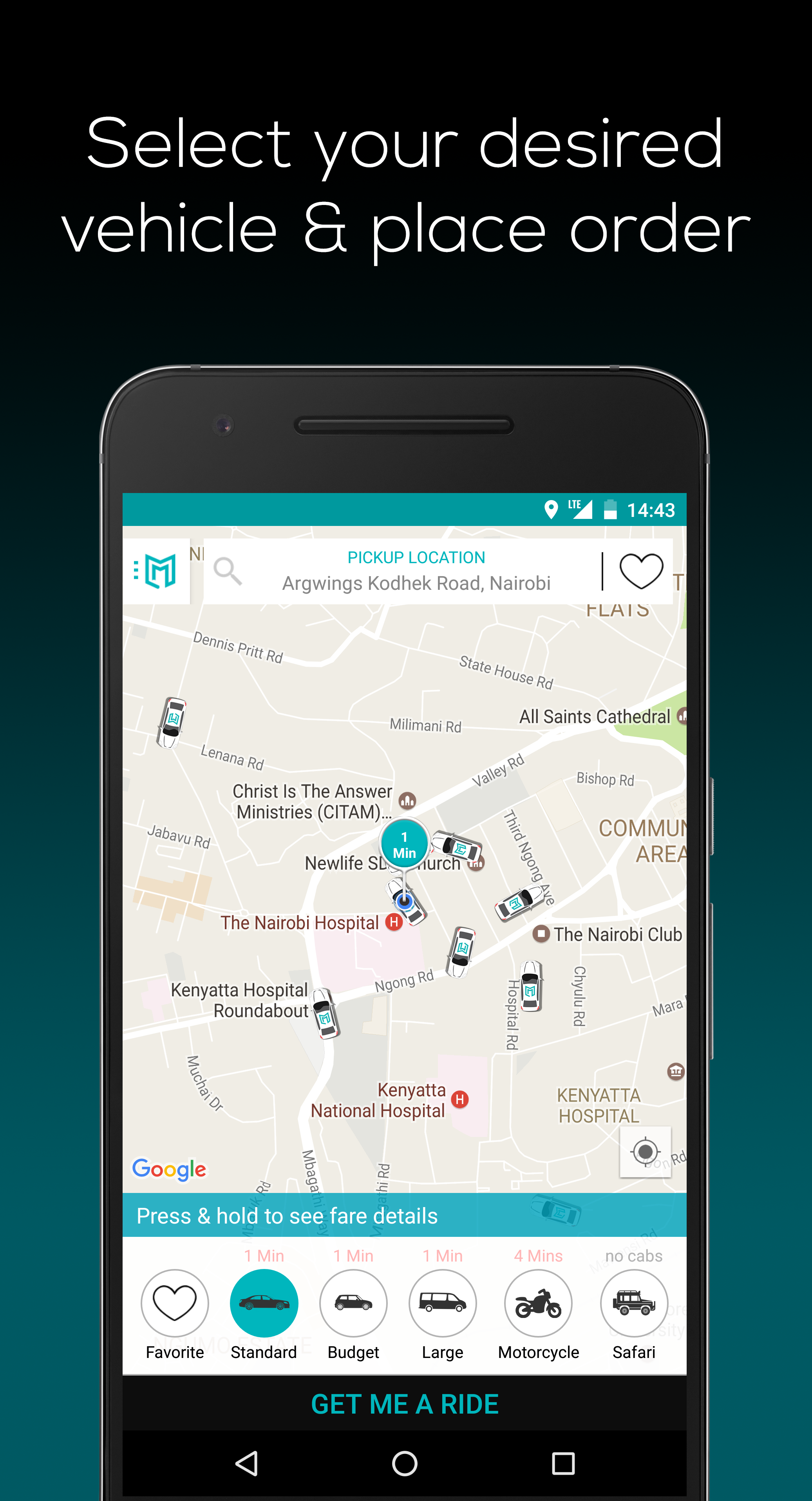 - Payment options customised to the market demand, pay in cash, with M-PESA or switch to your corporate account when on a business ride.