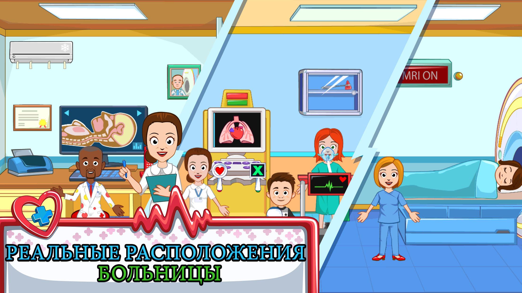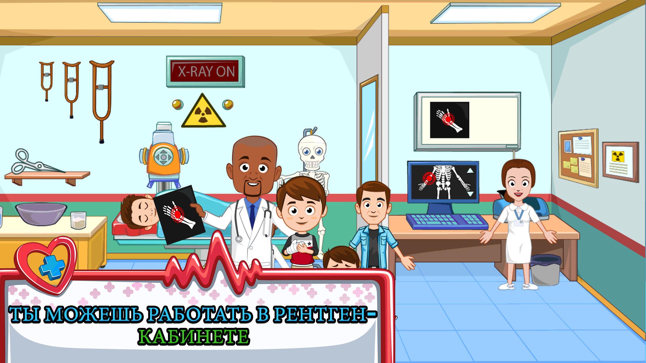 Игра в больницу никогда не доставляла большего удовольствия. Игра «Мой город: Больница» уже здесь со множеством потрясающих комнат: кабинет семейного врача, рентген- кабинет и родильная палата, где ребенок рождается прямо сейчас! Помогайте в больнице, станьте врачом на день, играйте в медсестру и изучайте все забавные комнаты. От создателей My Town – «Мой город: Больница» – лучшая стимулирующая воображение игра для детей! Игра №1, охватившая 65 стран, включая США, Англию, Данию и Канаду! ИГРАЙТЕ, ВООБРАЖАЙТЕ И ОТКРЫВАЙТЕ Как и все игры My Town, эта игра предлагает бесконечные возможности для общения, воображения и игры. 15 персонажей для игры, 6 комнат для исследования и открытия. Сделайте рентгеновский снимок, покажите маме новорожденного на мониторе, пройдите (или проведите) полное медицинское обследование у семейного врача во врачебном кабинете. Возможности этой игры поистине безграничны. В игре «Мой город: Больница» всё это есть! Рекомендованная возрастная группа: дети 3 – 12 лет Полный родительский контроль Без рекламы и покупок в приложении ЧТО В ЭТОЙ ИГРЕ? - 7 различных больничных комнат, расположенных на 2 этажах. Пройдите медосмотр в кабинете семейного врача. Велопробег не удался? Рентген-кабинет открыт! Используйте кардиологический монитор или покажите беременной мамеребенка на экране. - Новые персонажи: хирург, семейный врач, медсестра и даже беременная любимая мама! Оденьте новорожденного или сделайте ему ванну. - Посетите магазин ПОДАРКОВ и получите цветы и воздушные шары при посещении друга. - МНОЖЕСТВО НОВЫХ ПЕРСОНАЖЕЙ Врачи, медсестры, хирурги, НОВИНКА: беременная мама; папа, сестры и братья И многое другое... БЕЗ СТРЕССА, ВДОХНОВЛЯЕТ ВООБРАЖЕНИЕ И ТВОРЧЕСТВО Мы разрабатываем наши игры, позволяющие ребенку представлять и создавать собственный уникальный мир и историю каждый раз во время игры. Без ограничения времени, оценок и бонусов – эта игра свободна от стресса. - БЕЗ ПОСТОРОННЕЙ РЕКЛАМЫ -БЕЗ ПОКУПОК В ПРИЛОЖЕНИИ -БЕЗ РЕГИСТРАЦИИ И ПРОВЕРКИ В СОЦСЕТЯХ И ПО ЭЛ. ПОЧТЕ -ЗАПЛАТИТЕ ОДИН РАЗ –ПОЖИЗНЕННЫЕ ОБНОВЛЕНИЯ БЕСПЛАТНО «Присоединяйтесь к более 2,5 млн. человек, которые скачали, играли и получили удовольствие от наших игр»