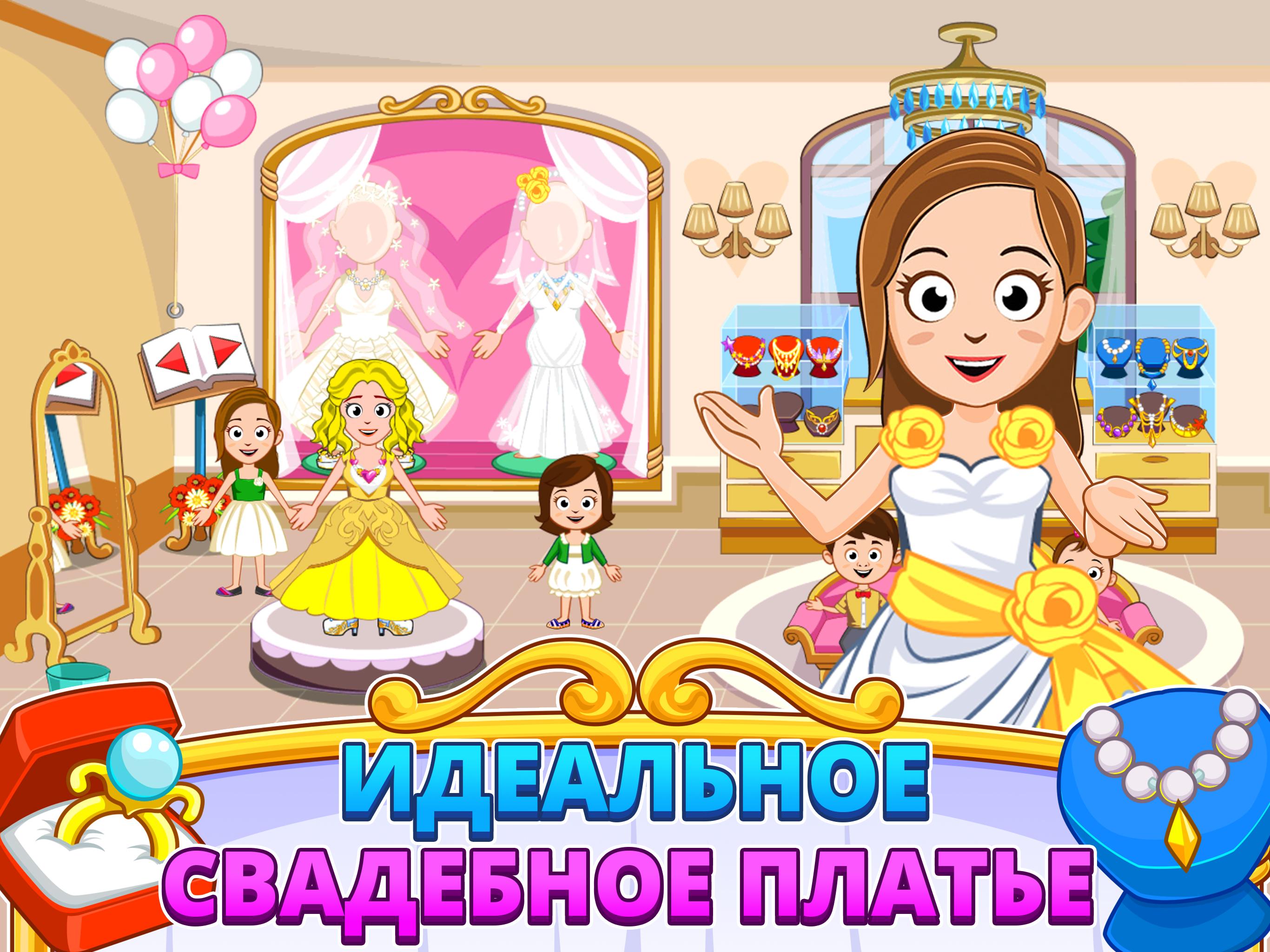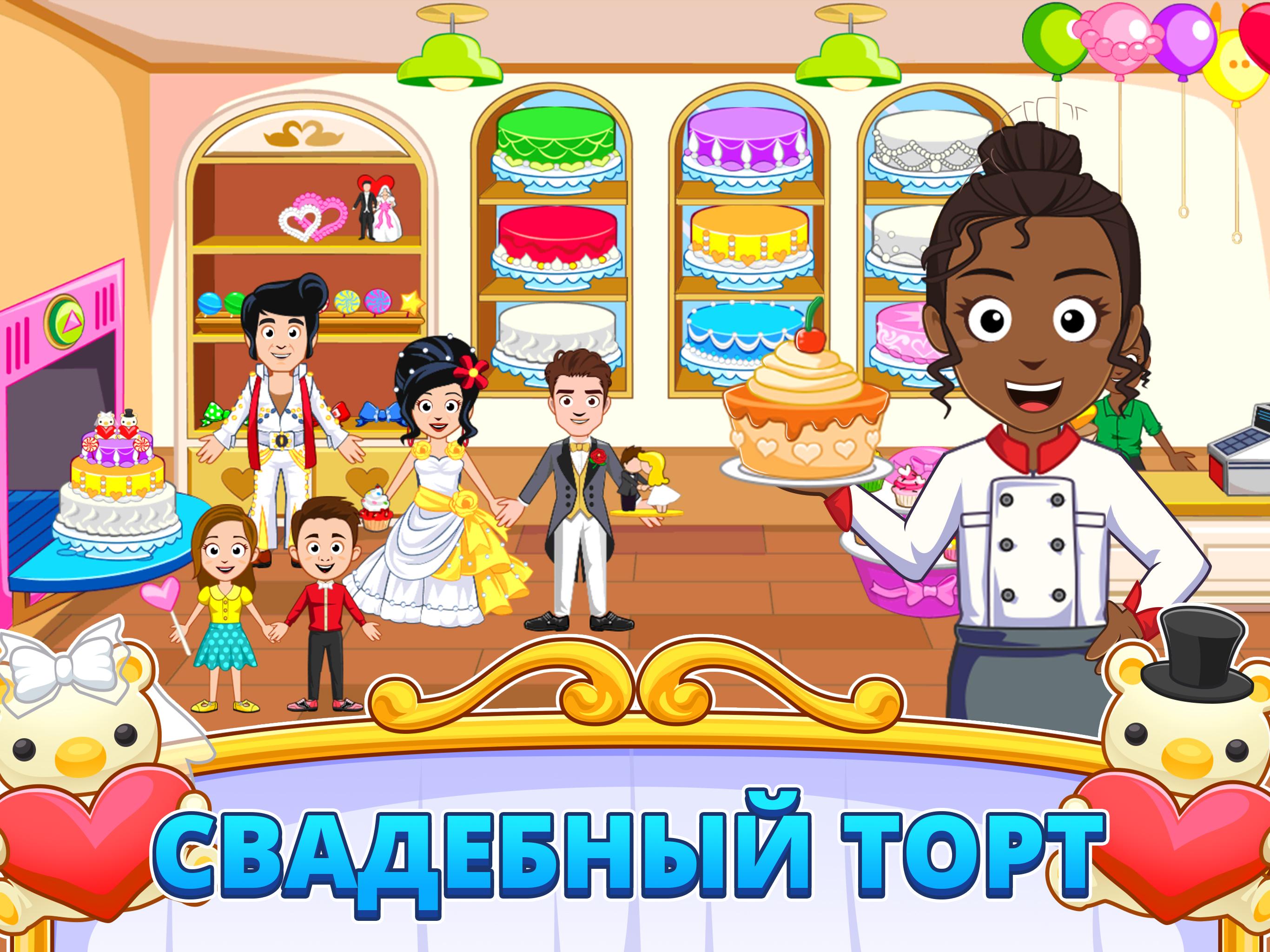 Приглашаем всех в Мой Город - День Свадьбы. Это лучшая свадебная вечеринка в городе! У игры в наш новый Мой Город - Свадьба есть идеальные места расположения, нужные для идеальной свадьбы. Кондитерский магазин, магазин подвенечных платьев, цветочный магазин и магазин подарков, церемониальный зал и свадебная вечеринка, расположенная на 100-м этаже! ИГРАЙТЕ, ВООБРАЖАЙТЕ, ДЕЛАЙТЕ ОТКРЫТИЯ При наличии такого множество потрясающих мест расположения и новых персонажей появляются бесконечные способы поиграть и подготовиться ко дню свадьбы! Эта игра разбудит воображение каждого ребенка своими забавными и творческими мероприятиями и притворной игрой! ** Достаточно простая для трёхлетнего ребёнка, достаточно захватывающая для двенадцатилетнего! ** В ЧЕМ СУТЬ ИГРЫ МОЙ ГОРОД - СВАДЬБА? Как и все игры Мой Город, Мой Город - Свадьба - это интерактивная игра в кукольный дом. Это новое дополнение к серии игр Мой Город, расширение, идеальное дополнение с веселыми местами расположения, увлекательными новыми персонажами и старыми друзьями, которые приходят на свадьбу! РЕКОМЕНДОВАННАЯ ВОЗРАСТНАЯ ГРУППА Мальчики и девочки от 3 до 13 лет: детям помладше понравится играть с родителями , а дети постарше будут часами играть самостоятельно или с друзьями. Полный родительский контроль: Игра безопасна даже в ваше отсутствие. Без рекламы и третьестороннего таргетирования! ИГРОВЫЕ ФУНКЦИИ ДНЯ СВАДЬБЫ: 14 персонажей, 6 мест расположения, 1 лимузин и море подарков! Магазин свадебного платья - никакая свадебная вечеринка не пройдет идеально, если невозможно выбрать наряды для жениха и невесты, так? Магазин свадебных тортов - создайте свой идеальный свадебный торт высотой до 3 этажей со множеством разноцветных, но органических украшений. Магазин подарков и цветов - невеста без букета - не невеста, а гость без подарка - неправильный гость на свадьбе. Получите то и другое в нашем потрясающем магазине подарков! Зал свадебных церемоний - соберите гостей, играйте на органе, обменяйтесь клятвами и "Пожеланиями счастья (Mazal Tov)". Вы только что сочетались браком!!! Сумасшедший зал для вечеринок на 100-м этаже Поднимитесь на крышу на лифте. Там вы проведете лучшую свадебную вечеринку в своей жизни! Еда, дискотека, фейерверк и не только!