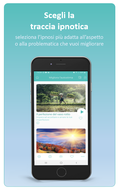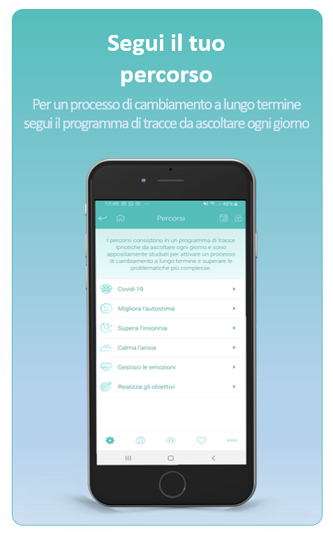 myipnosis — первое приложение для гипноза на итальянском языке, которое помогает вам с помощью простых медитаций с инструктором открывать и использовать ресурсы вашего разума для личностного роста и улучшения самочувствия, как тела, так и разума. Слушая гипнотические следы, которые Dr. Джанлука Антони и доктор Моника Грегорини, опытные и сертифицированные психологи-психотерапевты-гипнотизеры, разработали и отобрали для вас мигипноз, который может помочь вам: • победить бессонницу; • спокойное беспокойство; • управлять эмоциями; • достичь целей; • повысить самооценку; • достичь здорового веса; • повысить производительность; • укрепить здоровье; • прекратите курить; • справляться со стрессом; • подготовьтесь к материнству Достаточно будет выбрать психологическую область, которую вы хотите улучшить, и выбрать трек, который вы считаете наиболее подходящим, надеть наушники и позволить голосу сопровождать вас. Вы также можете пройти по специально разработанным дорожкам, составленным из программы гипнотических треков, которые нужно слушать каждый день, чтобы активировать процесс долгосрочных изменений и преодолеть самые сложные проблемы. Чтобы получить наилучшие результаты и улучшить опыт, отвечая на вопросы простого теста, вы можете открыть свой гипнотический профиль, из которого myhypnosis предложит наиболее подходящие настройки для более легкого входа в гипнотическое состояние. Вы можете выбрать, будет ли сопровождаться мужской или женский голос, тип фонового звука и будет ли в конце прослушивания засыпать или возвращаться в активное состояние бодрствования, а также другие параметры, чтобы еще больше персонализировать свой гипнотический опыт. Содержимое мигипноза постоянно обновляется и обогащается новыми гипнотическими треками, новыми дорожками и новыми разделами. Если у вас есть какие-либо сомнения и вы хотите постепенно приблизиться к гипнозу в полной безопасности, чтобы открыть для себя его преимущества, вы можете скачать myhypnosis | руководство пользователя на сайте www.myipnosi.com. myipnosis можно загрузить и использовать бесплатно, в нем нет рекламы. Предоставляет бесплатный доступ к некоторым гипнотическим трекам, тесту гипнотического профиля, некоторым функциям и информационному наполнению. Чтобы разблокировать все треки и все возможности мигипноза необходимо подписаться.
