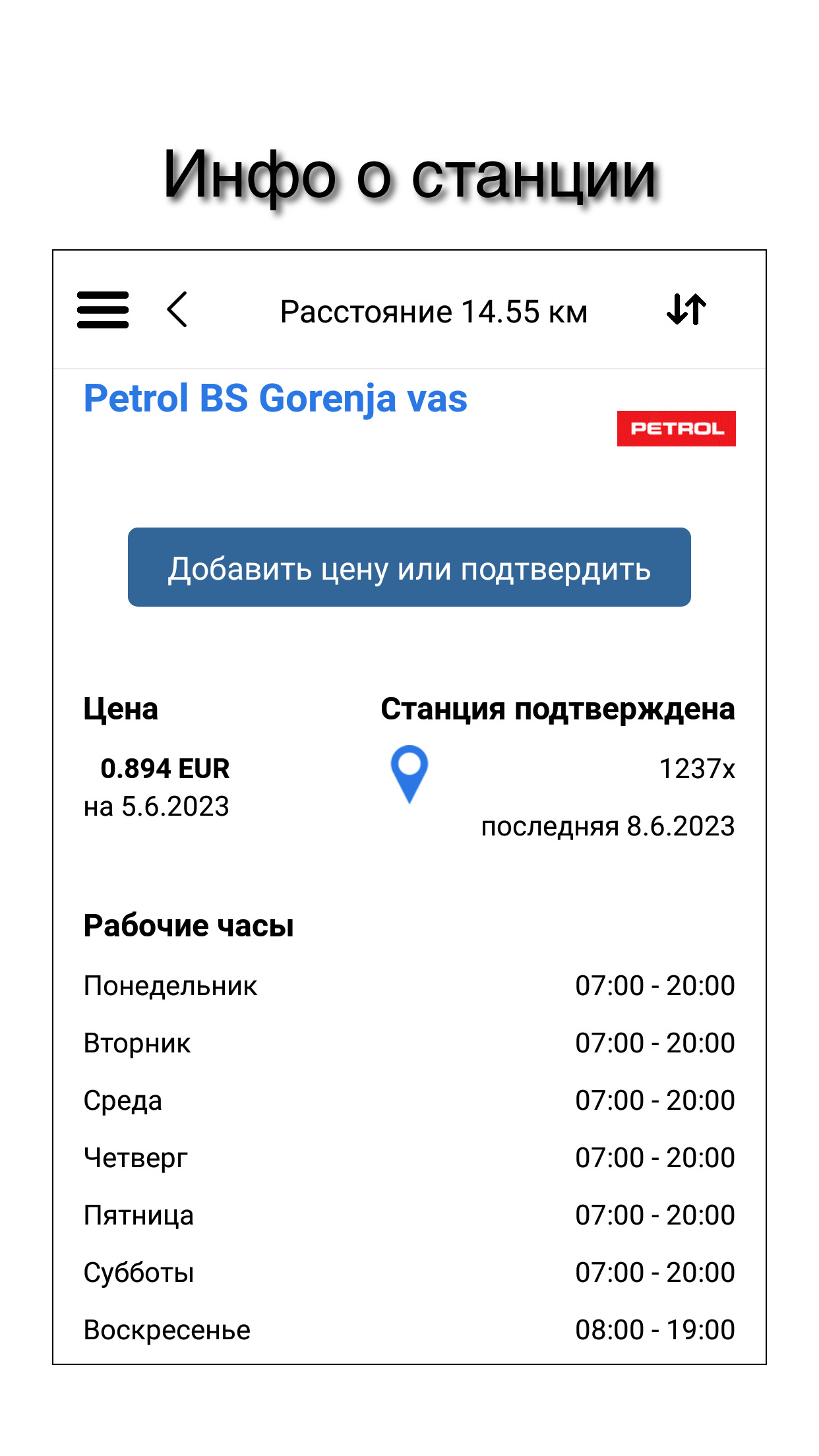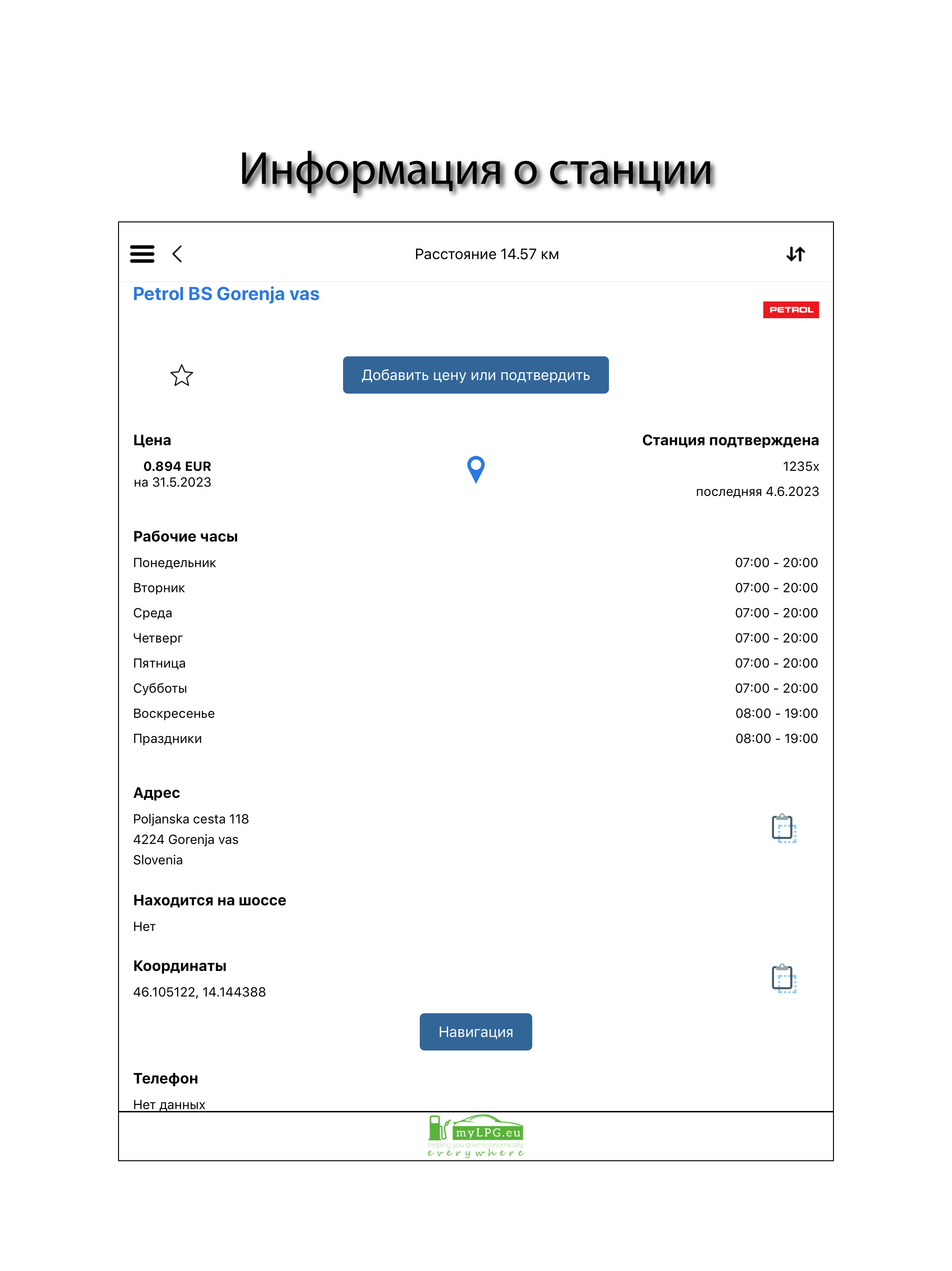 - добавление или подтверждение текущей цены LPG на станции