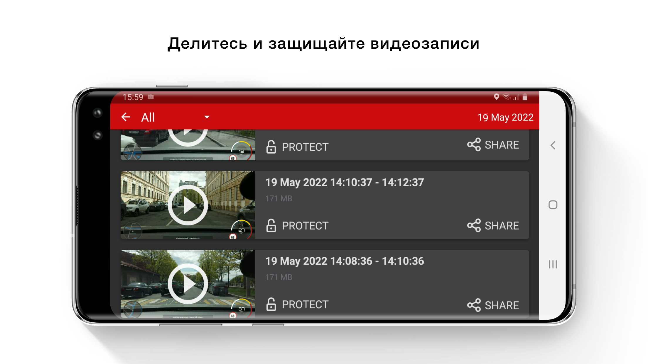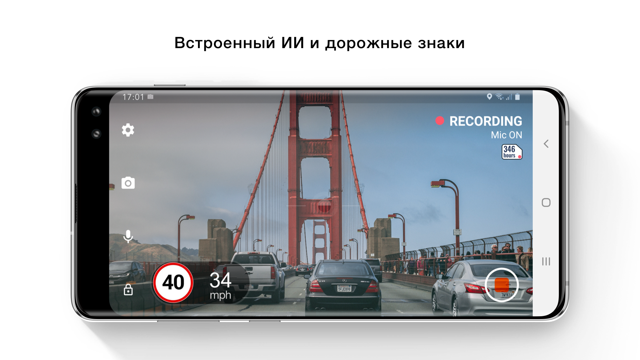 Автомобильный видеорегистратор от Navmii! Бесплатное приложение со встроенным искусственным интеллектом, которое, помимо основной функции видеорегистрации, постоянно анализирует дорогу по ходу движения и отображает полезную информацию о поездке.