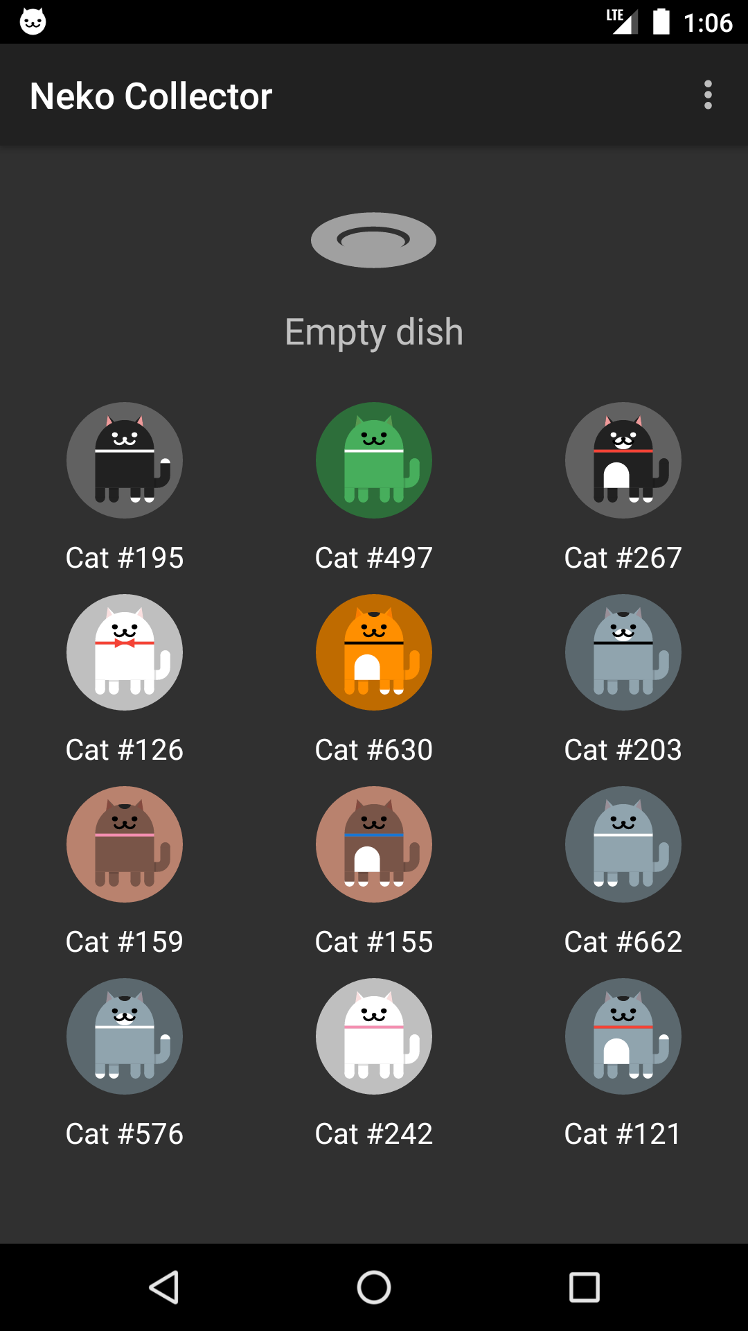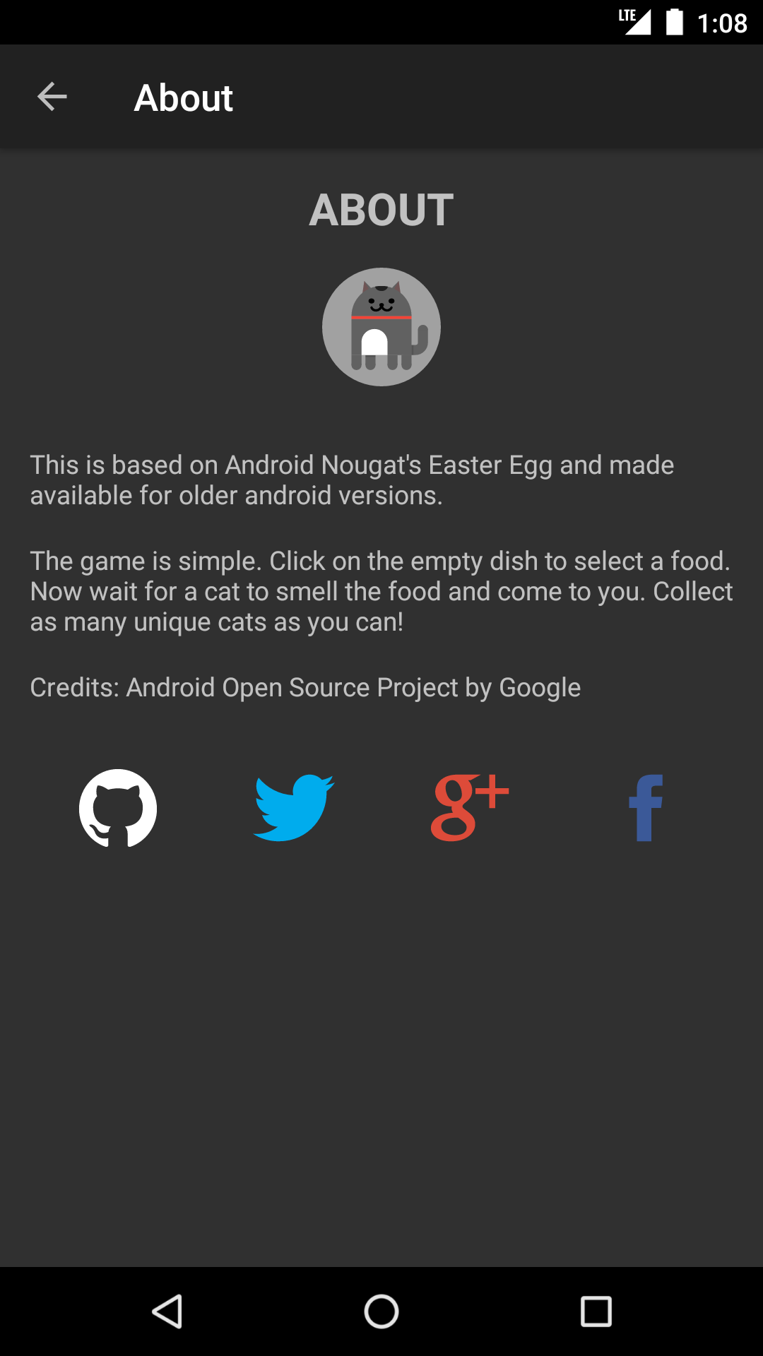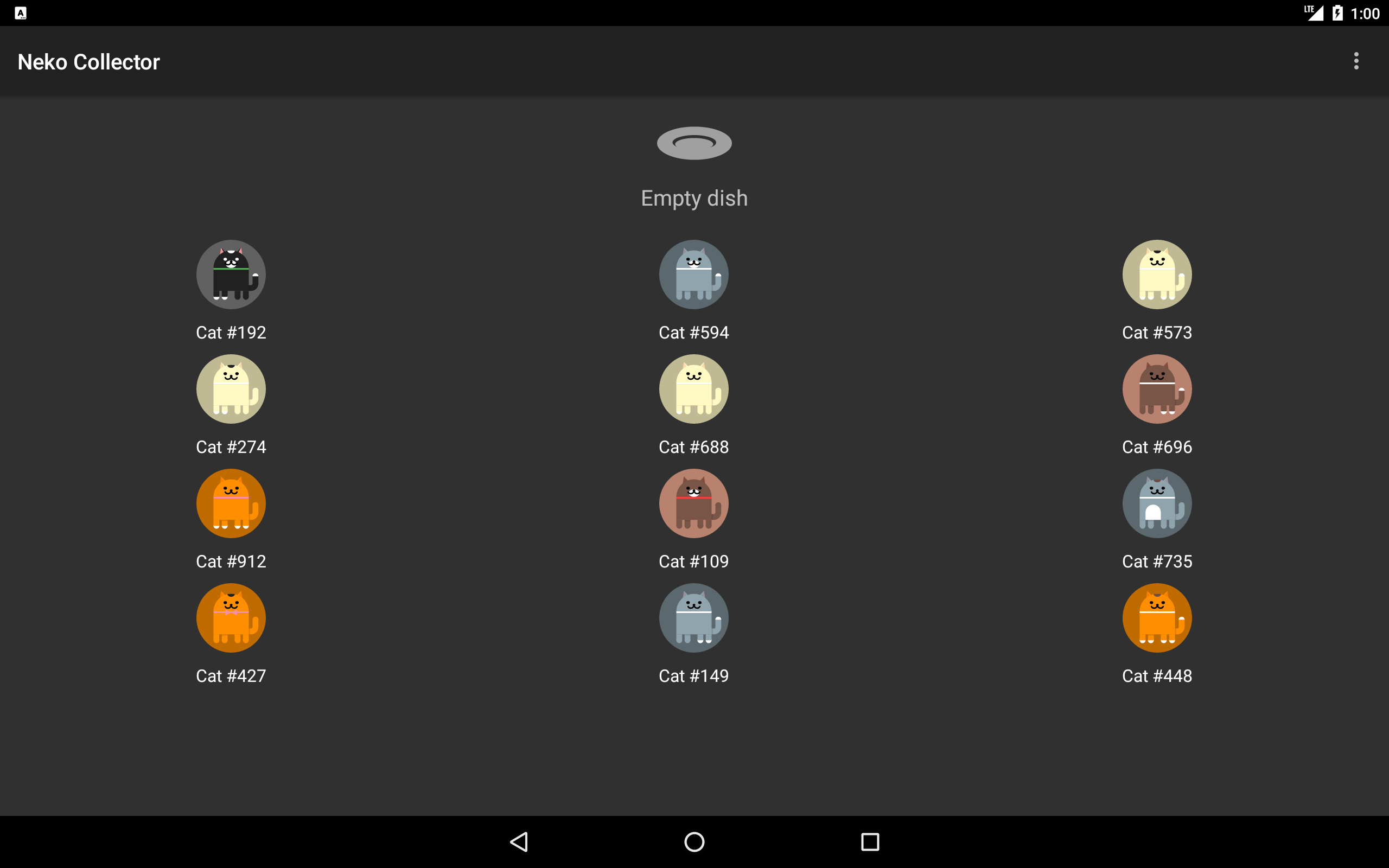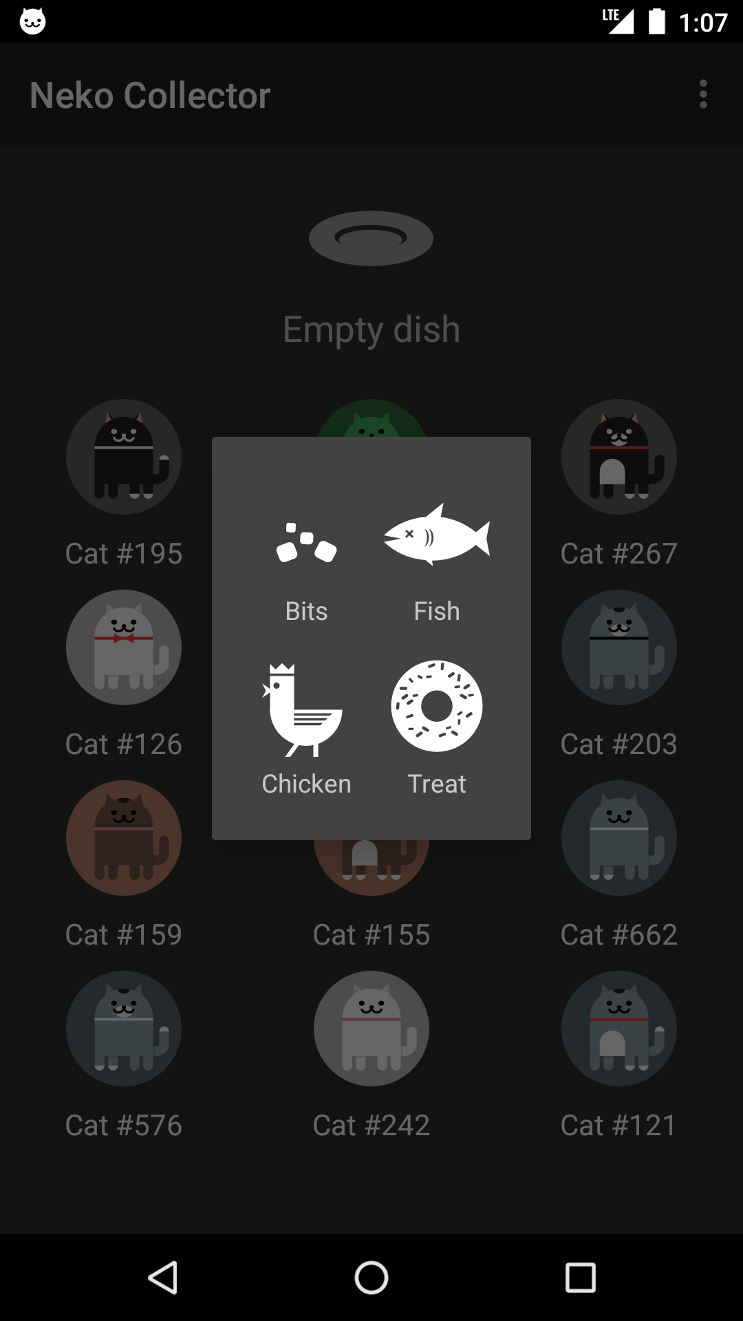 The game is simple. Click on the empty dish to select a food. Now, you can close the app and wait for a cat to smell the food and come to you.