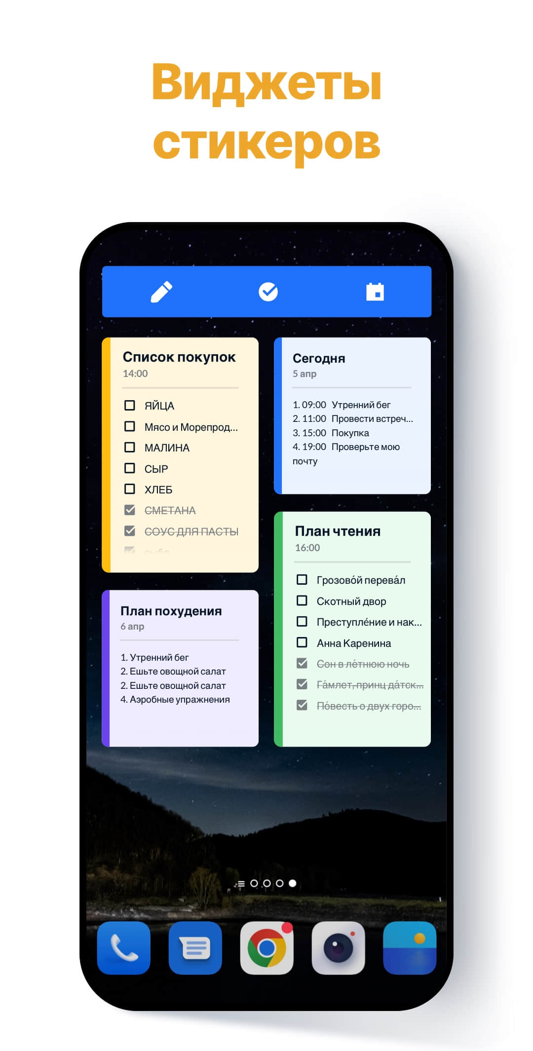 Стикеры-виджеты на главном экранеПриложение «блокнот, заметки и списки - Notein» поддерживает добавление стикеров-виджетов на главный экран, чтобы вы могли мгновенно их открывать.
