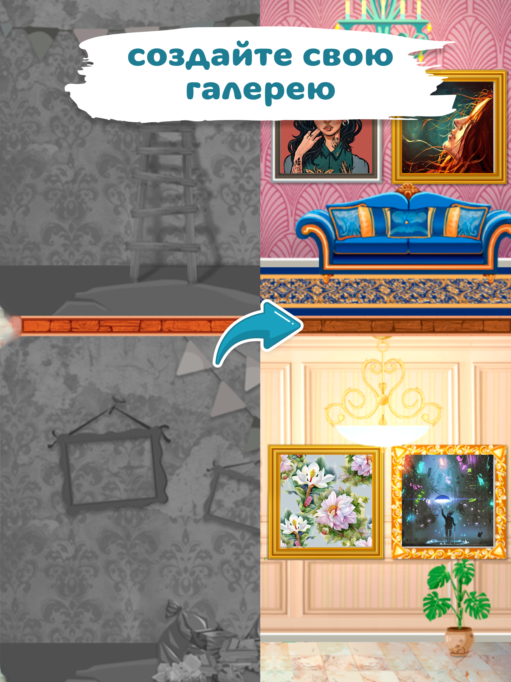 ⭐️ уникальный геймплей: раскраска, разукрашка, создание картин и декор дома